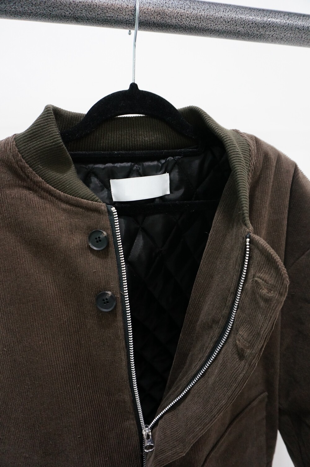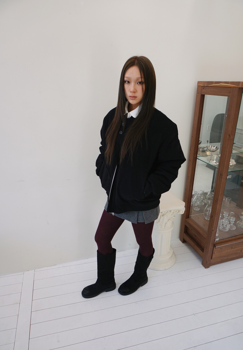 - 포켓 스티치, 투버튼, 지퍼 덮개 디테일.