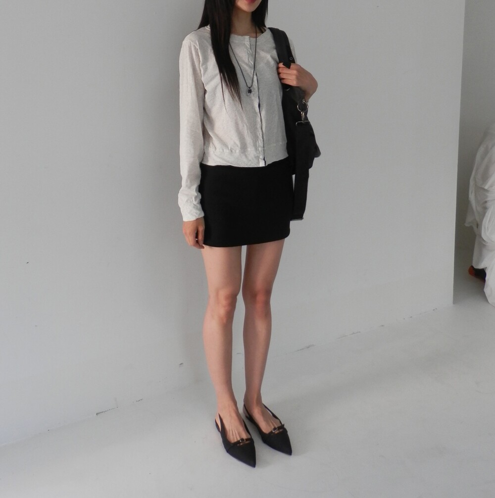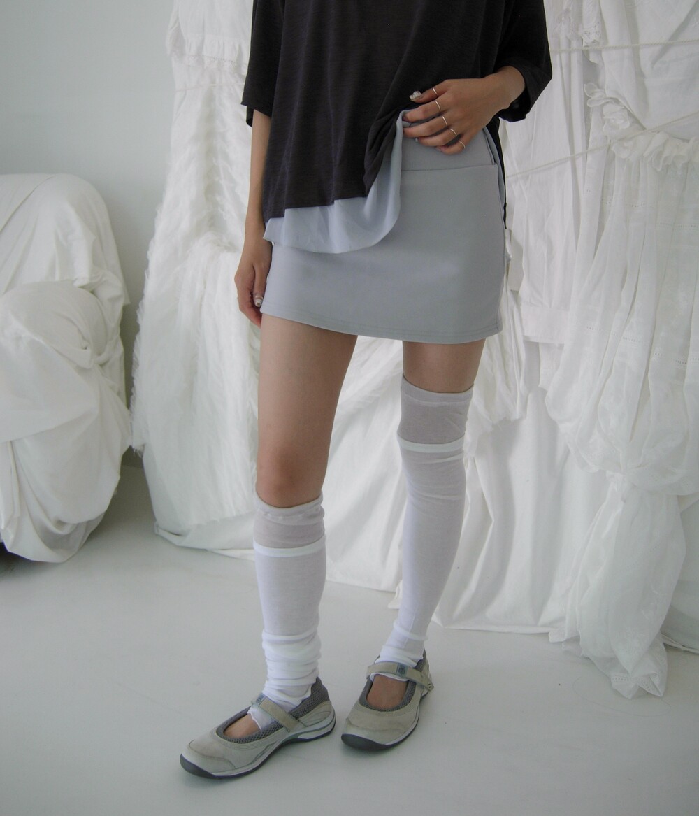 - 탄탄한 두께감으로 허리-힙-골반라인을 잡아주는 미니스커트.