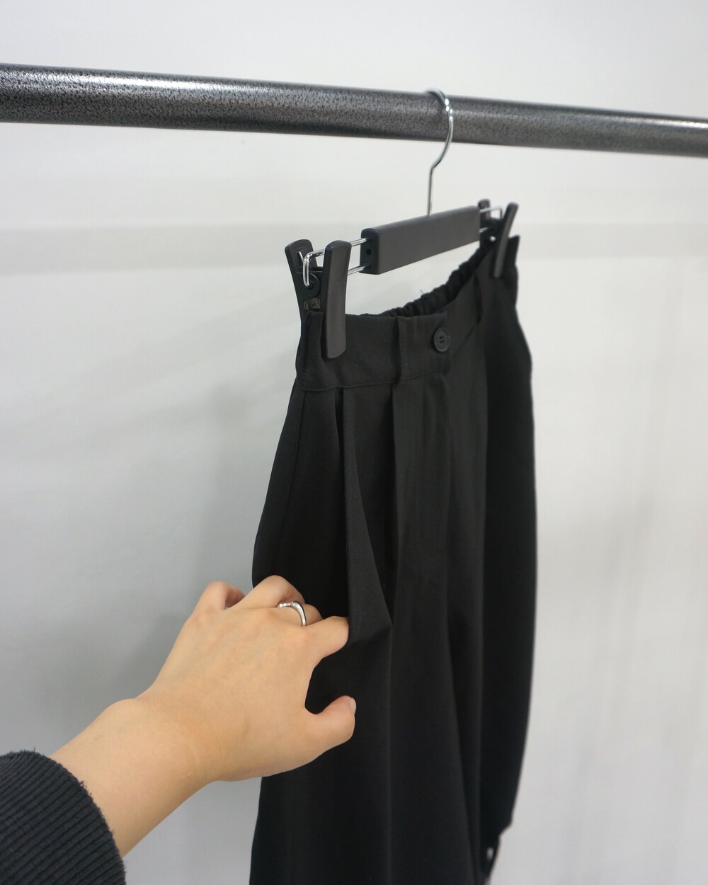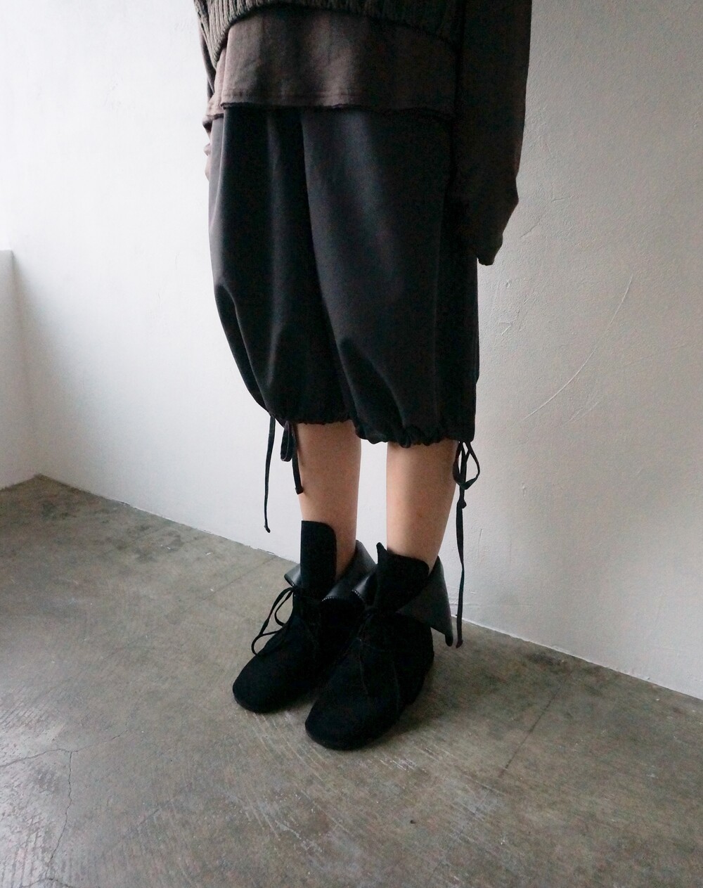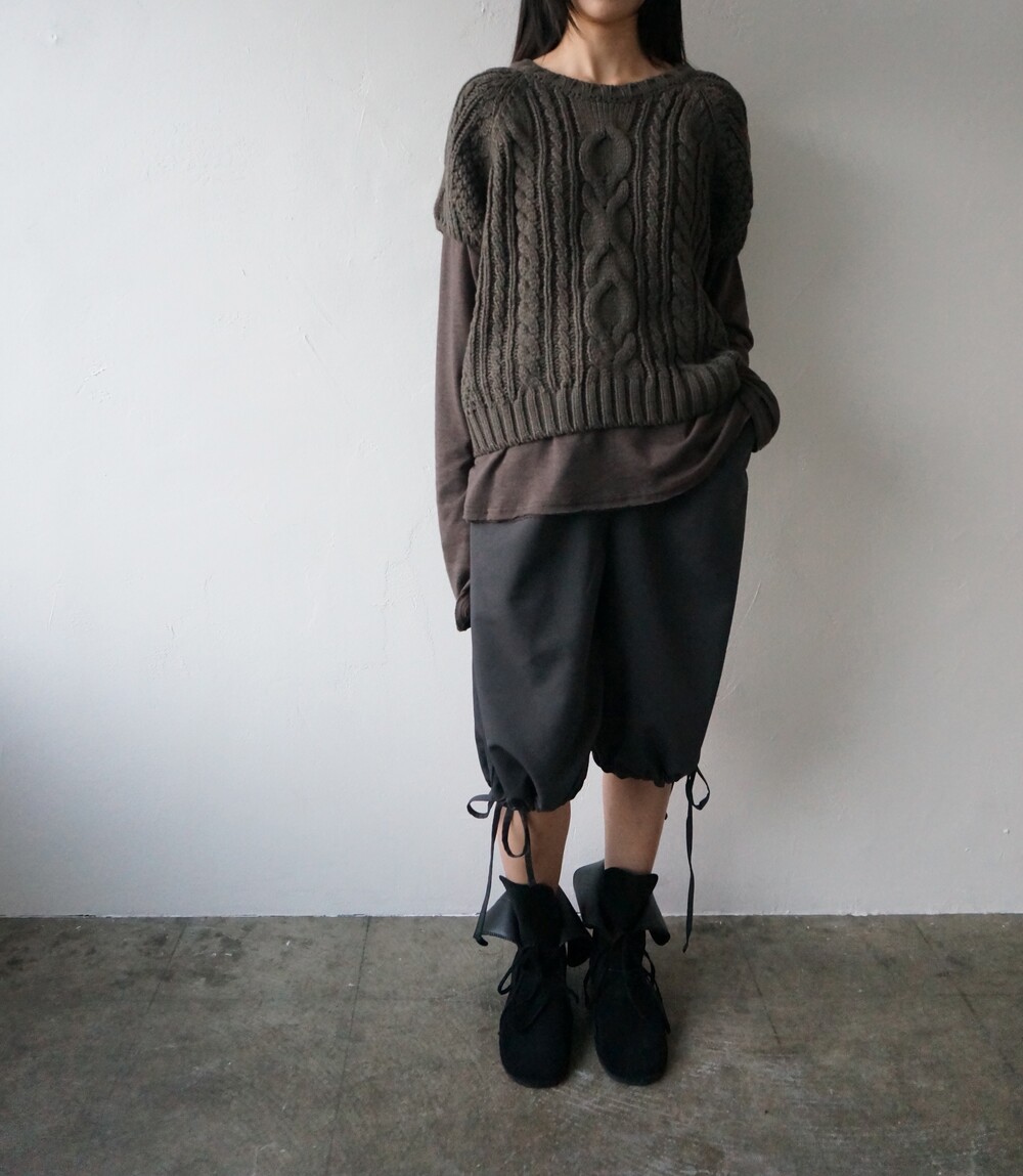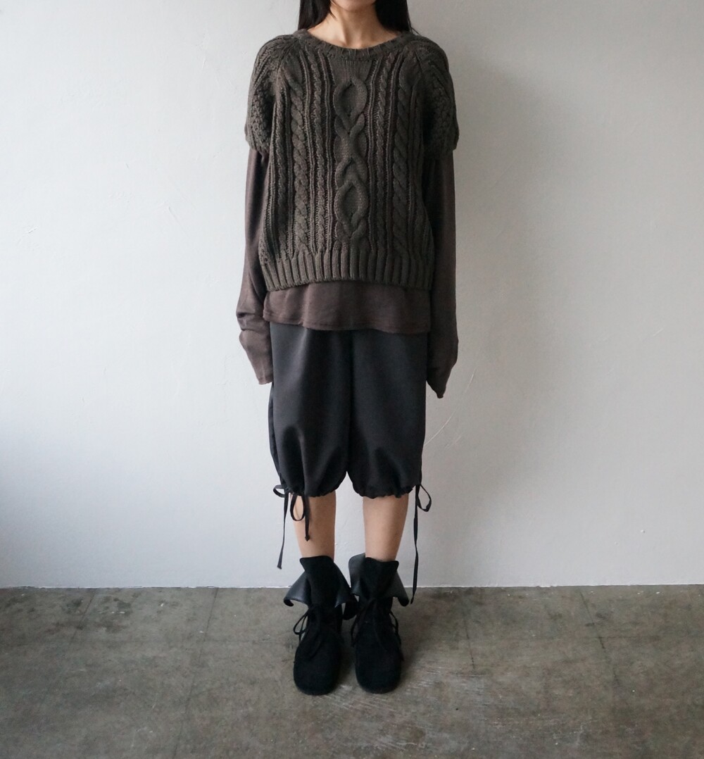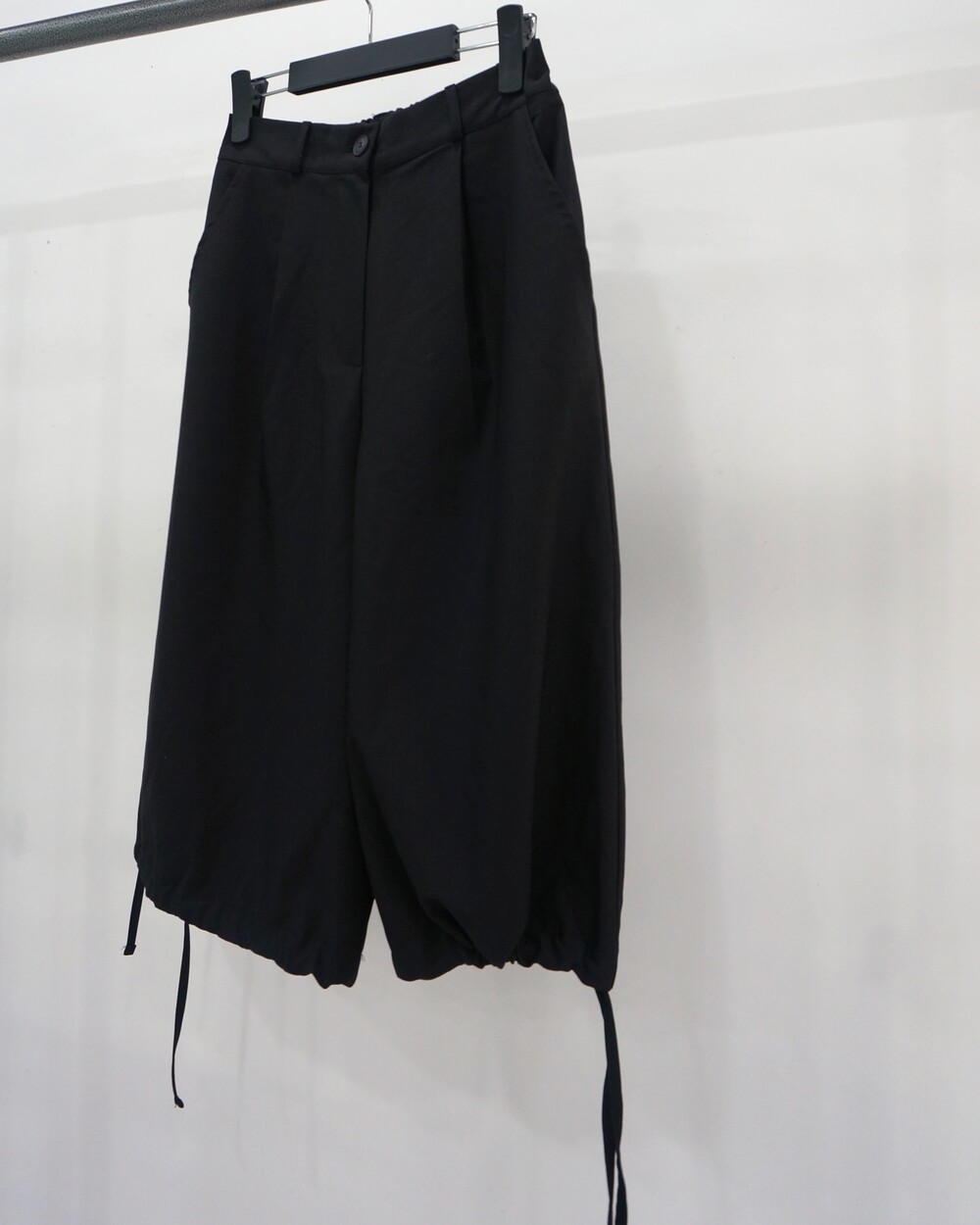 - 밑단 스트링으로 다양한 핏이 연출가능한 미디슬랙스.