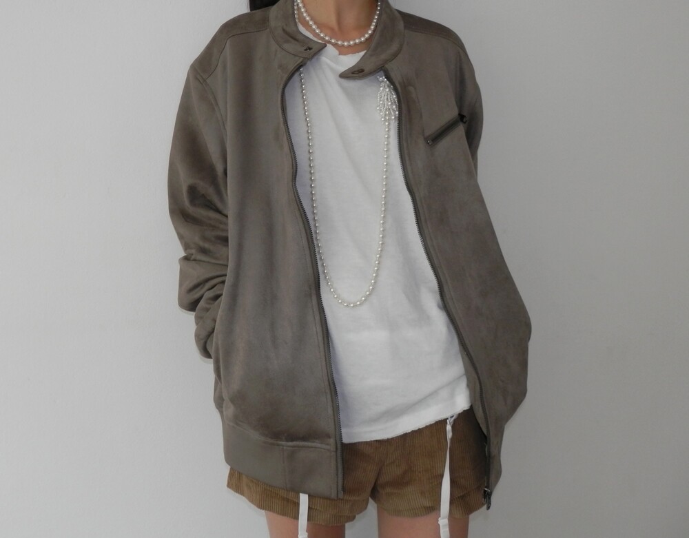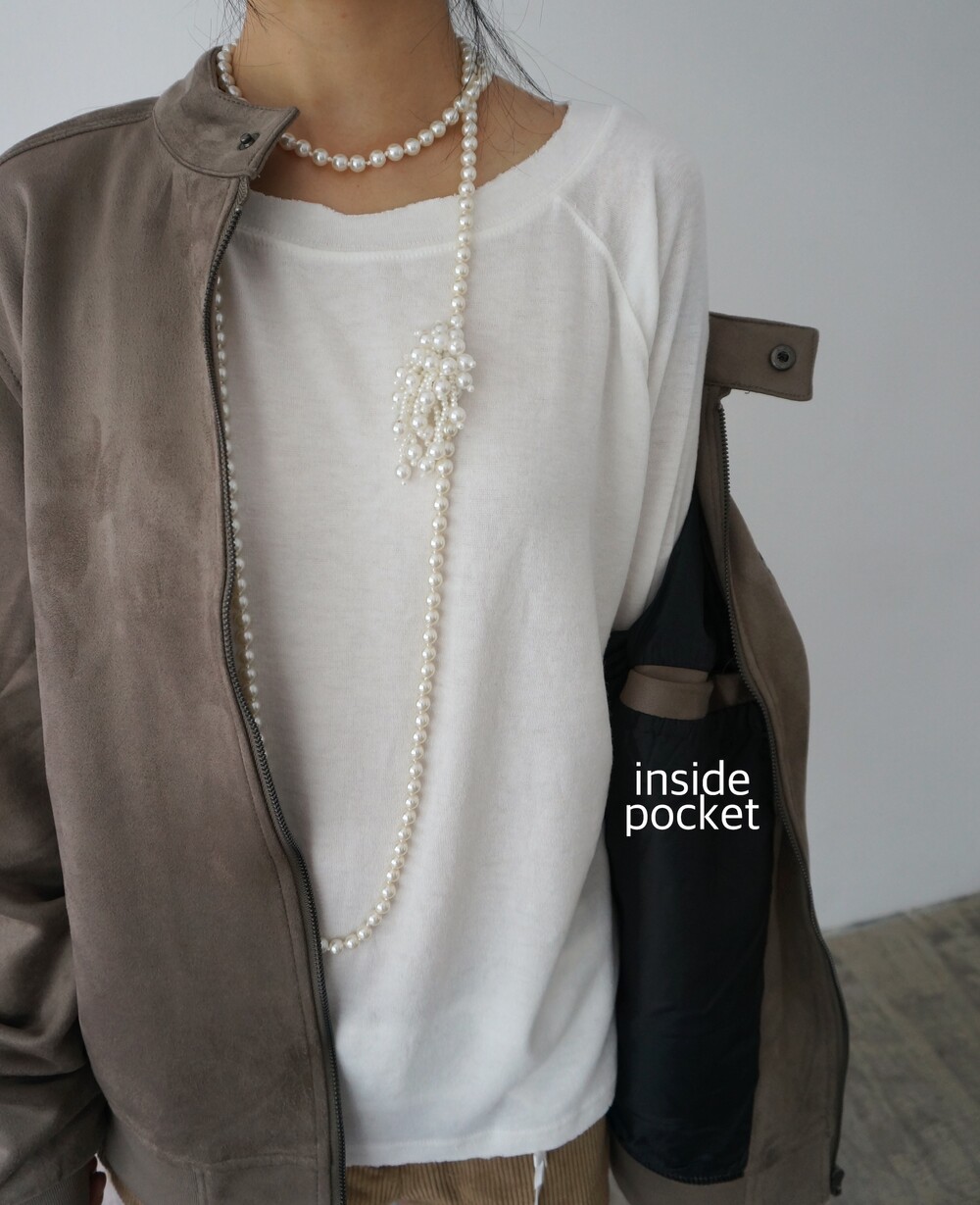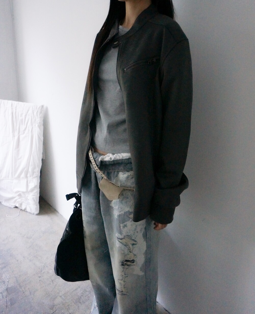 - 차이나넥, 밑단-소맷단 시보리, 가슴 지퍼포켓 디테일.