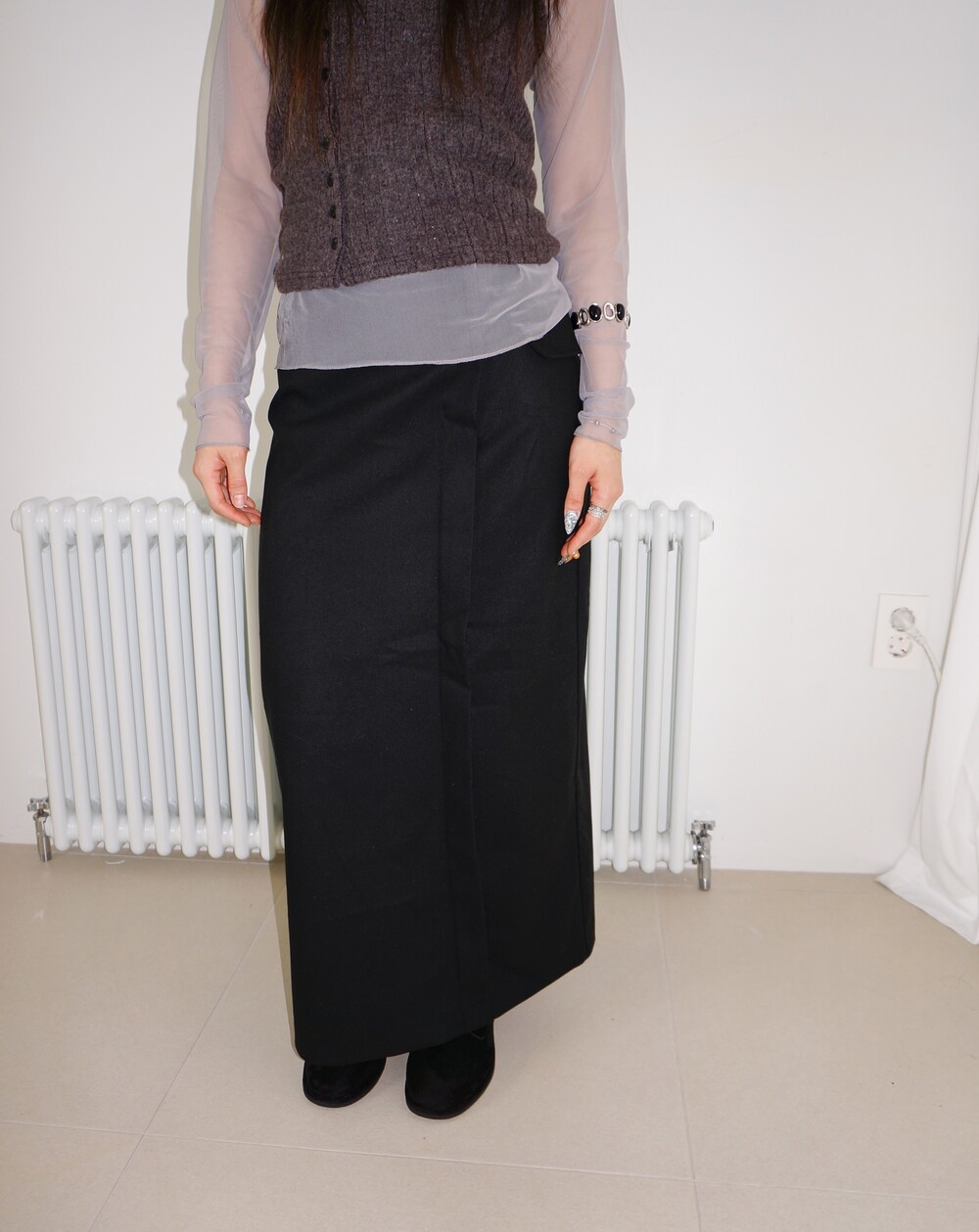 S 허리34.5 힙47.5 총장92 (모델 착용)