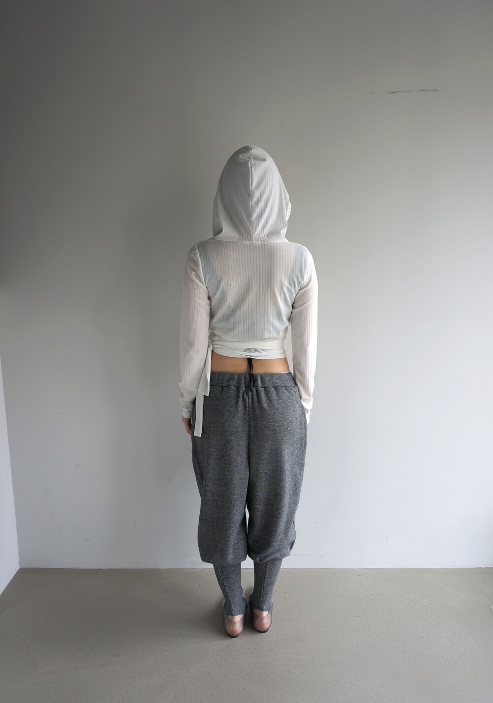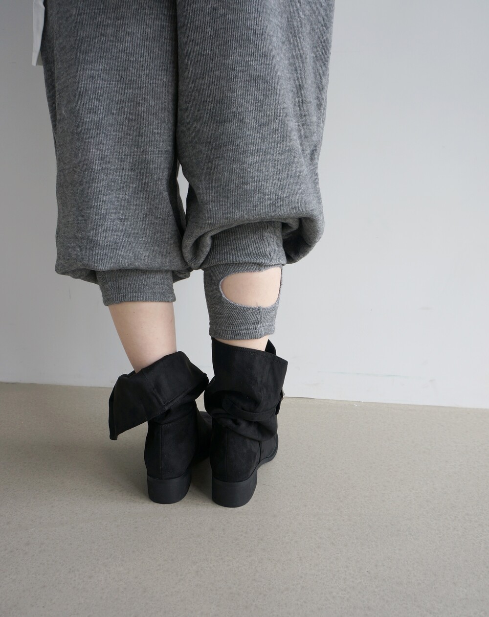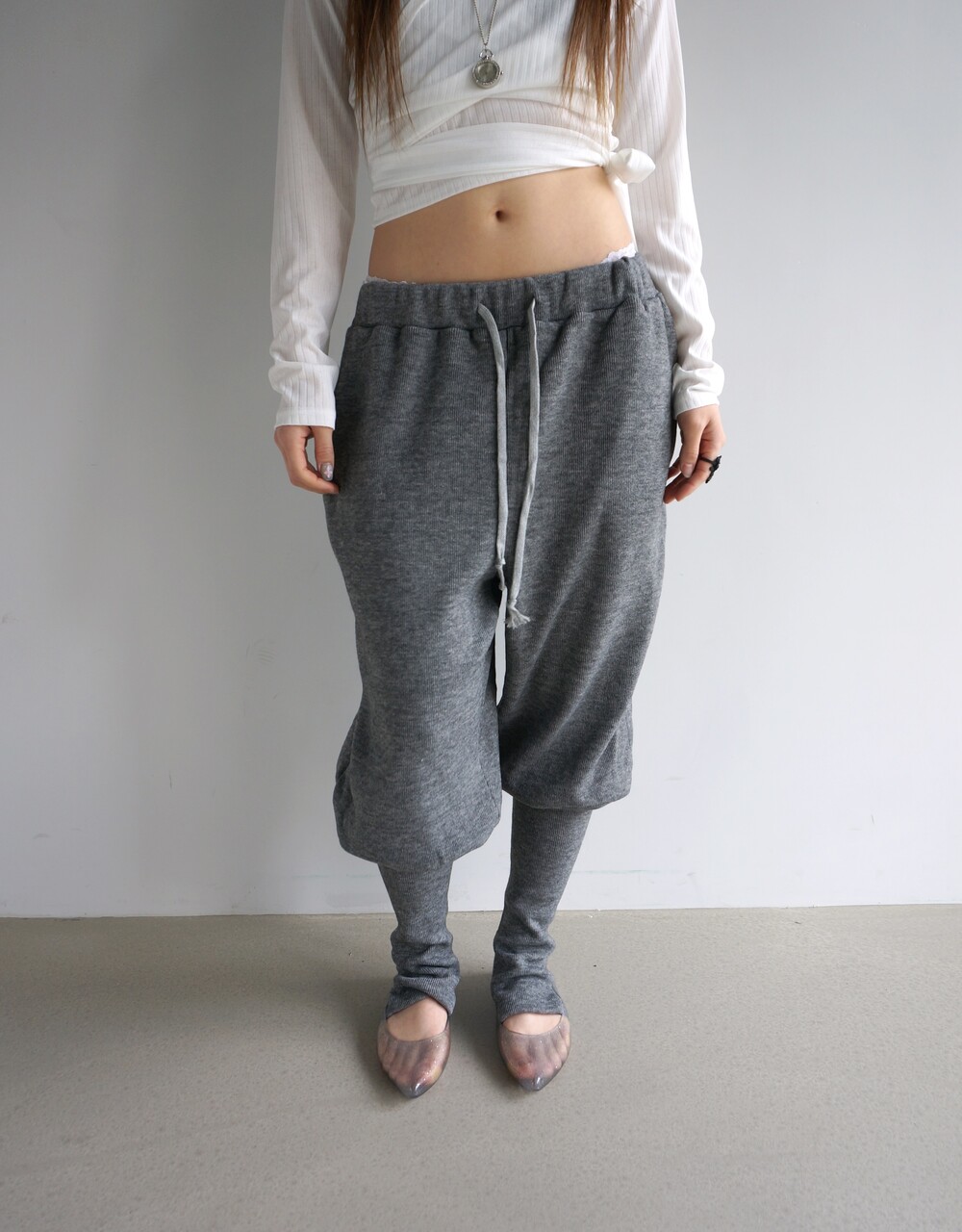 - 뒷꿈치 고리 형식의 풋워머 팬츠.