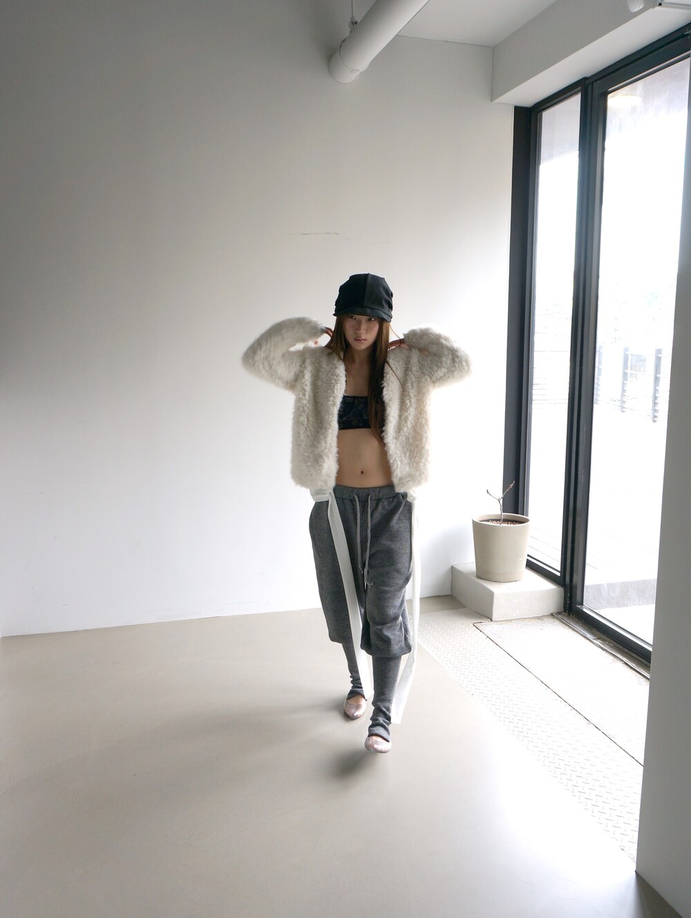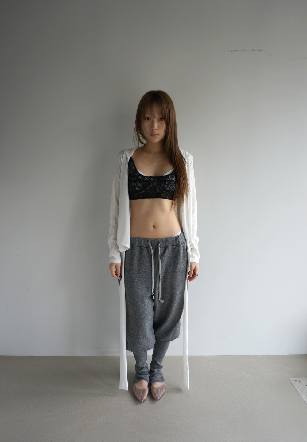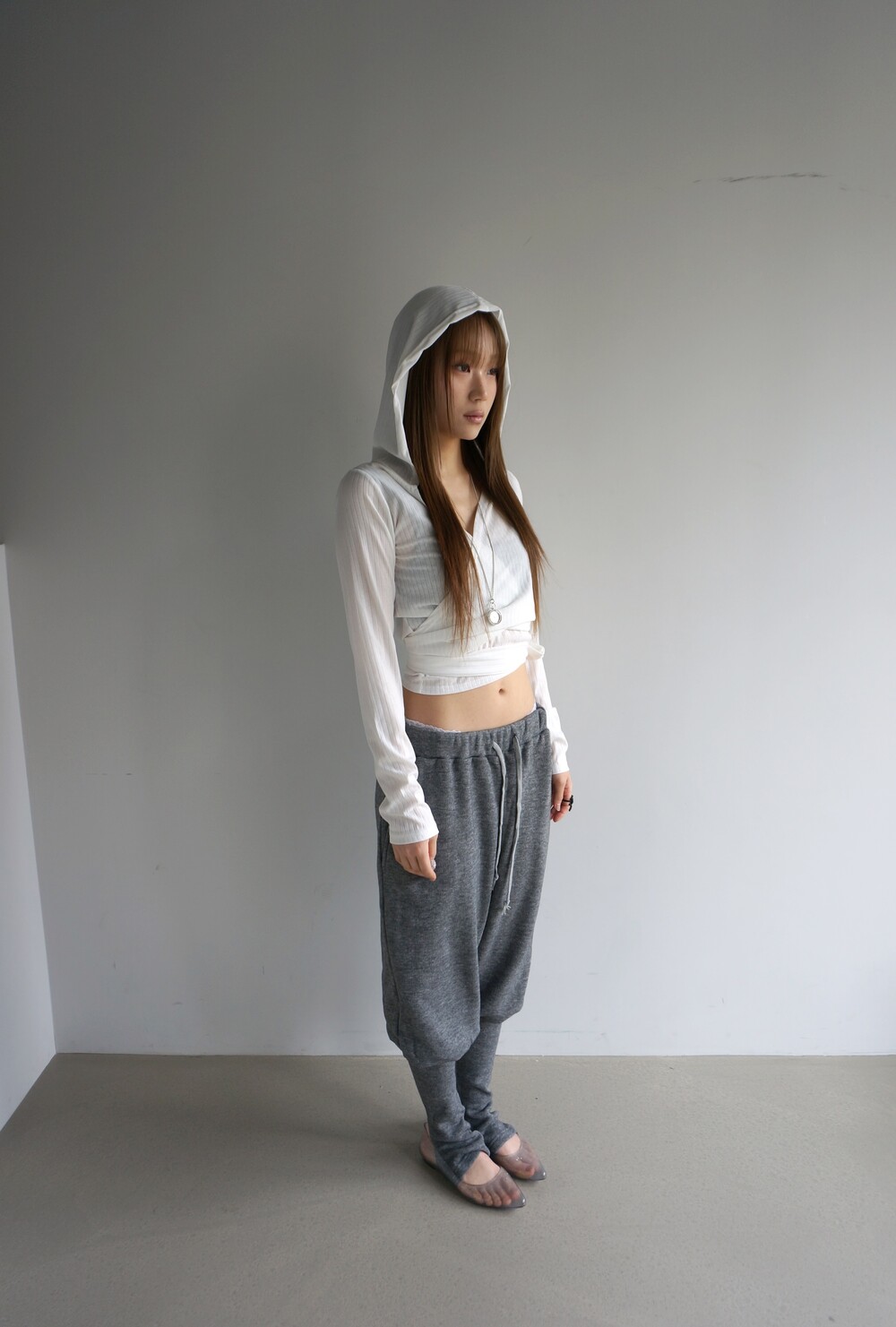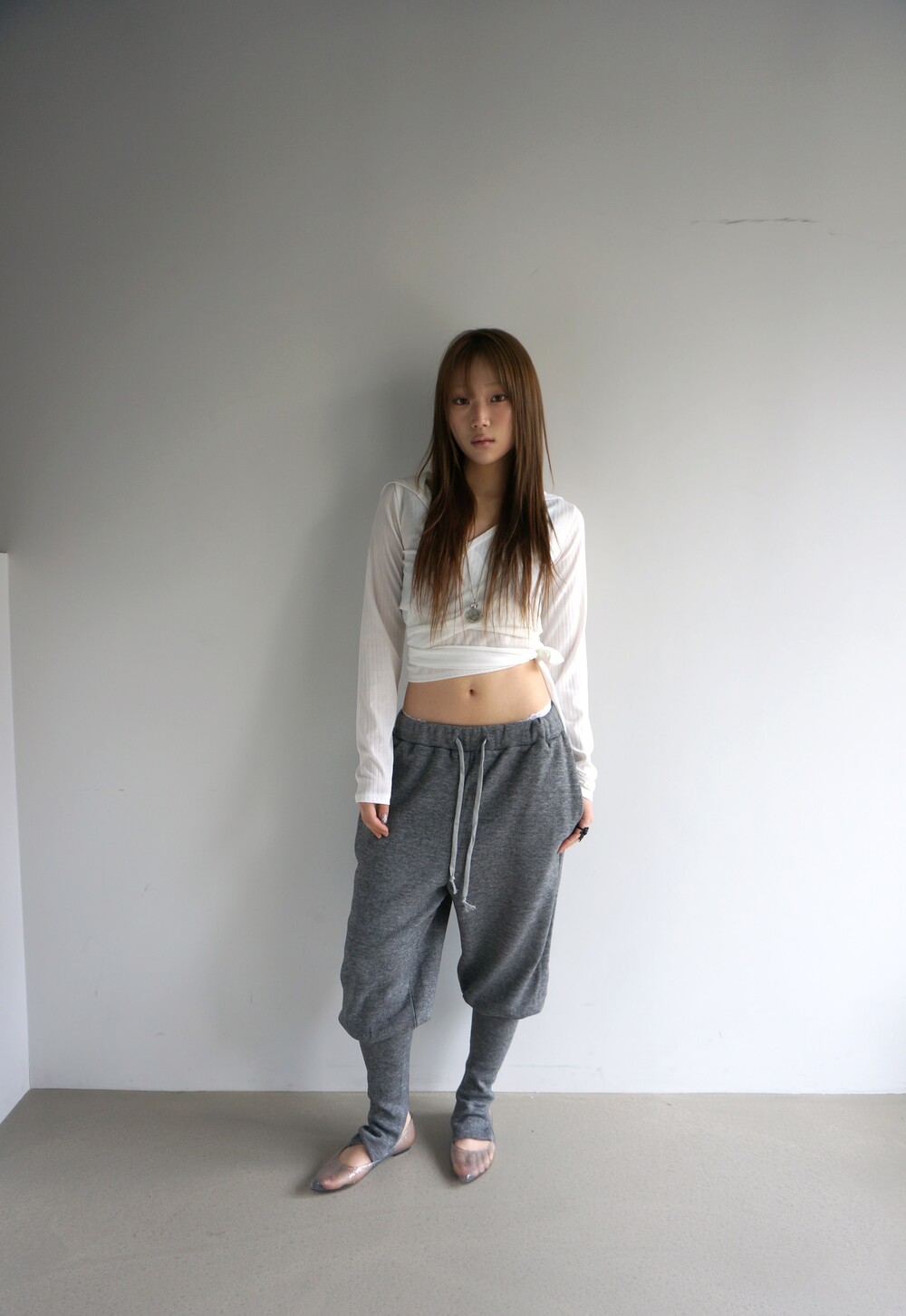 - 뒷꿈치 고리 형식의 풋워머 팬츠.