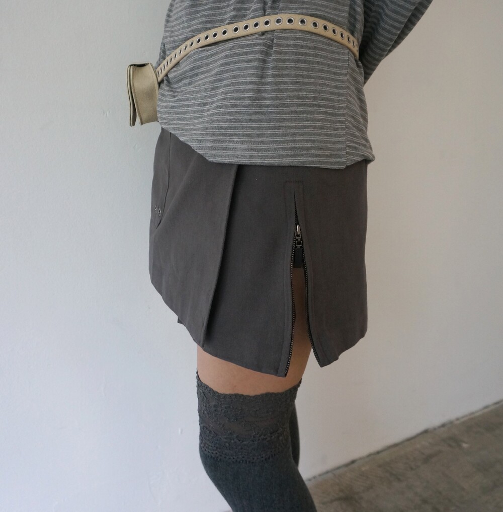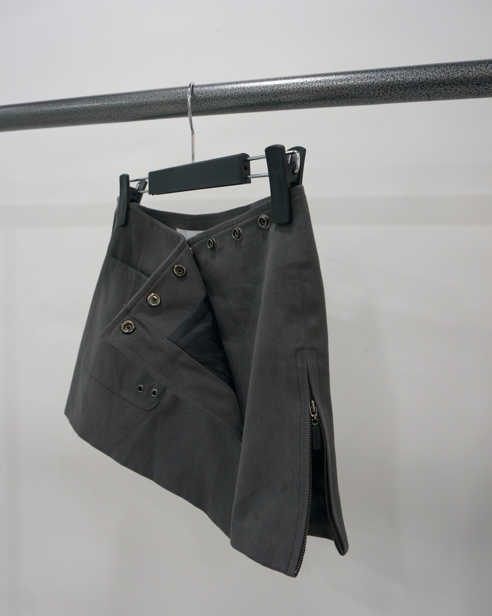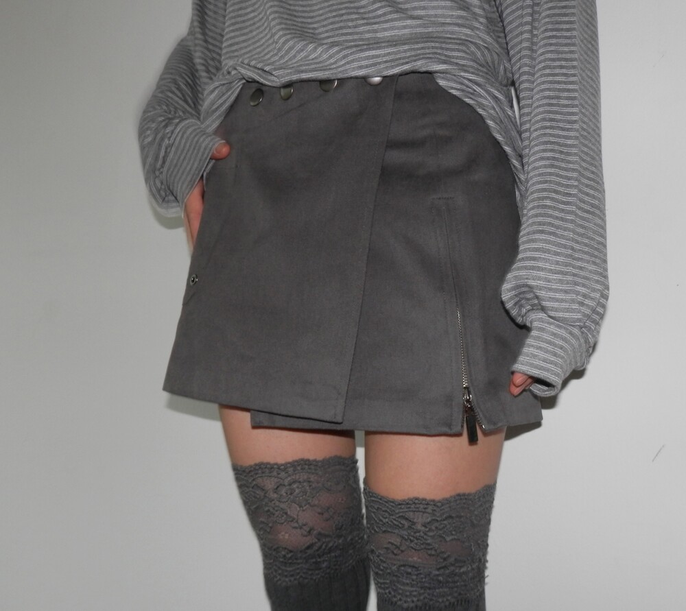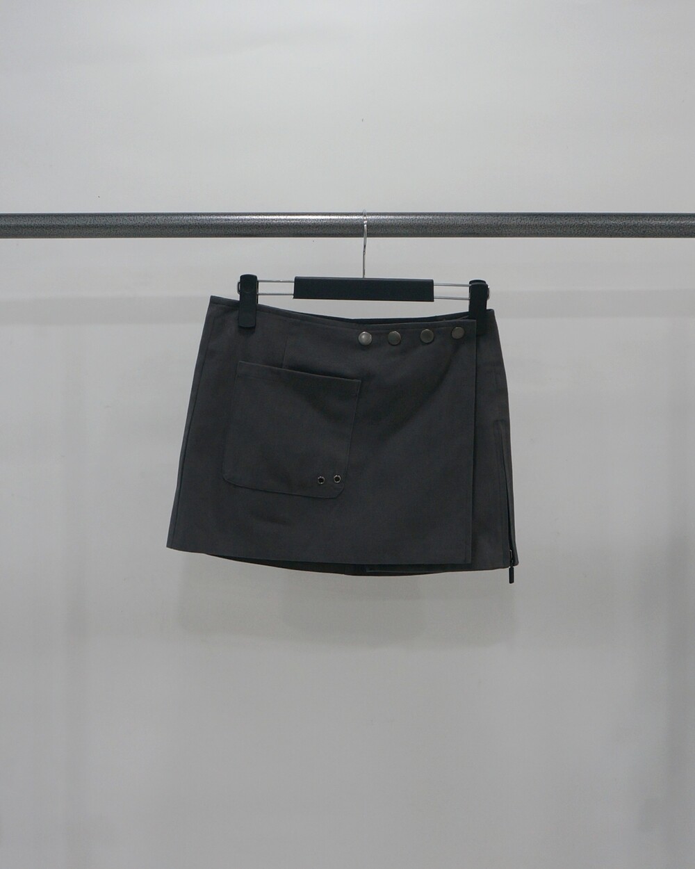 - 허리 4개의 스냅버튼으로 사이즈 조절이 가능한 미니스커트.