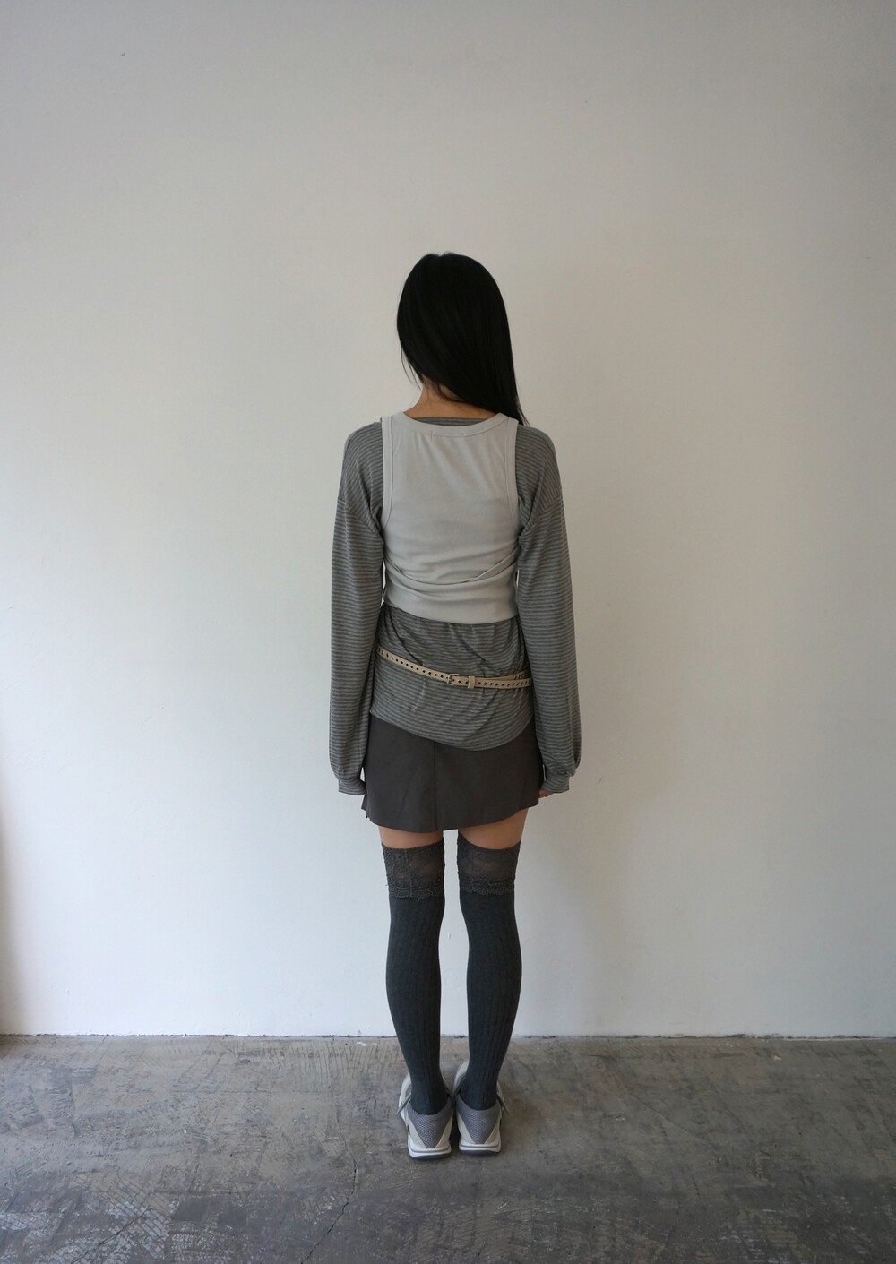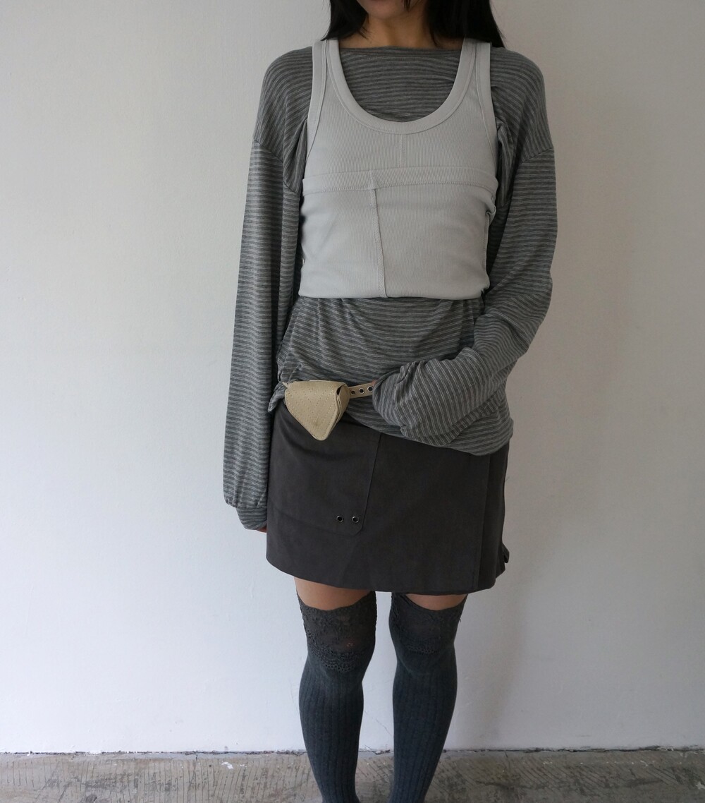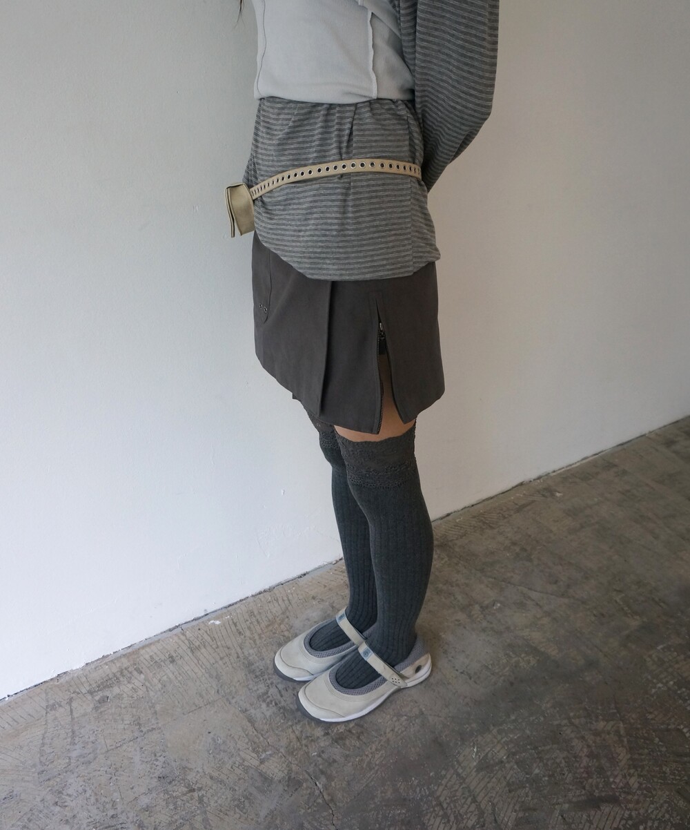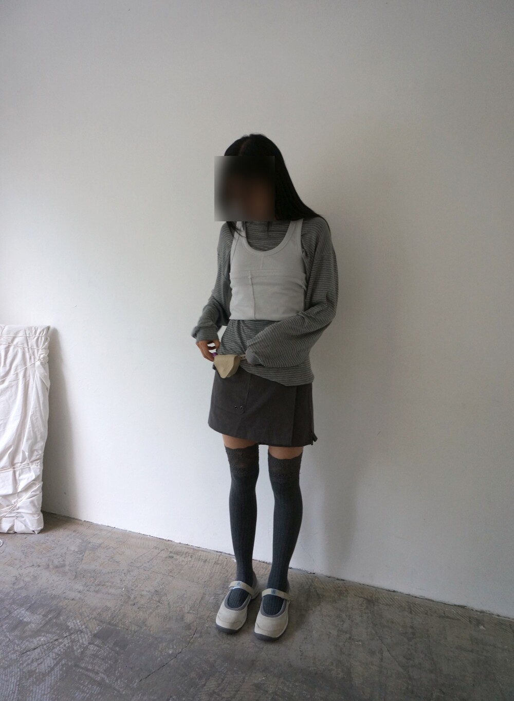 ( 허리를 최대로 늘렸을 시 밑단 트임이 생겨 레이어드용으로만 착용가능합니다. )