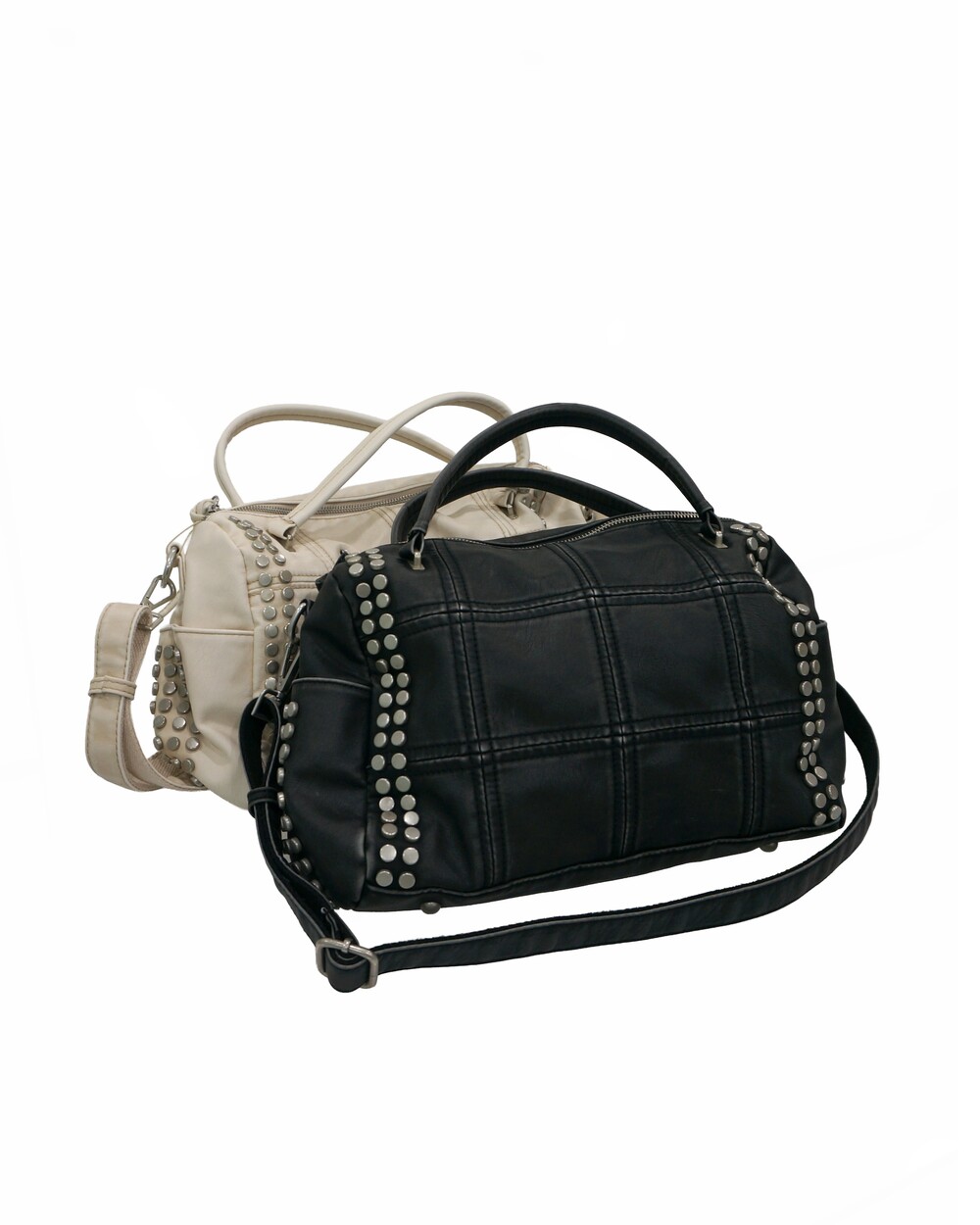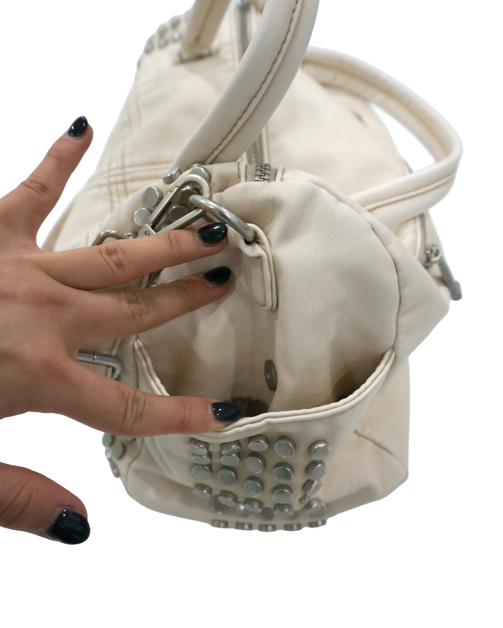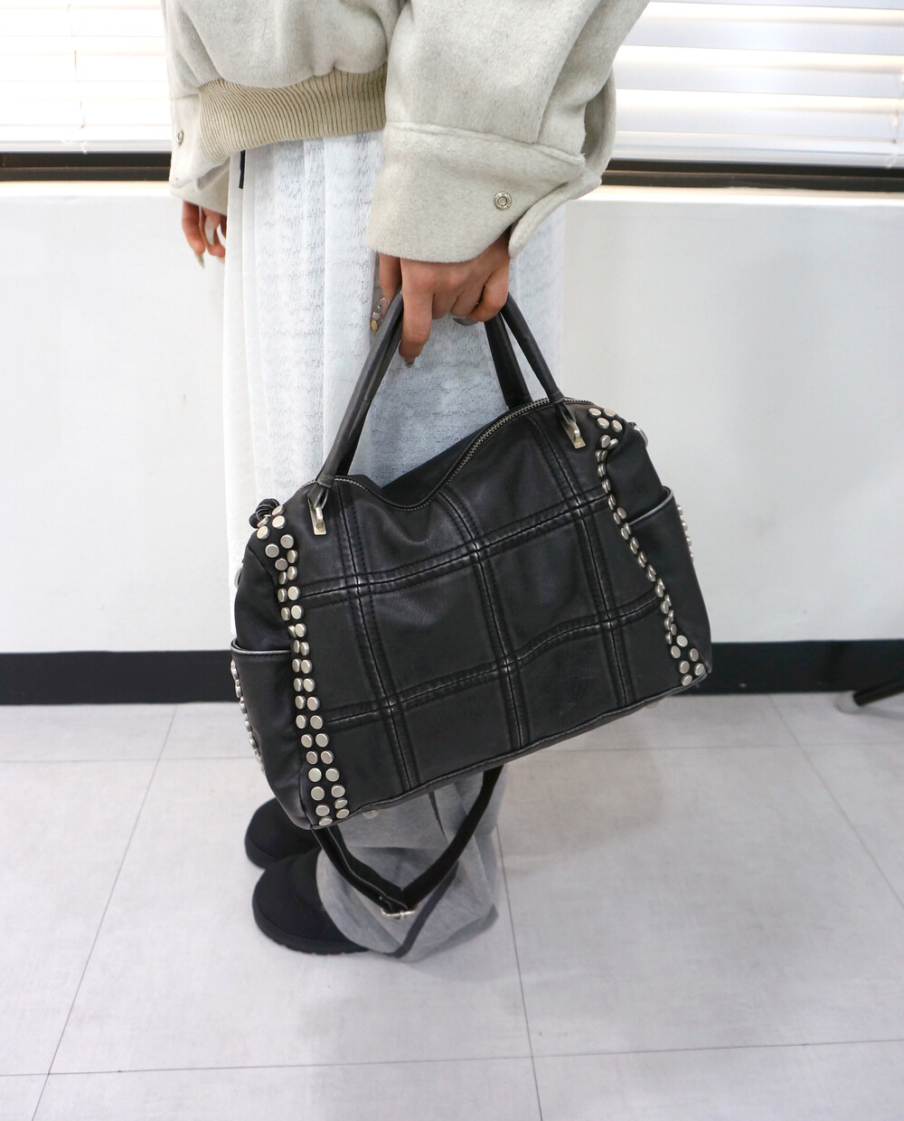 - 스터드, 스퀘어 스티치 디테일의 백.