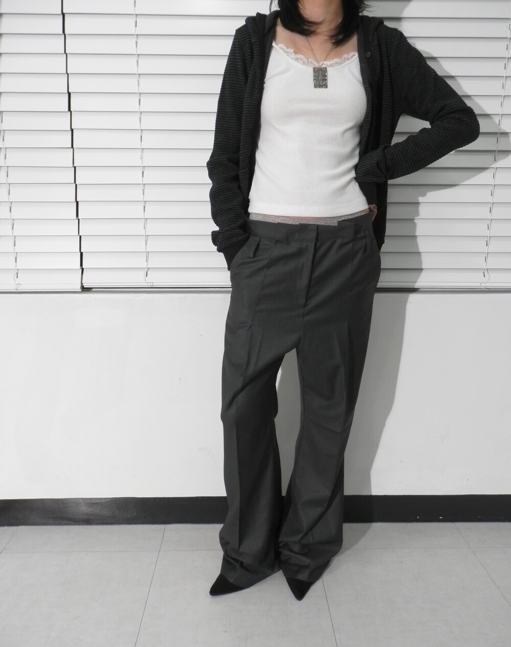- 은근한 광택감이 느껴지는 부츠컷 슬랙스.