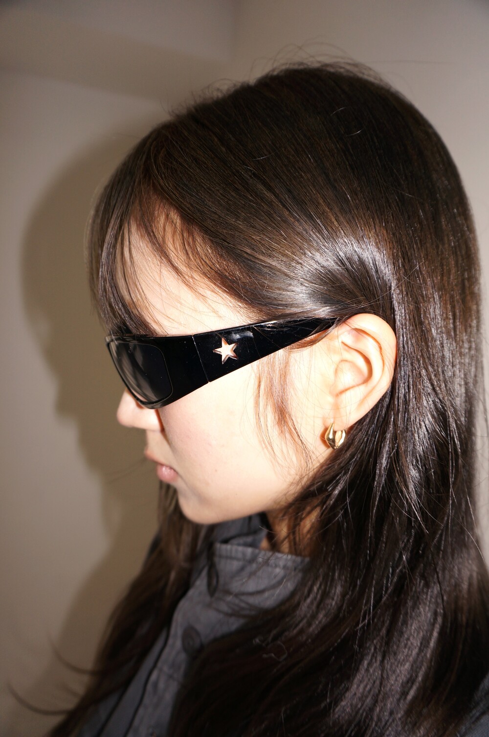 - 옆면 별 디테일의 선글라스.