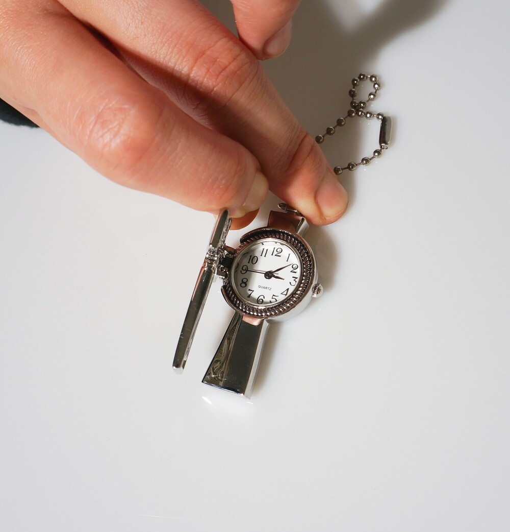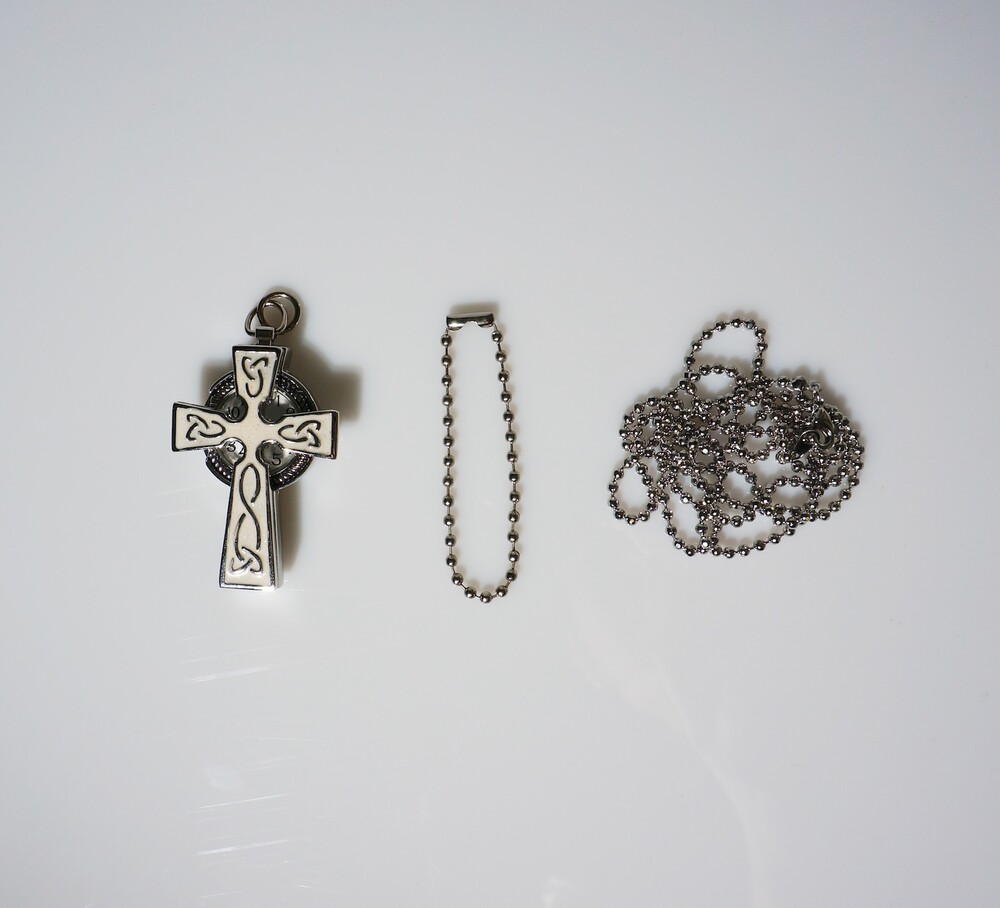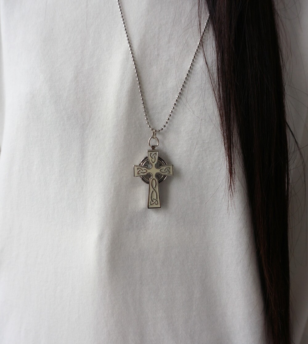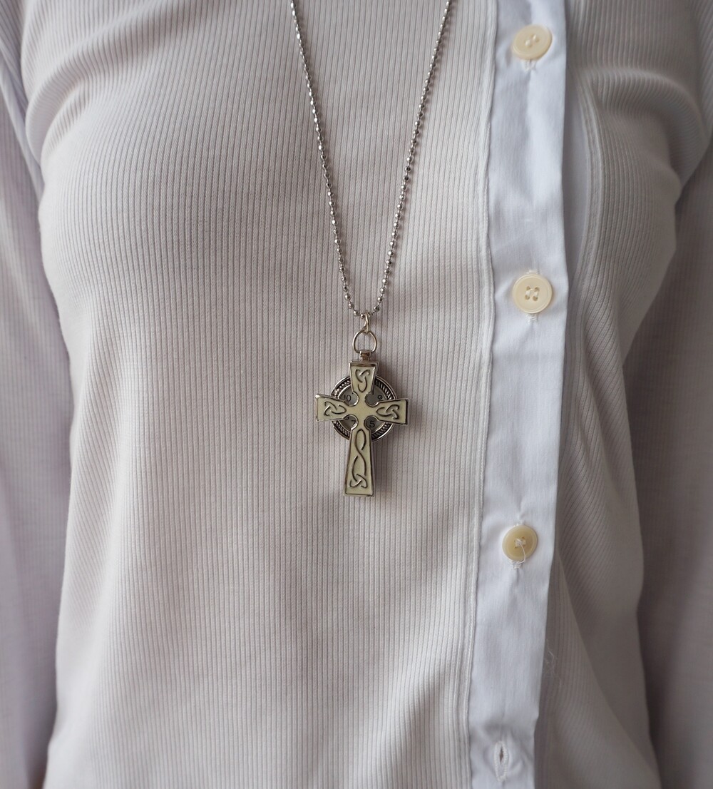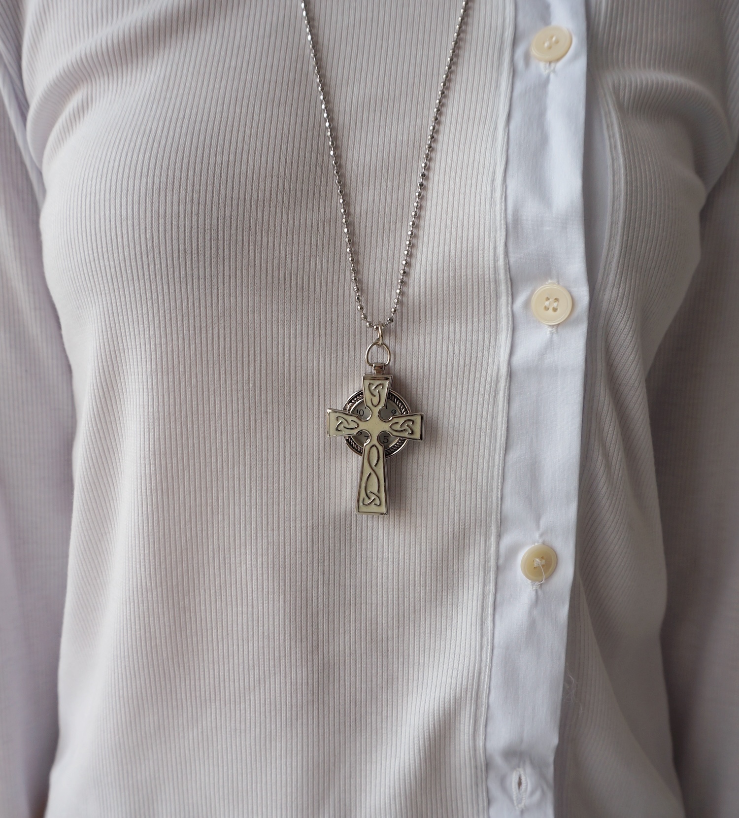 - 크로스 형태의 펜던트 속에 시계가 숨겨진 디자인.