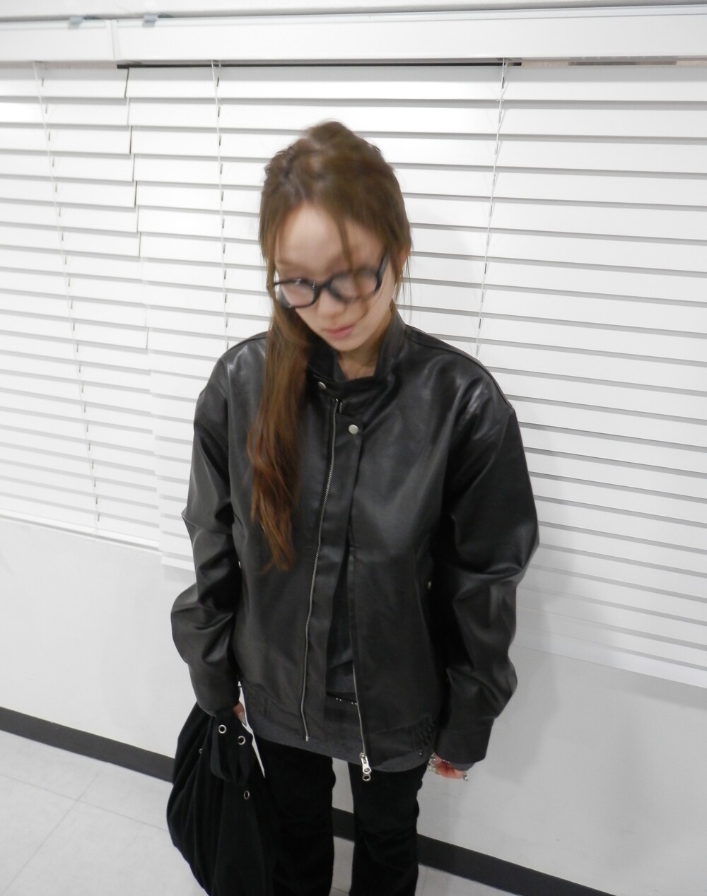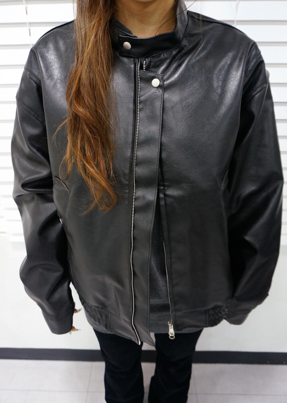 - 독특한 스냅버튼-지퍼라인 디테일의 레더자켓.