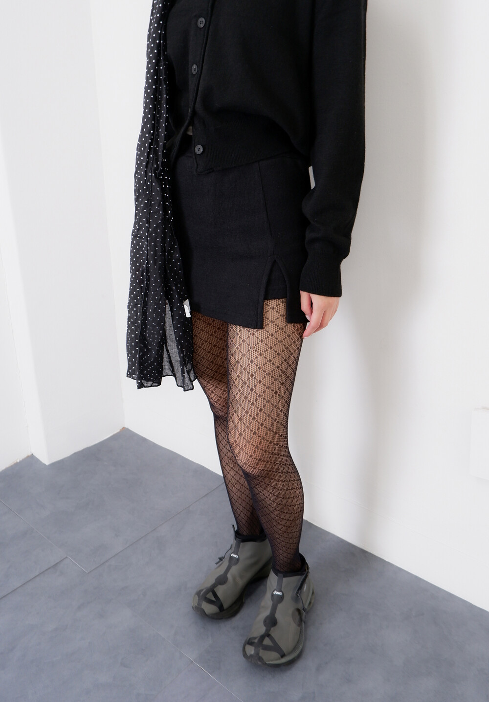 * 부담스럽지 않은 다이아 메쉬패턴의 스타킹.