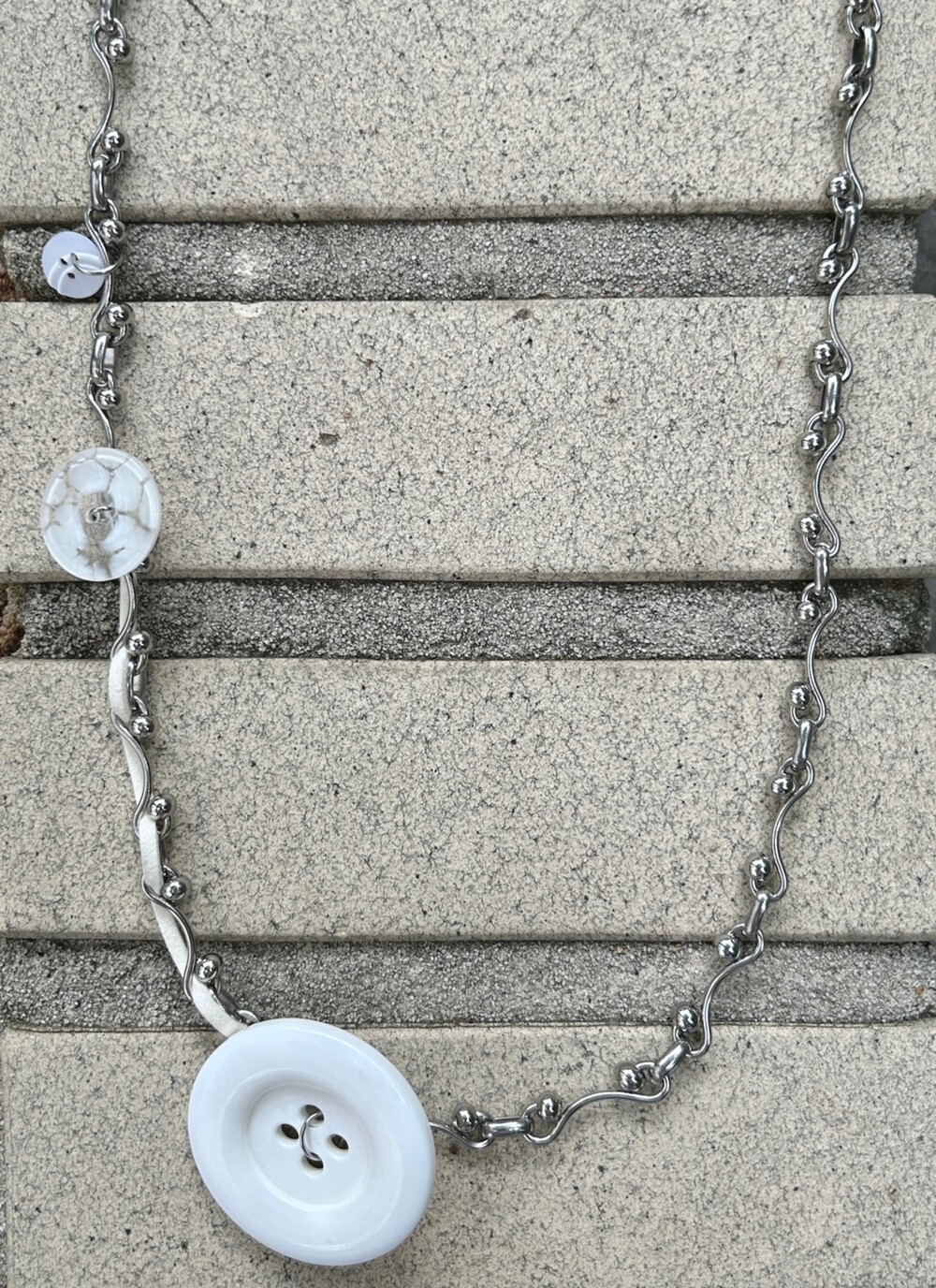 White button long necklace