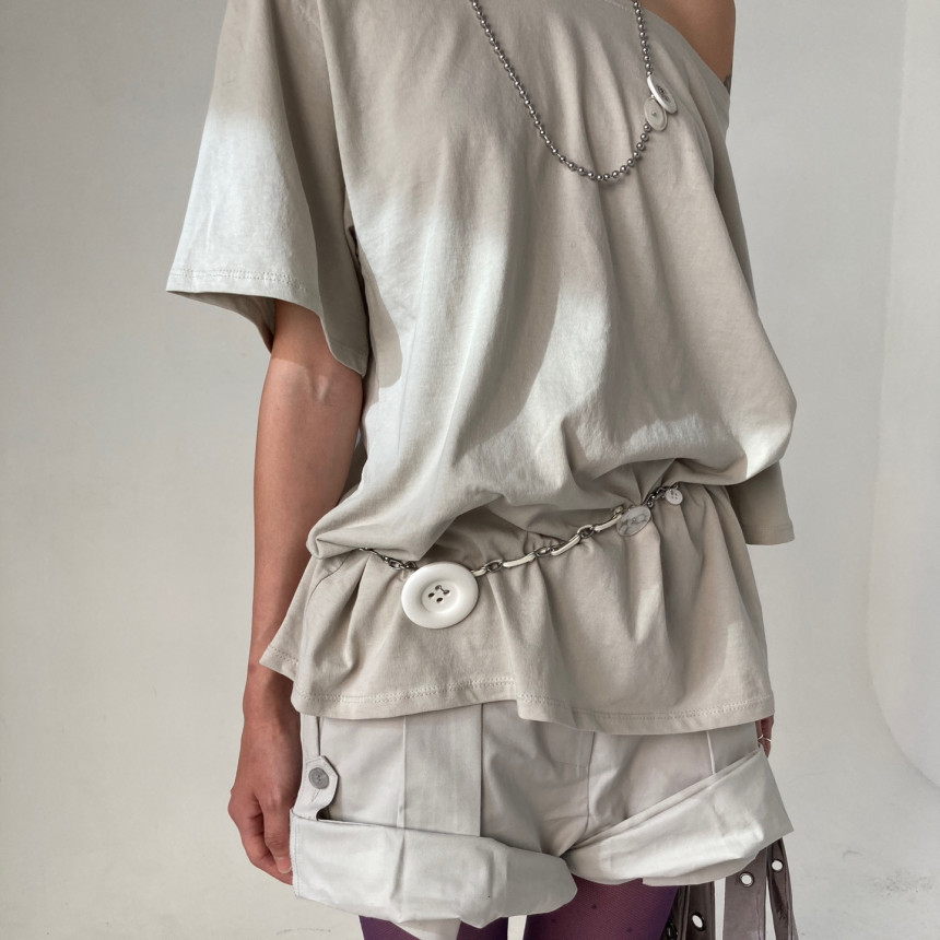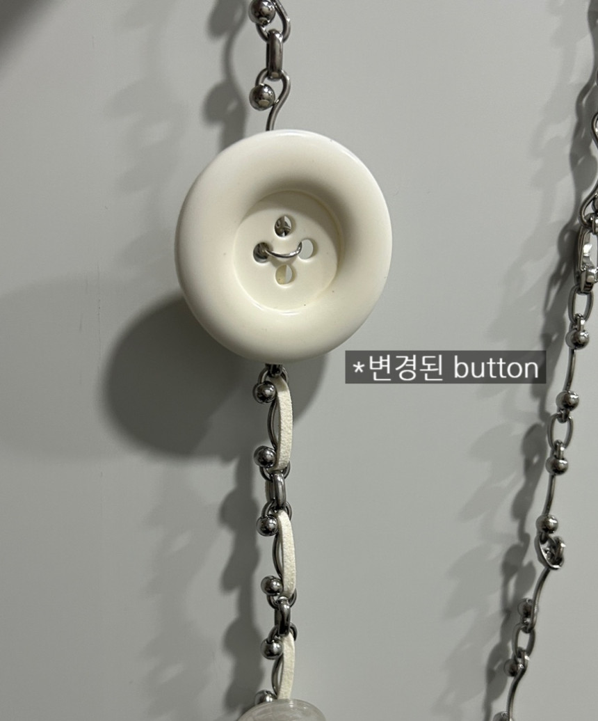* 무광 화이트 버튼 부자재에 오염 이슈로 체인과 더 잘 어울리는 은은한 유광 버튼으로 변경되었습니다.