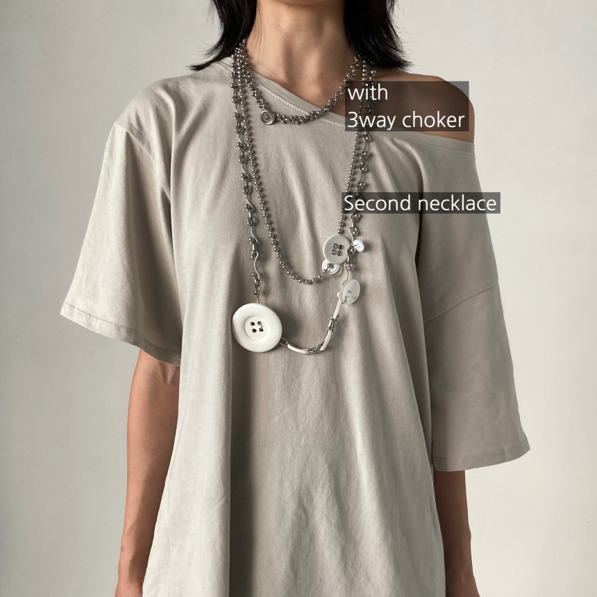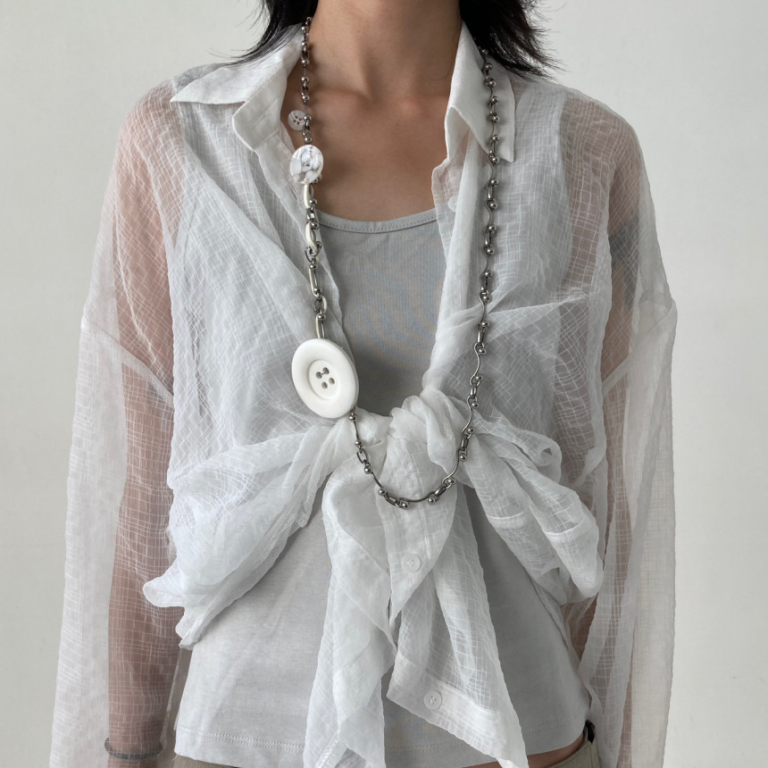 [White button long necklace] – by 3en3ai