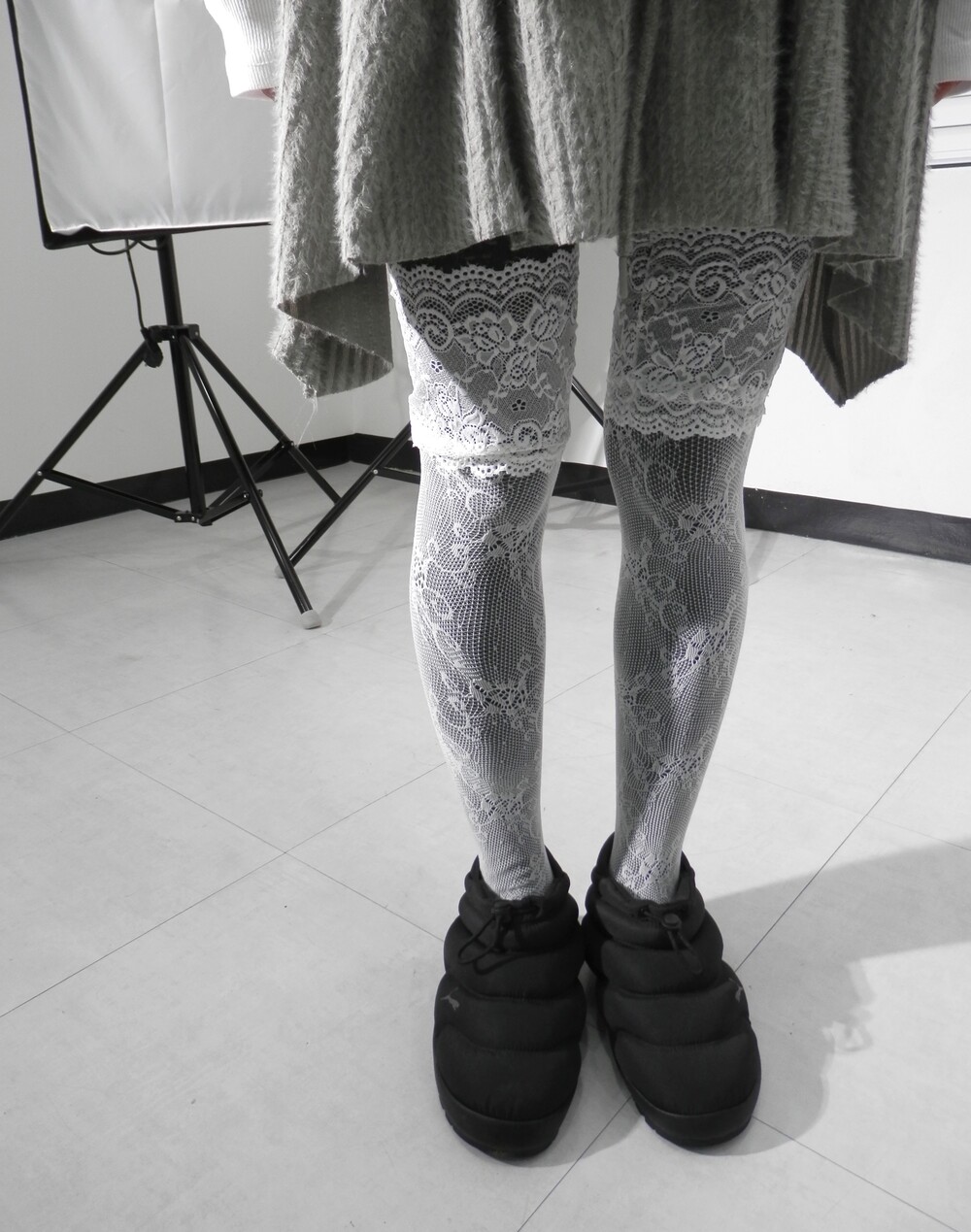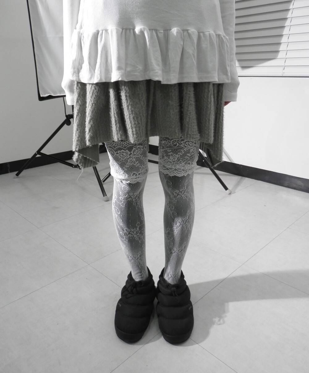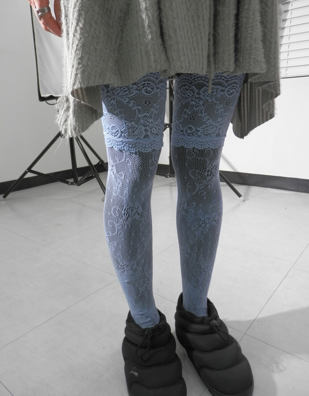 - 화려한 플라워 패턴의 메쉬 니삭스.