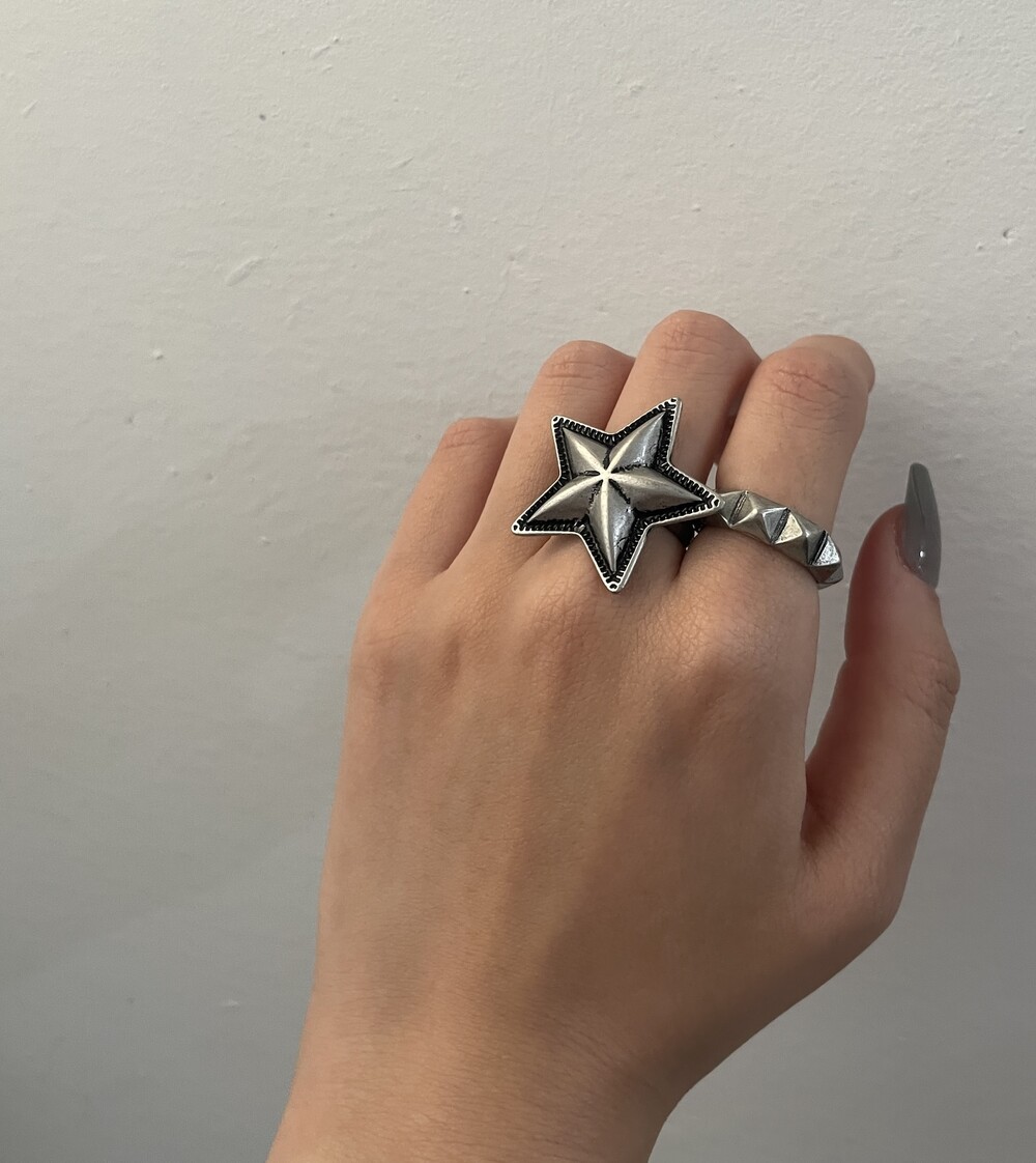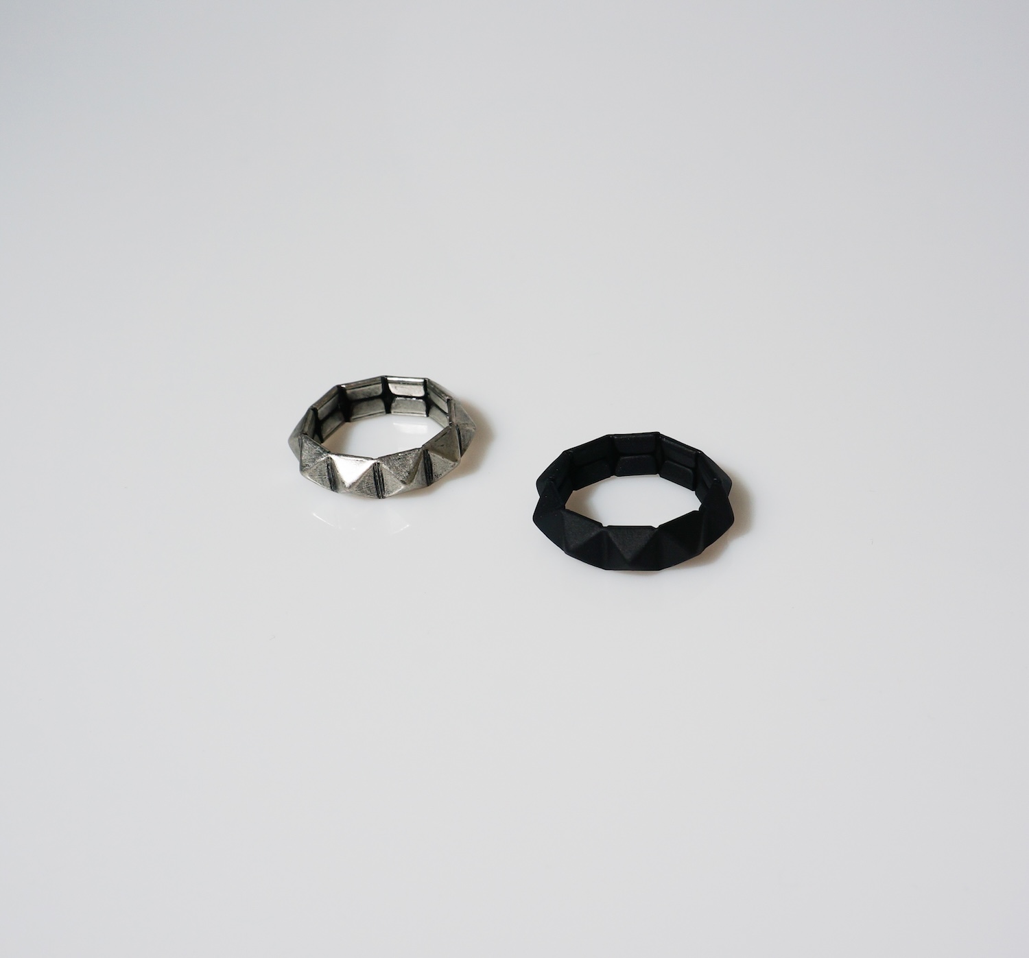 - 스터드로 이루어진 링. 단독 착용은 물론 다양한 레이어드가 가능한 디자인.