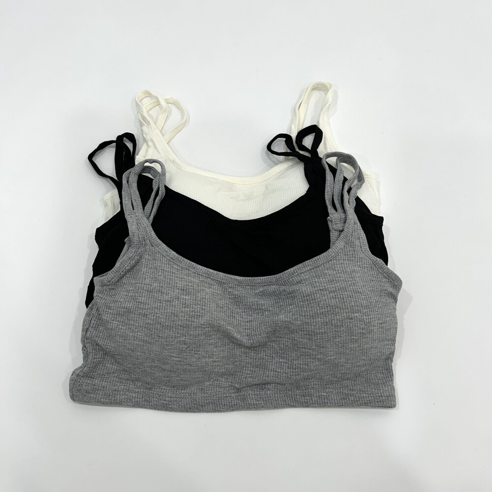 - 두 줄 디테일의 캡이 내장 된 브라탑.