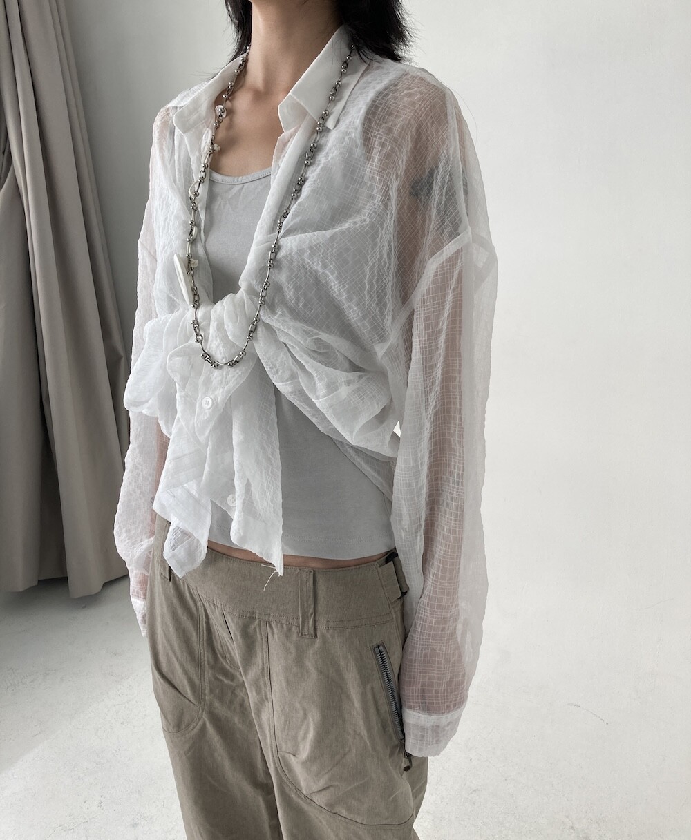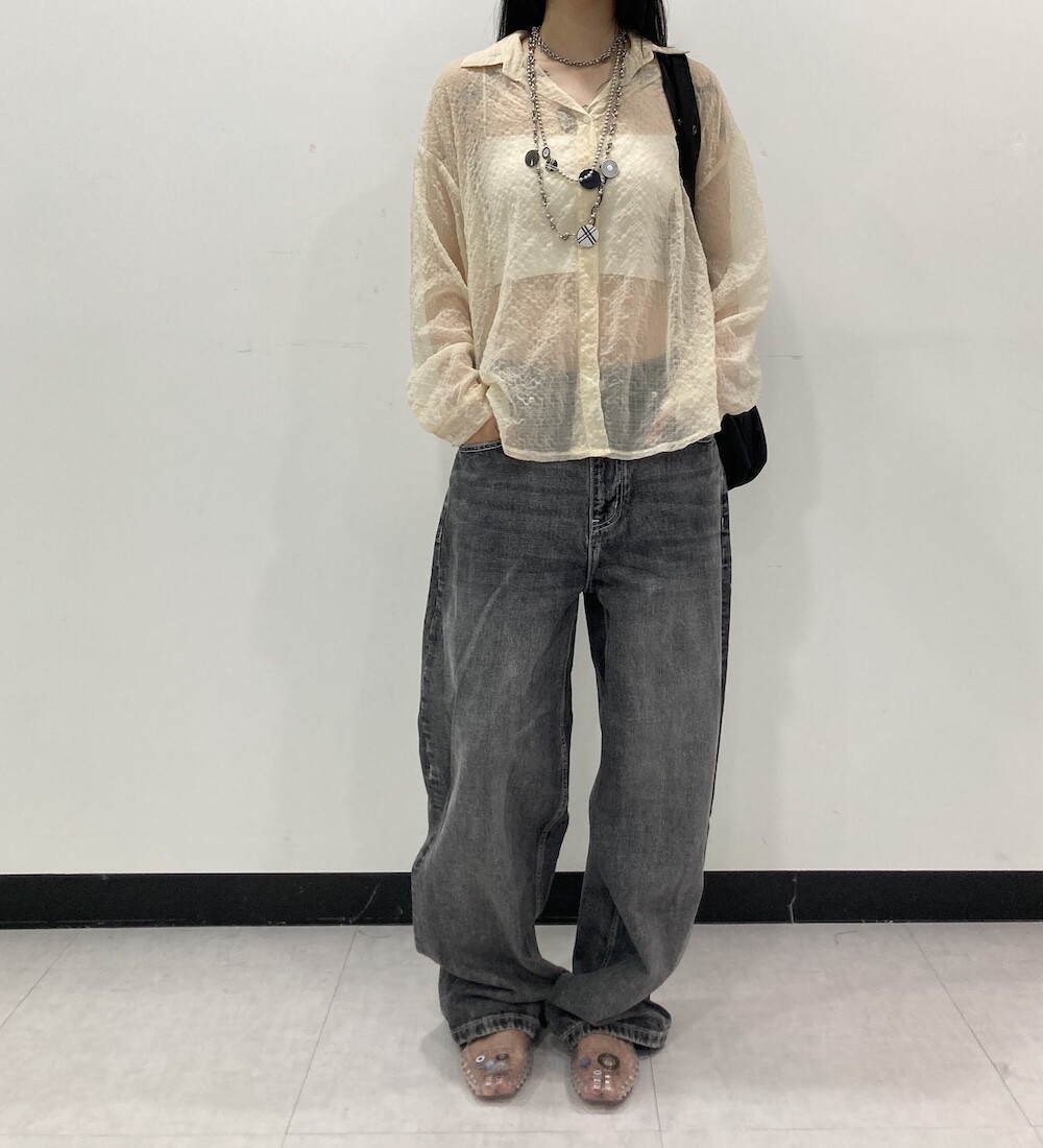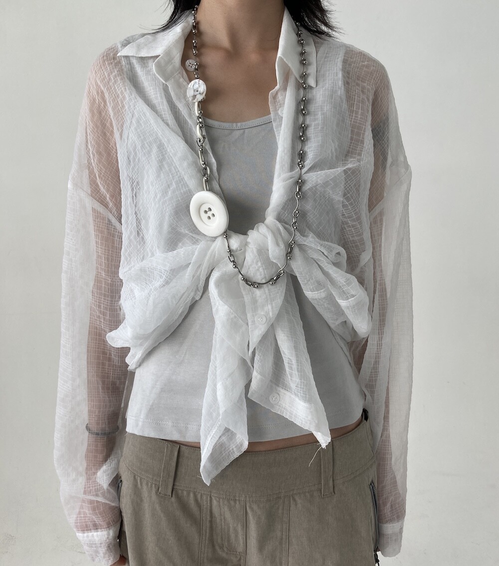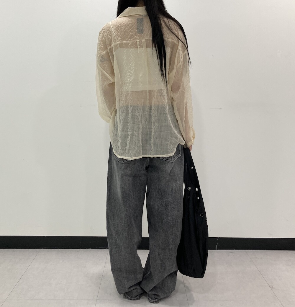 - 투명하게 비치는 체크셔츠.