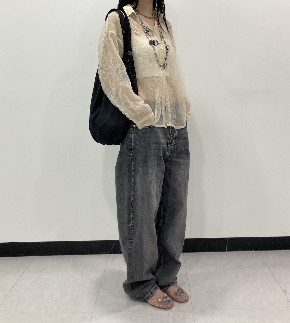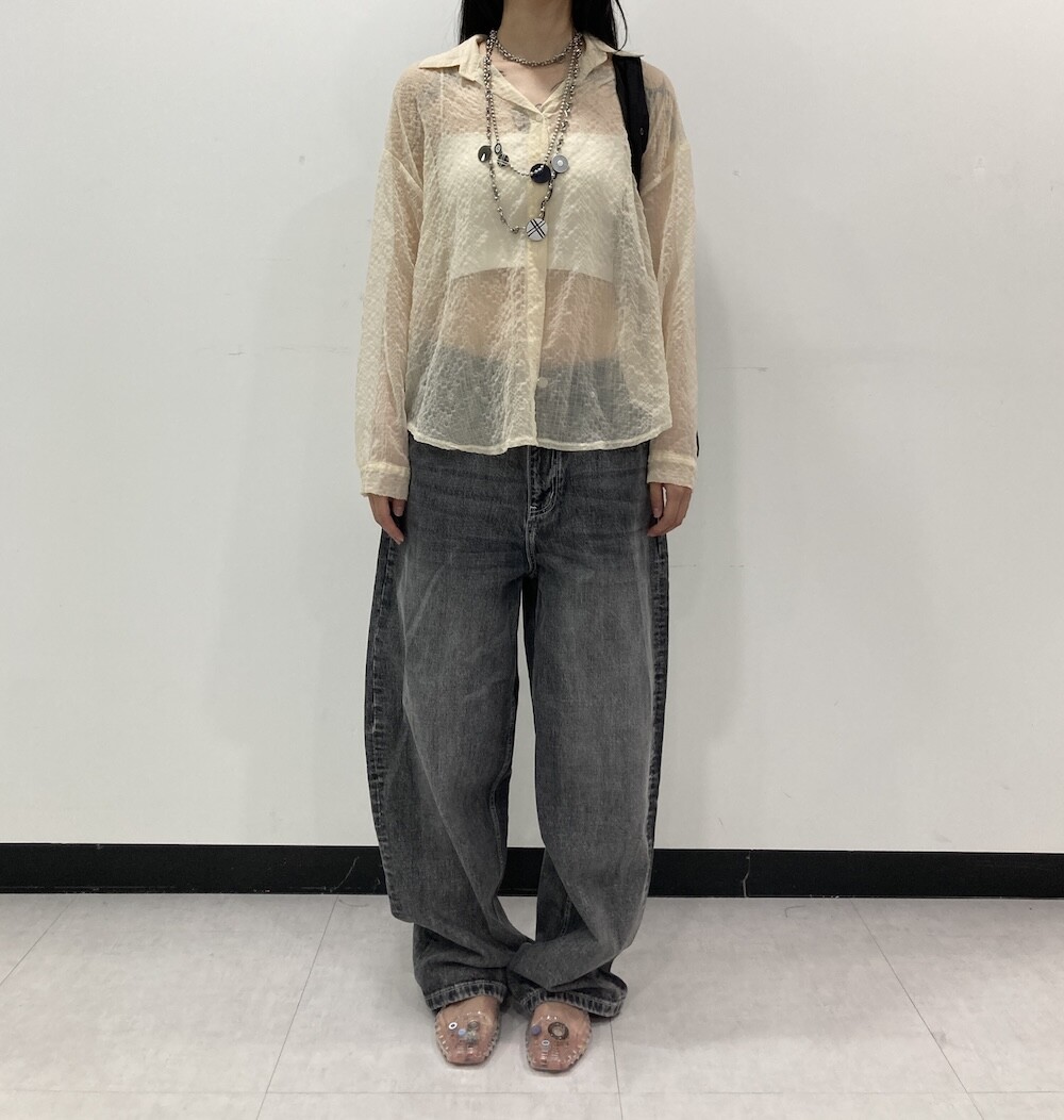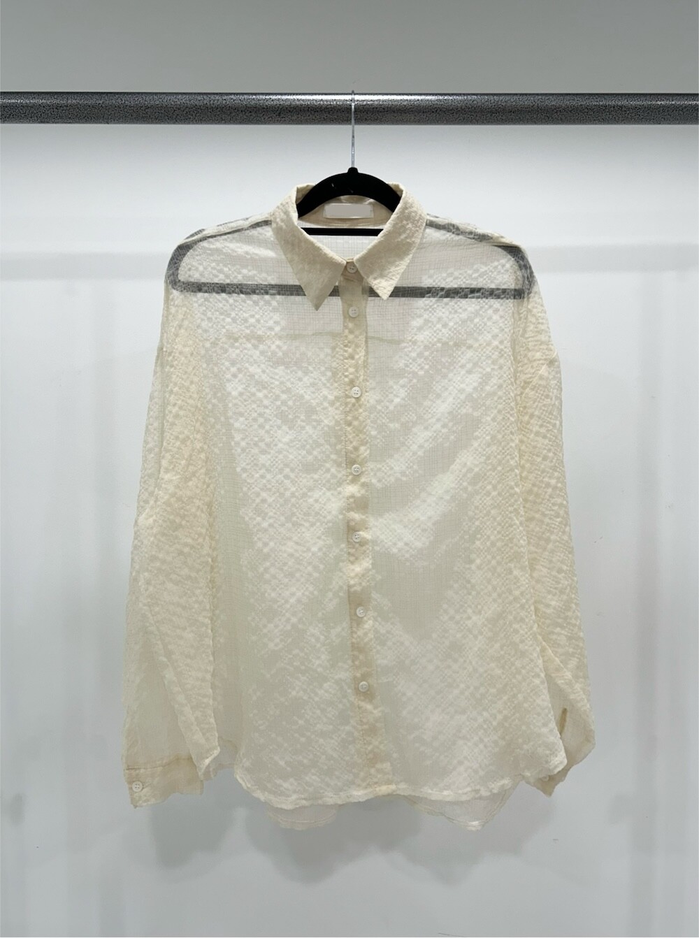 - 투명하게 비치는 체크셔츠.