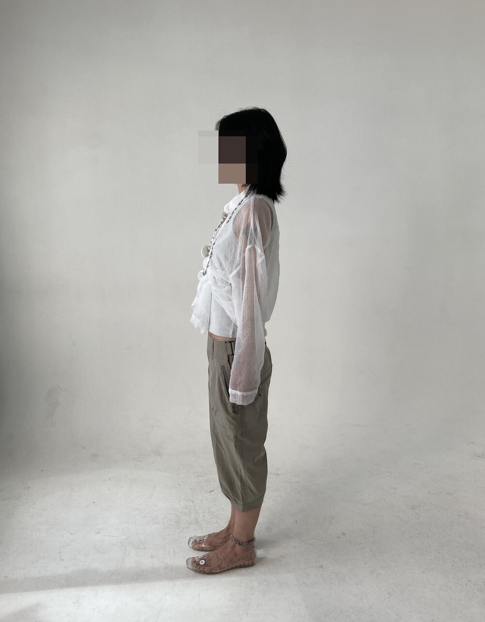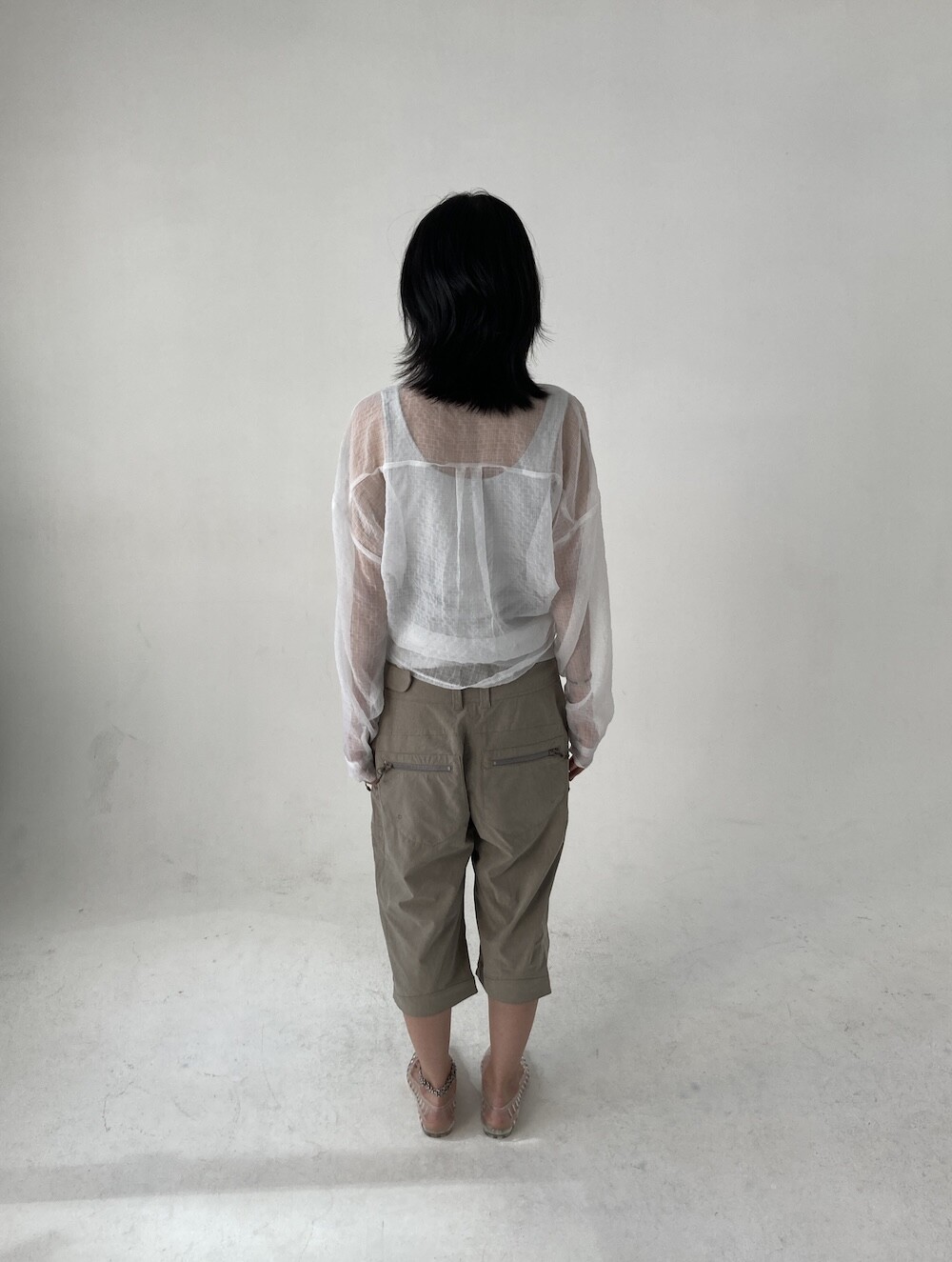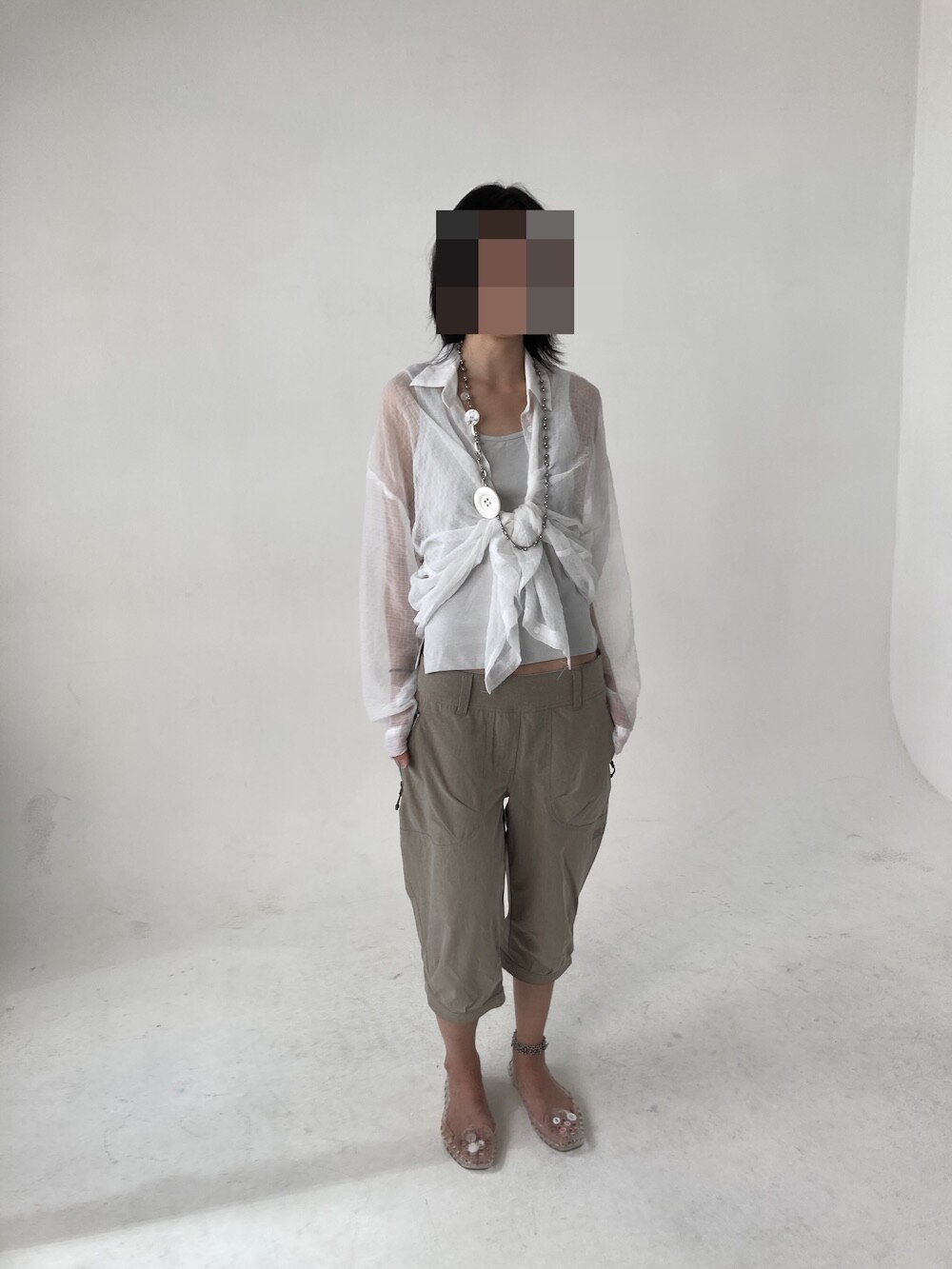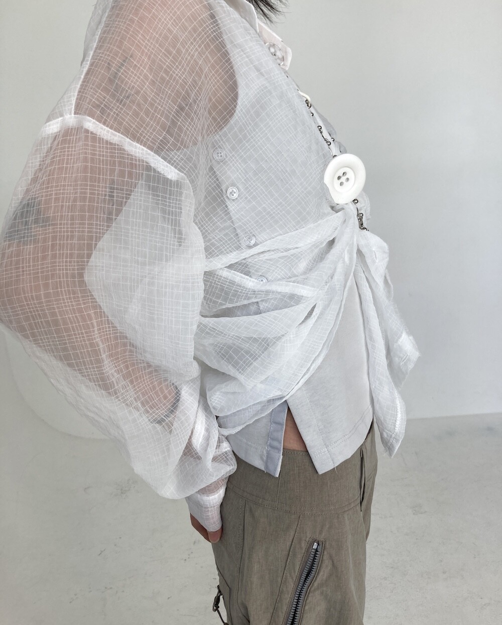 - 투명하게 비치는 체크셔츠.