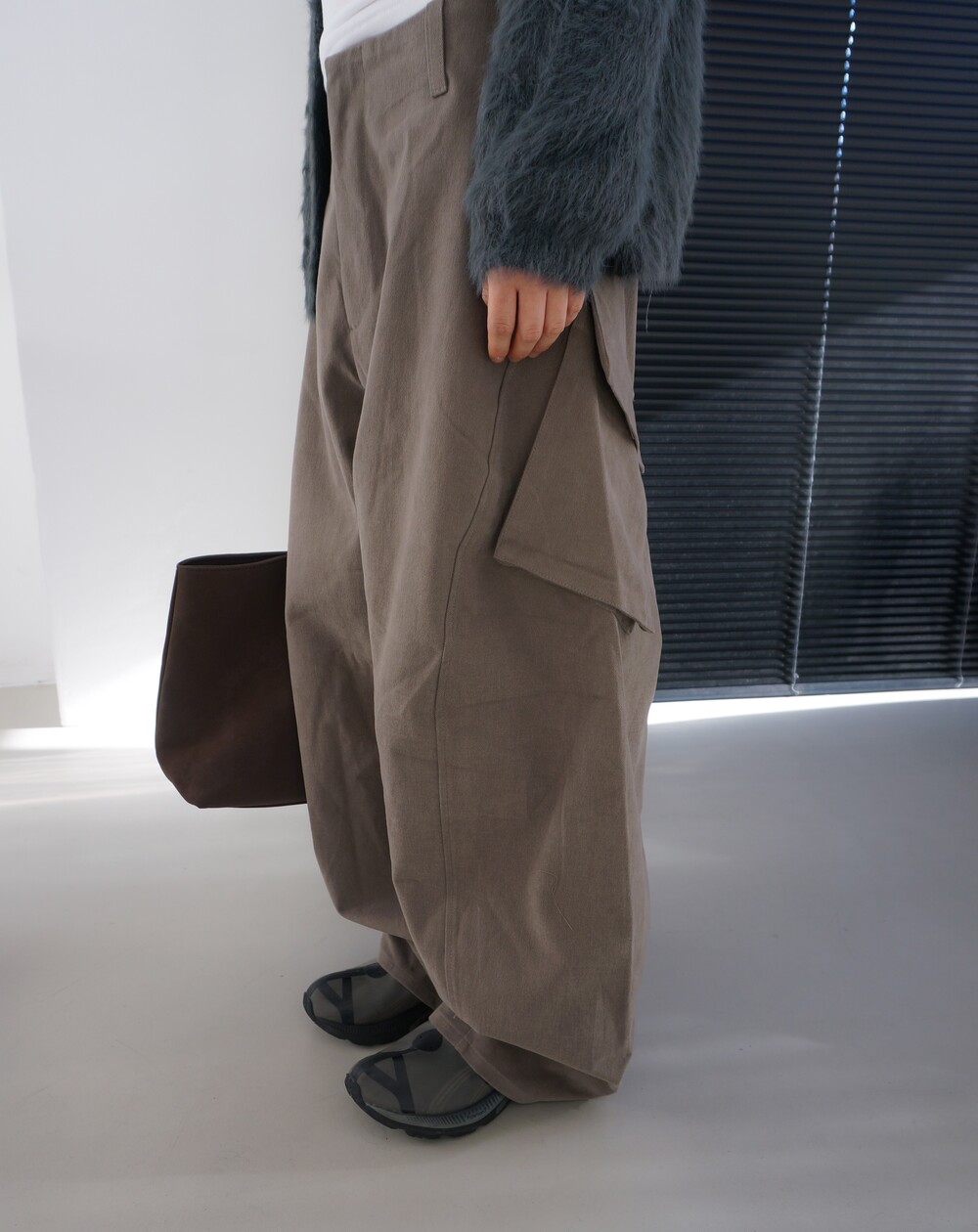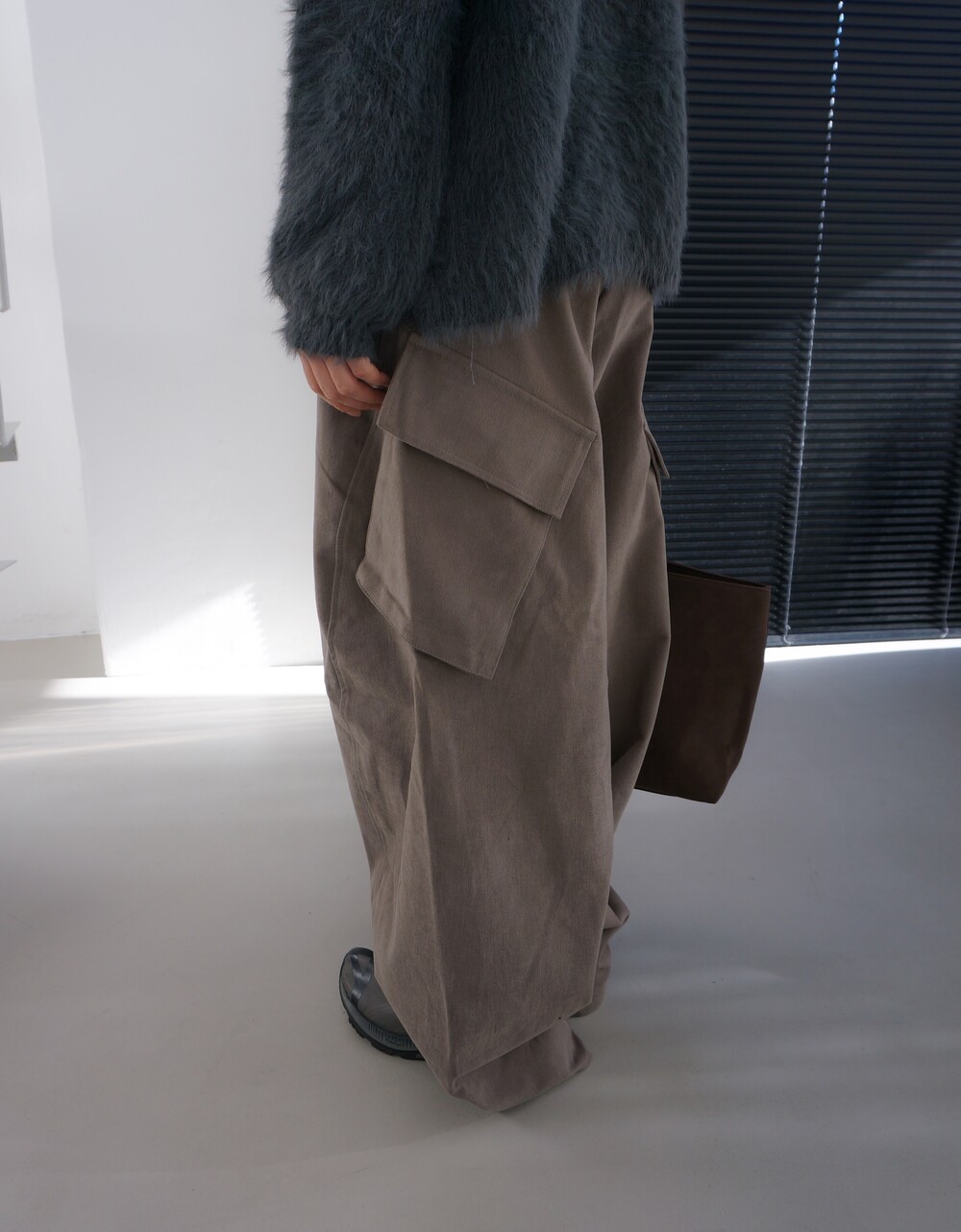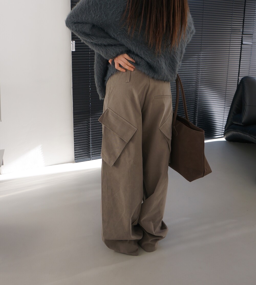 - 두께감있는 겉기모소재의 카고팬츠.