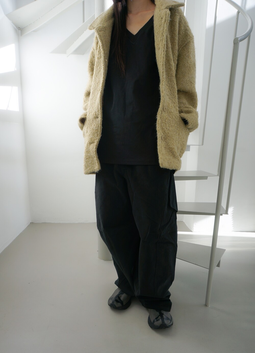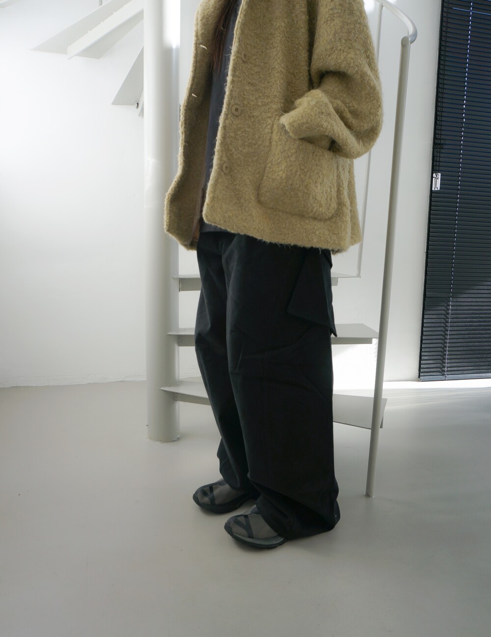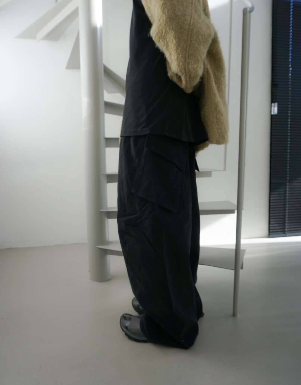 - 두께감있는 겉기모소재의 카고팬츠.