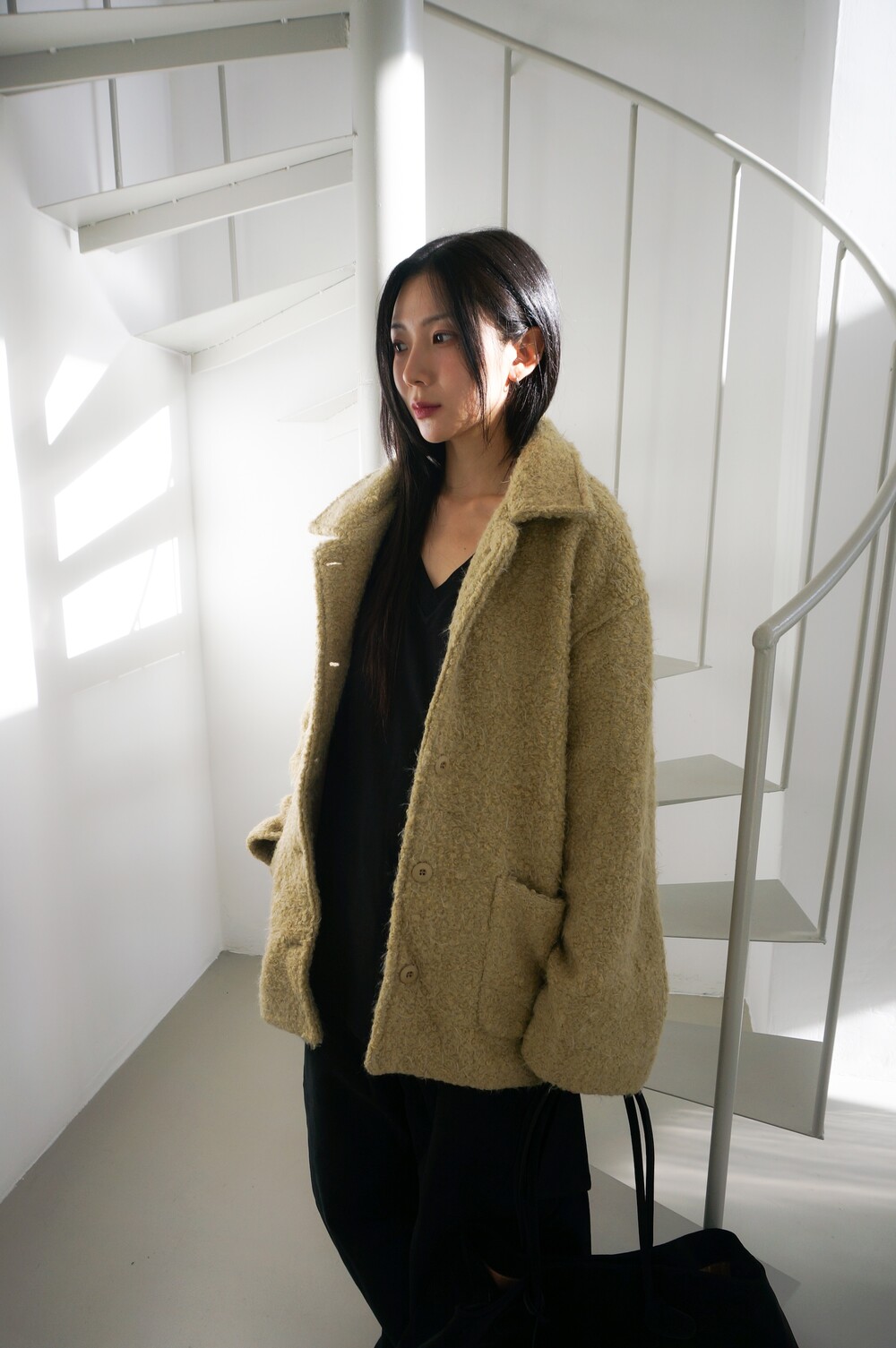 - 볼륨있는 핏, 앞면과 뒷면으로 이어지는 덮개 포켓.