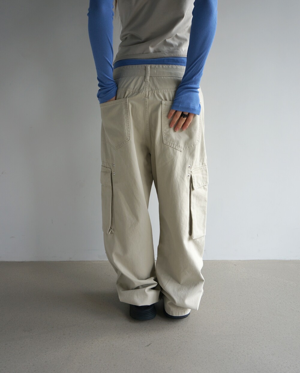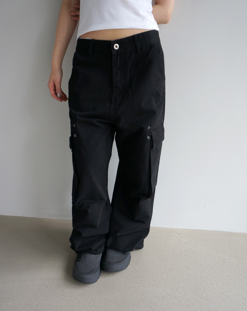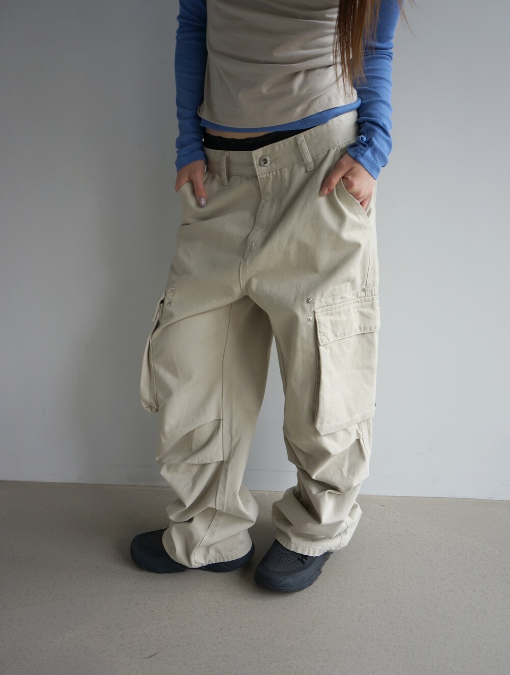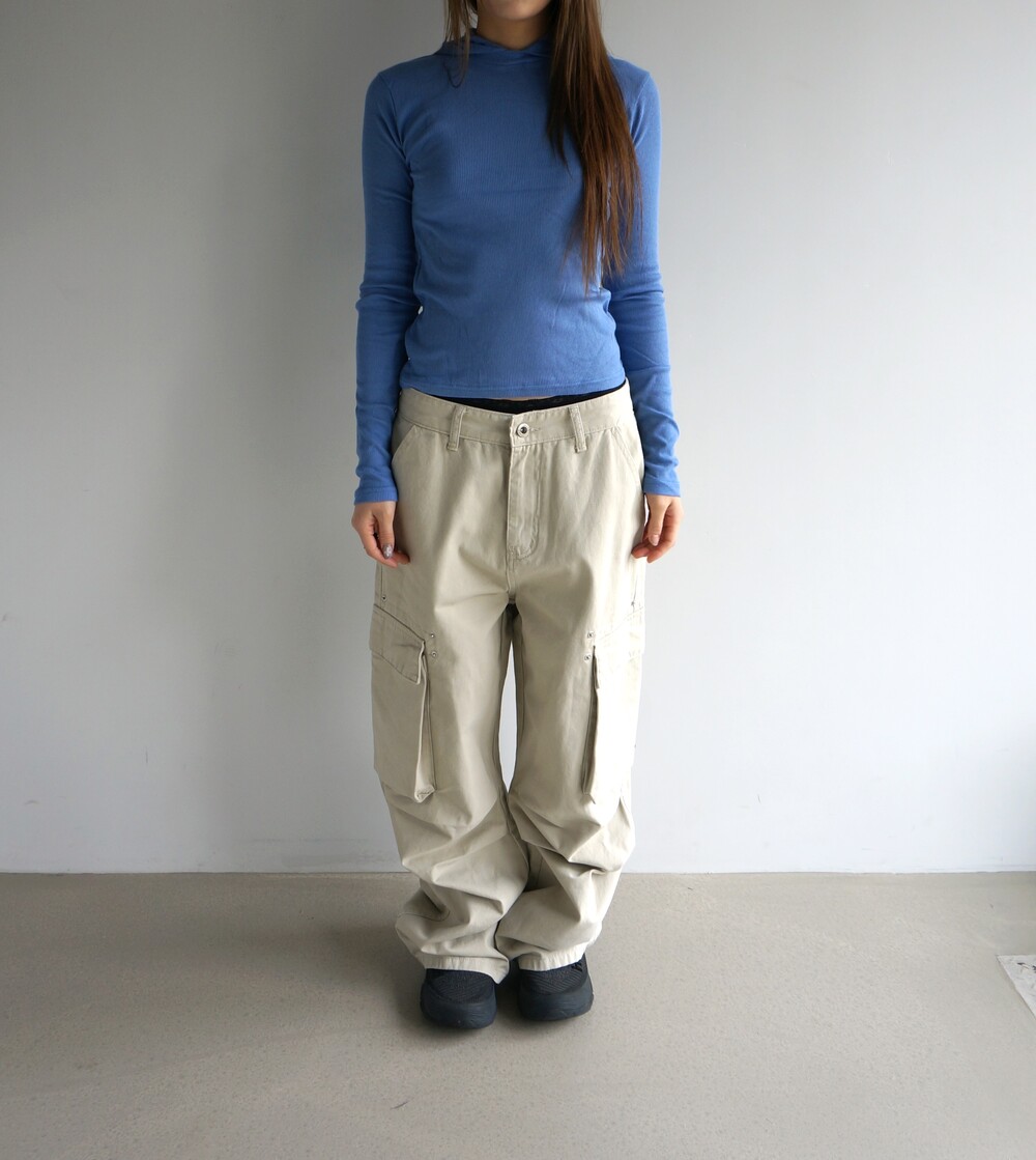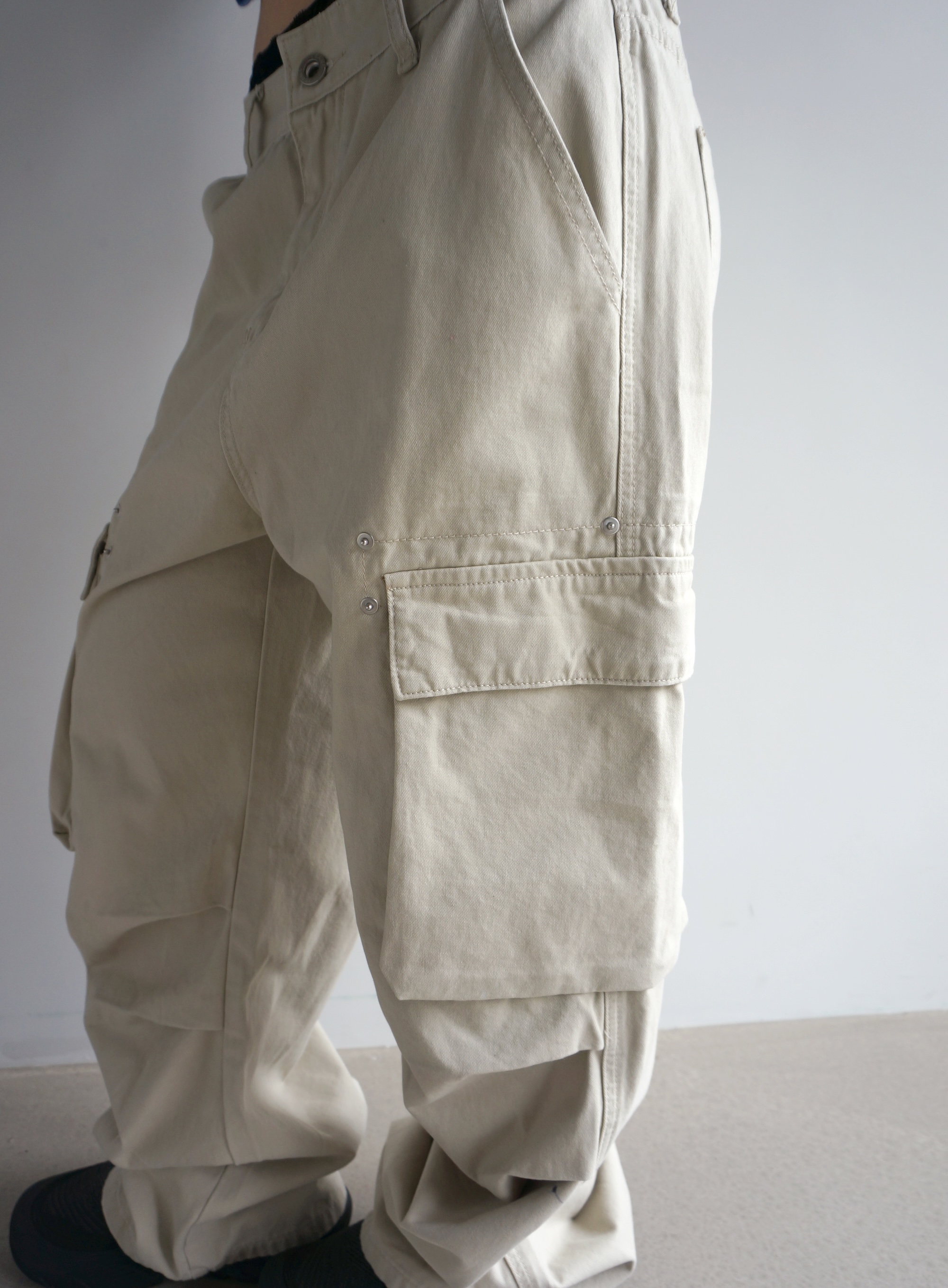 - 포켓 주변 리벳디테일의 파라슈트팬츠.