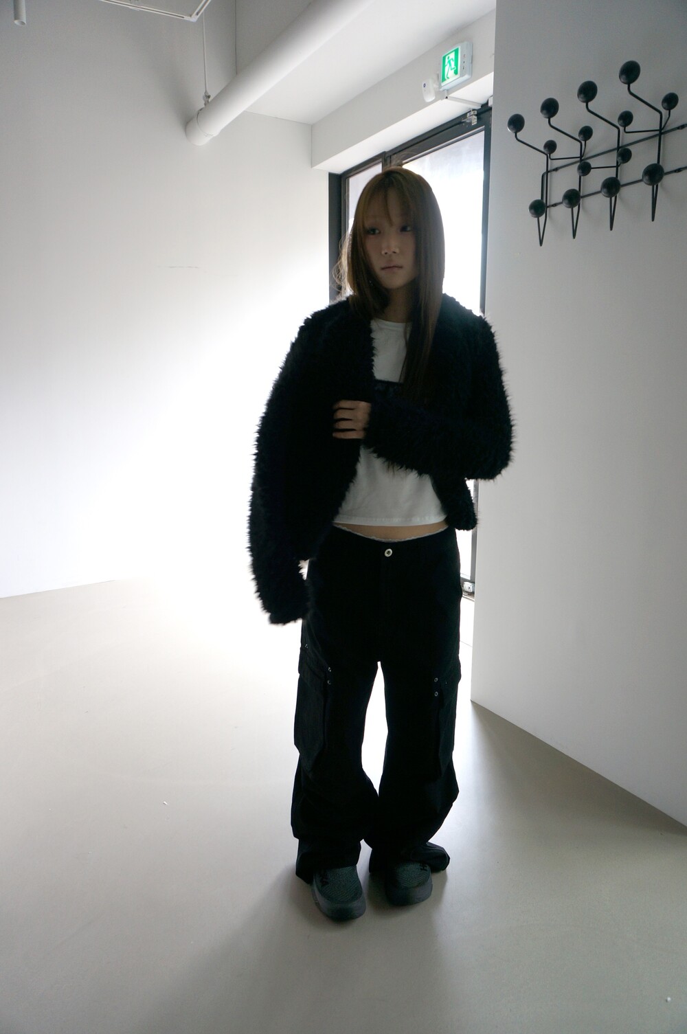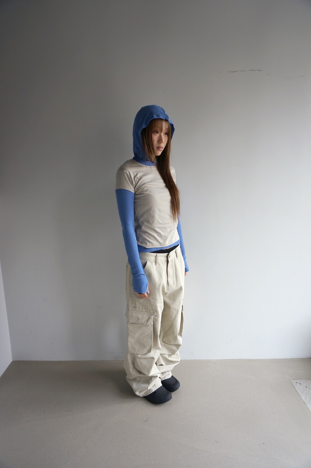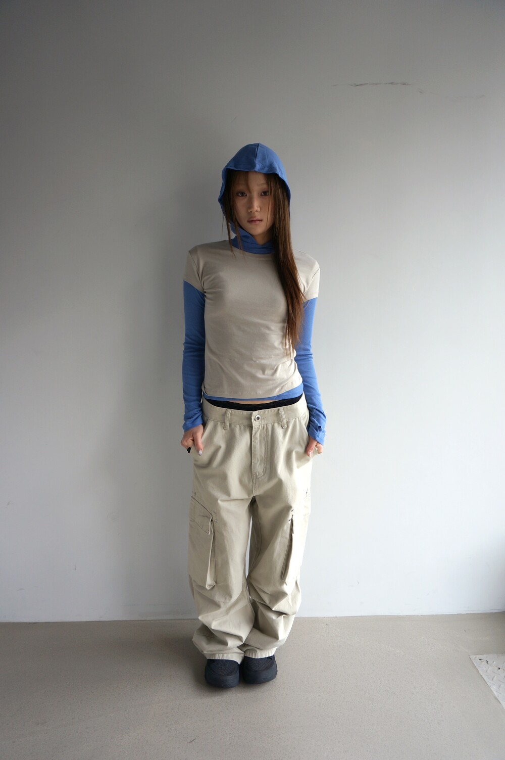 - 핀턱으로 유지되는 중성적인 볼륨감.