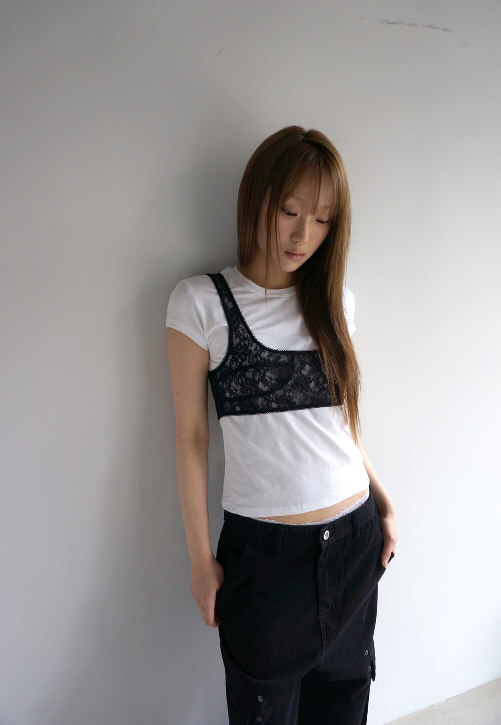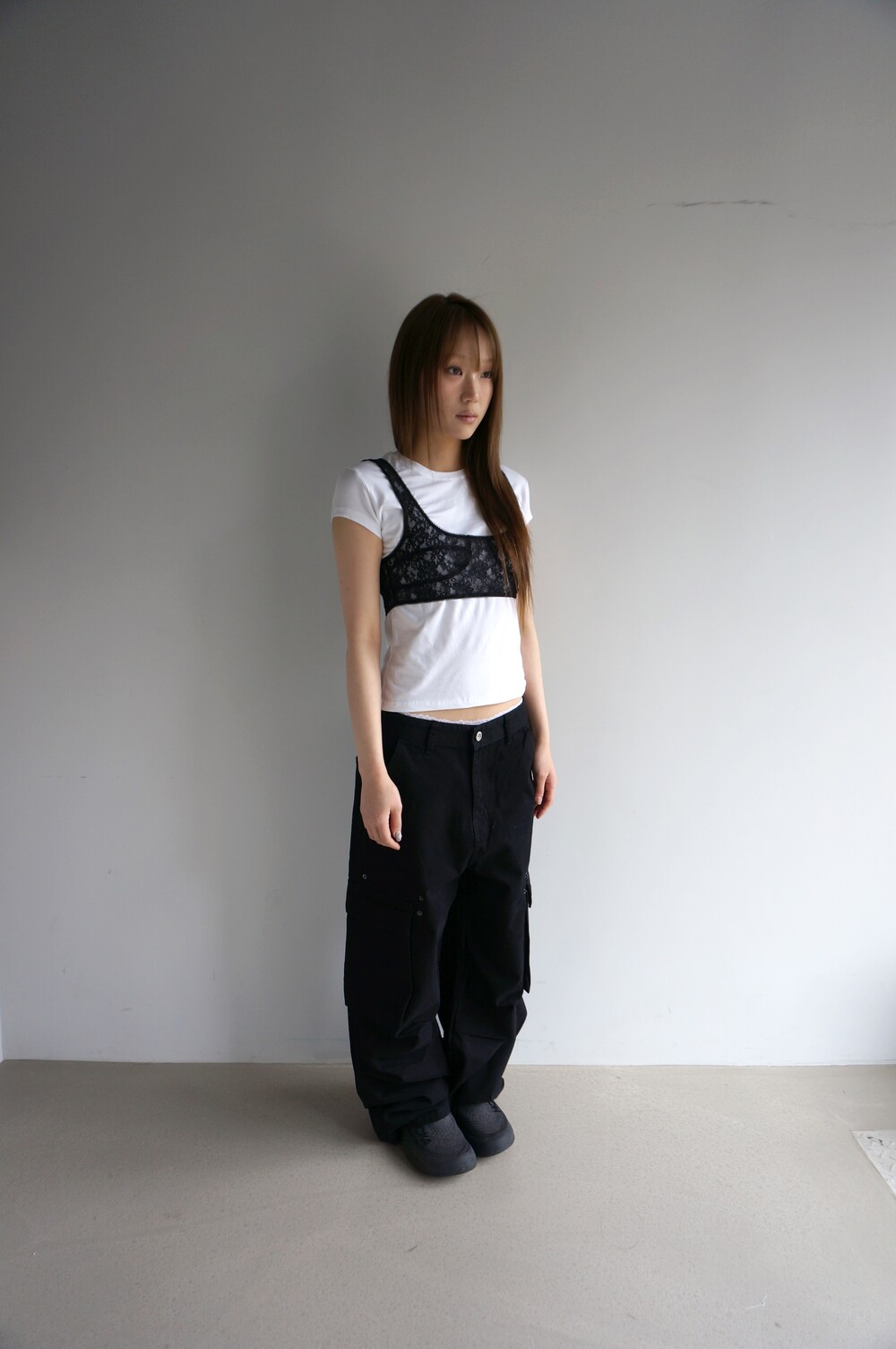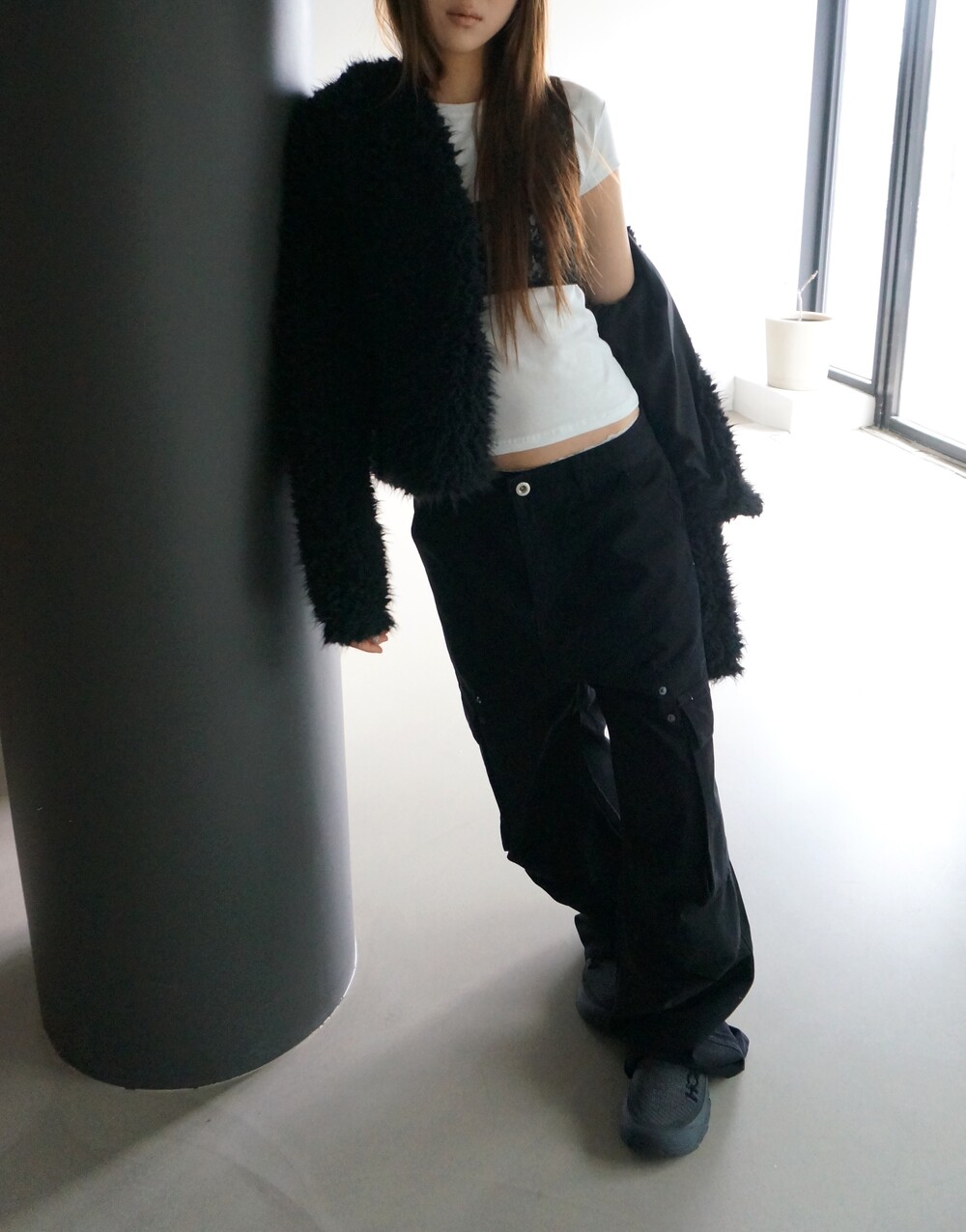S 허리38 힙55 밑위34 허벅지35 밑단26.5 총장104 (모델착용)