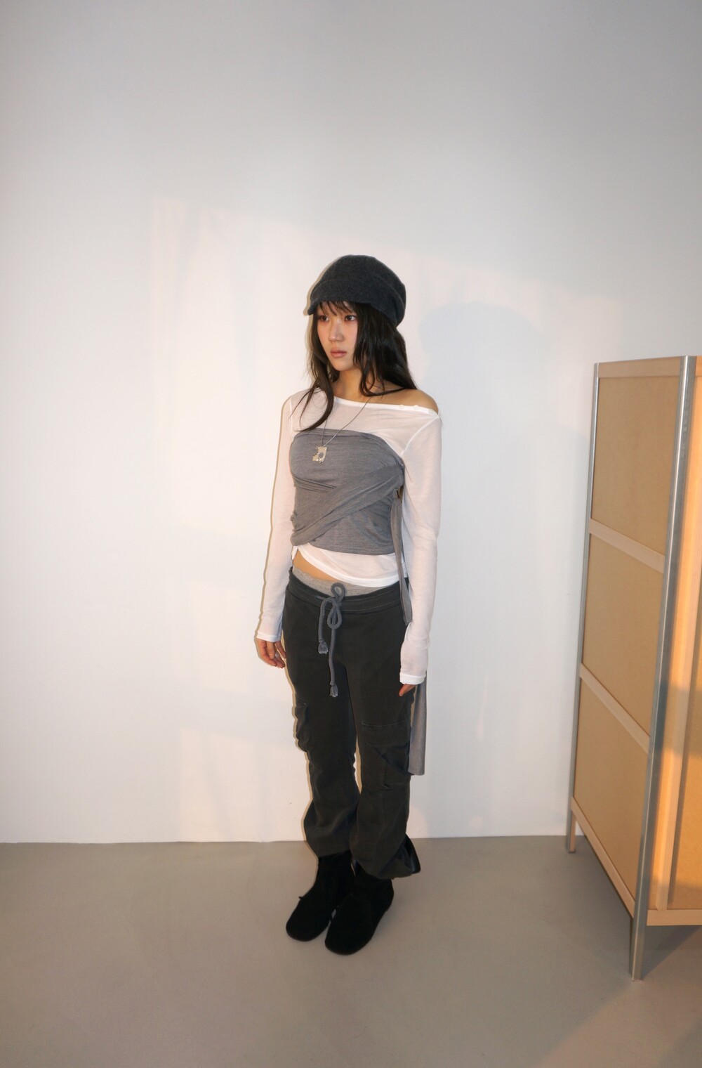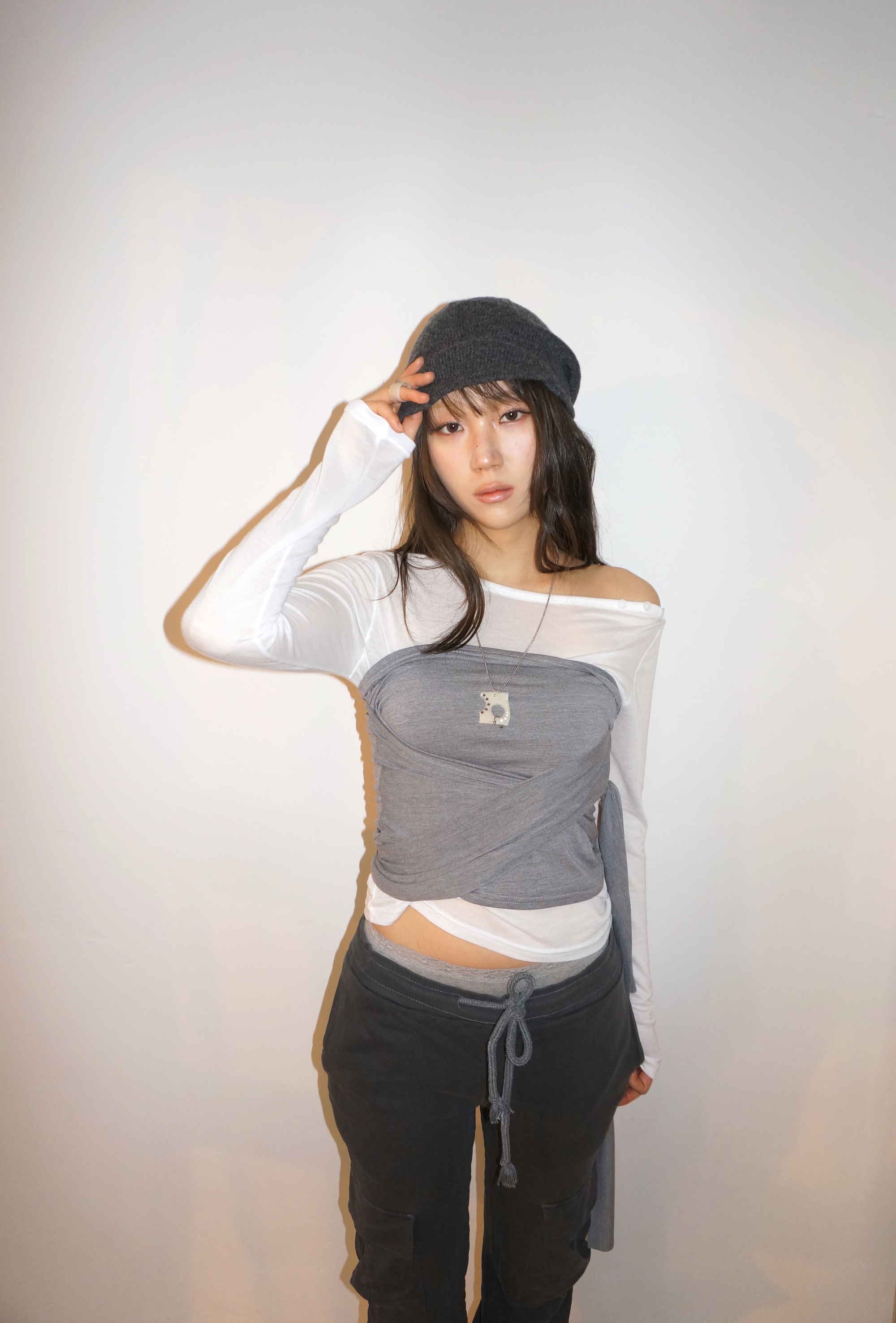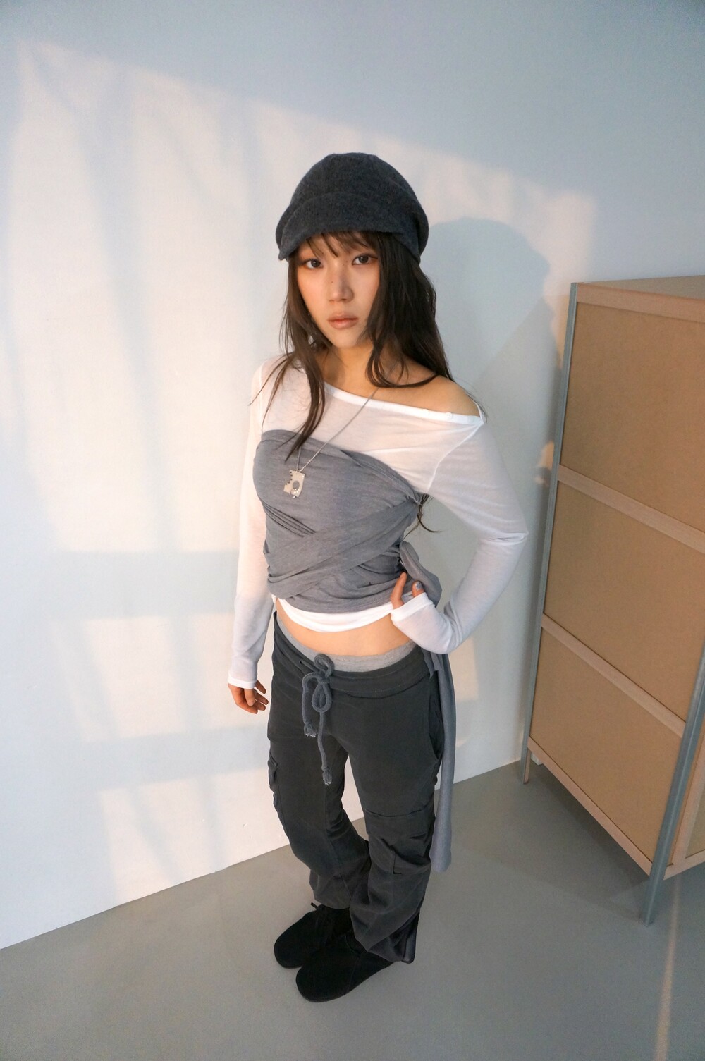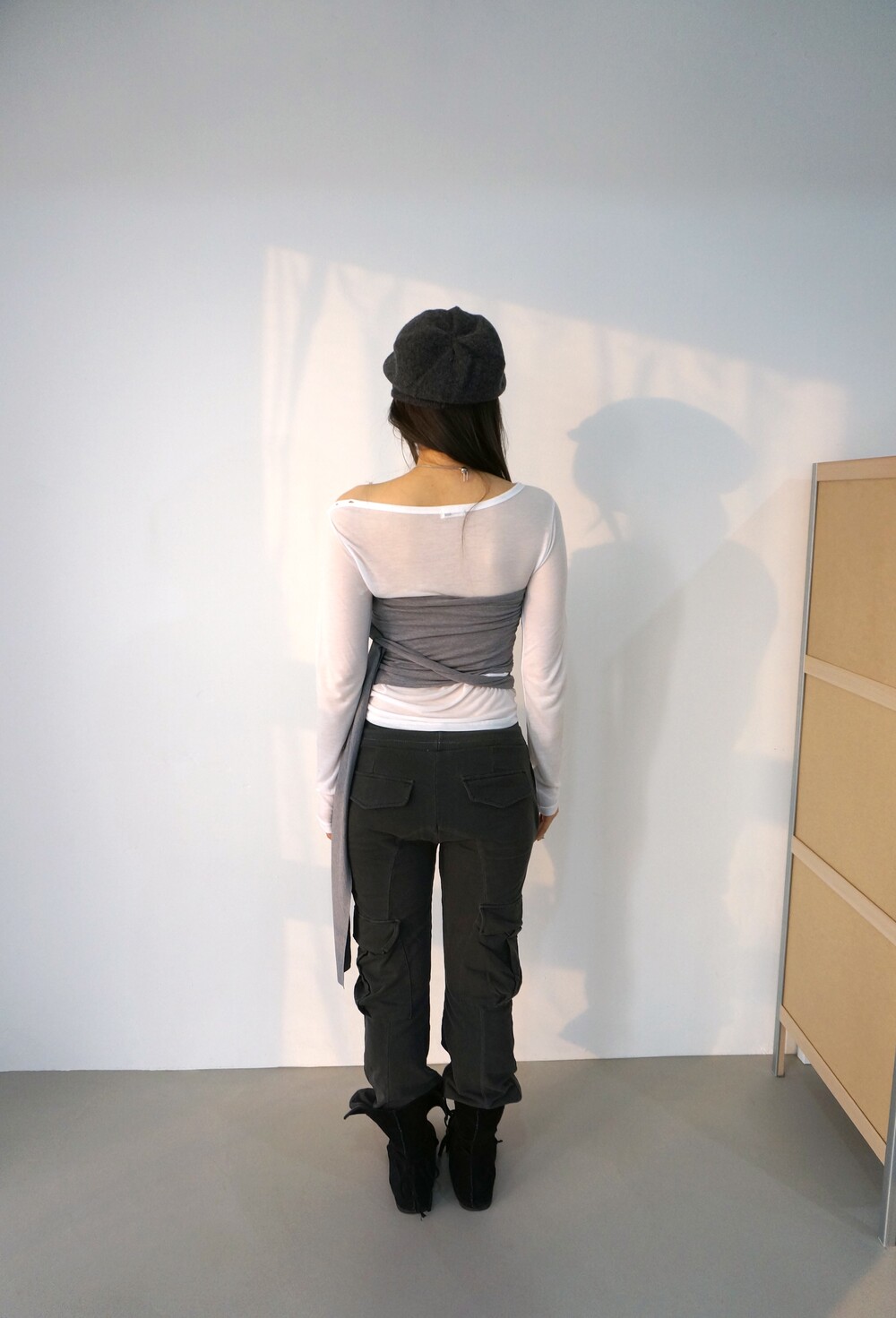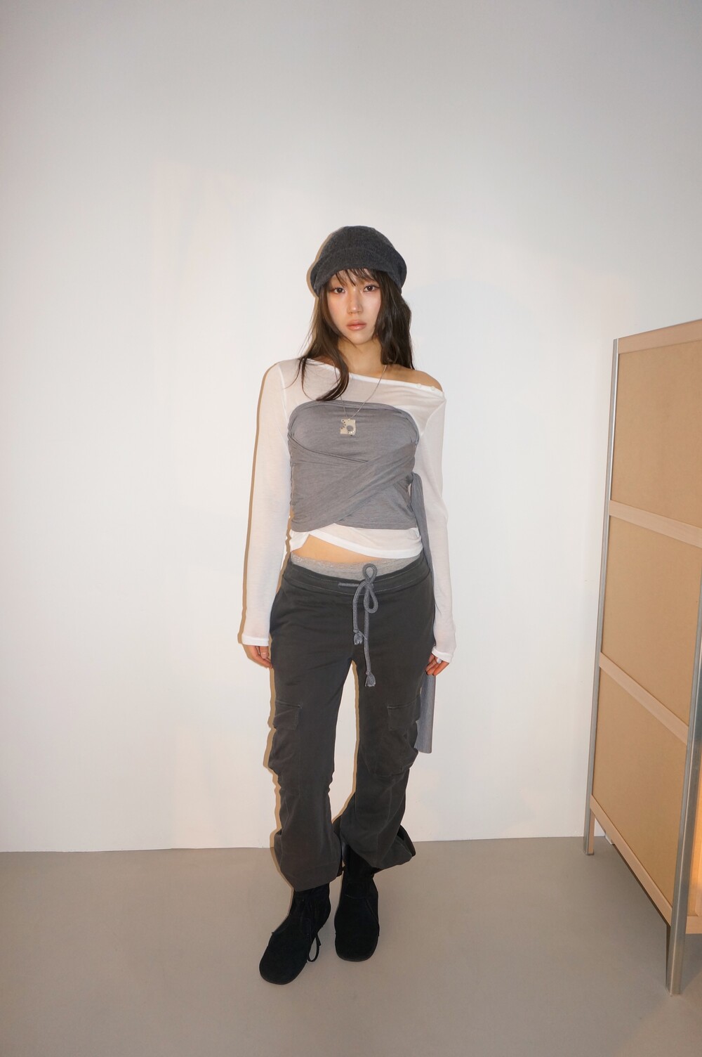 - 양쪽 옆으로 길게 내려오는 스트랩으로 다양한 실루엣 연출가능.