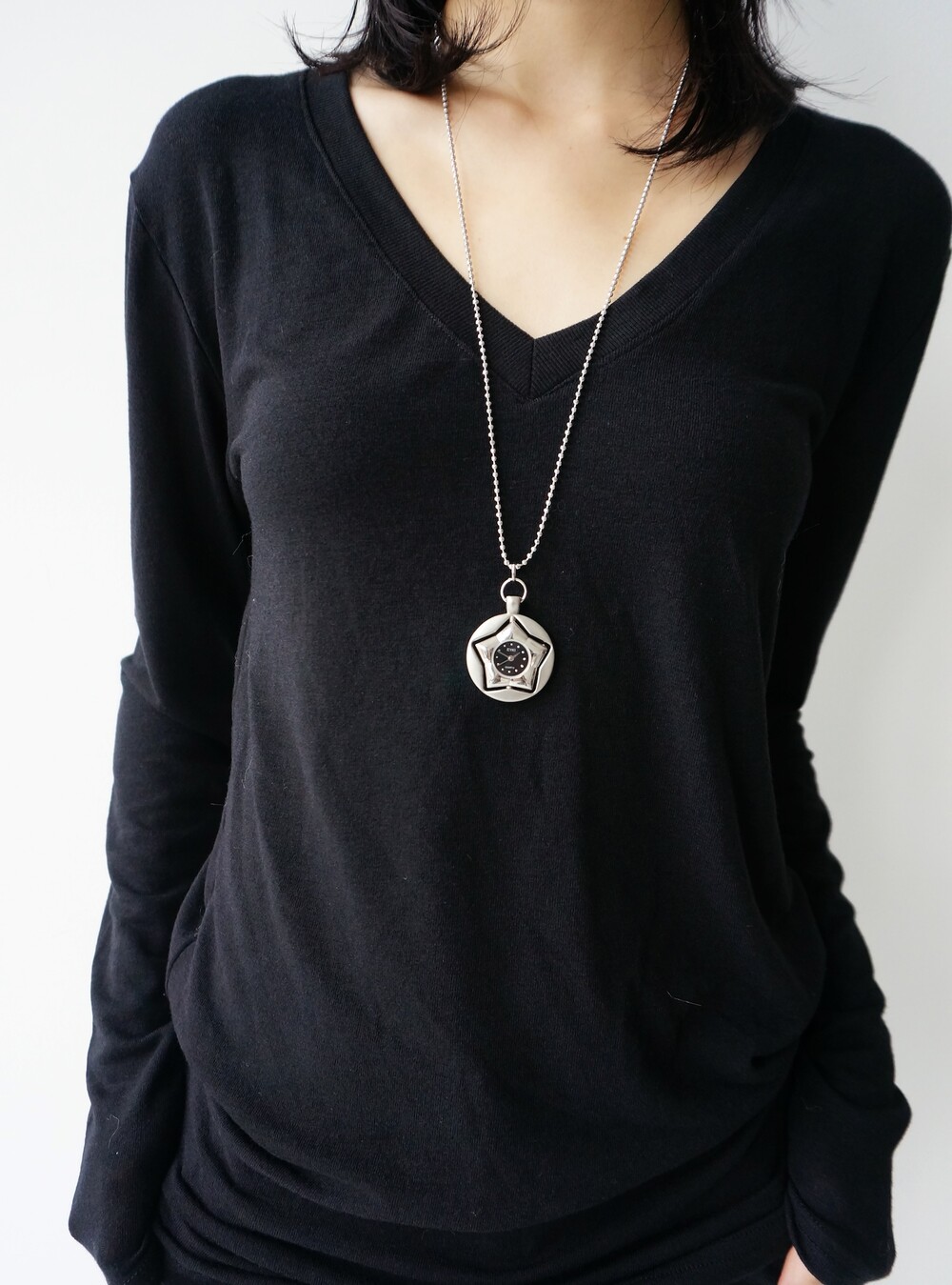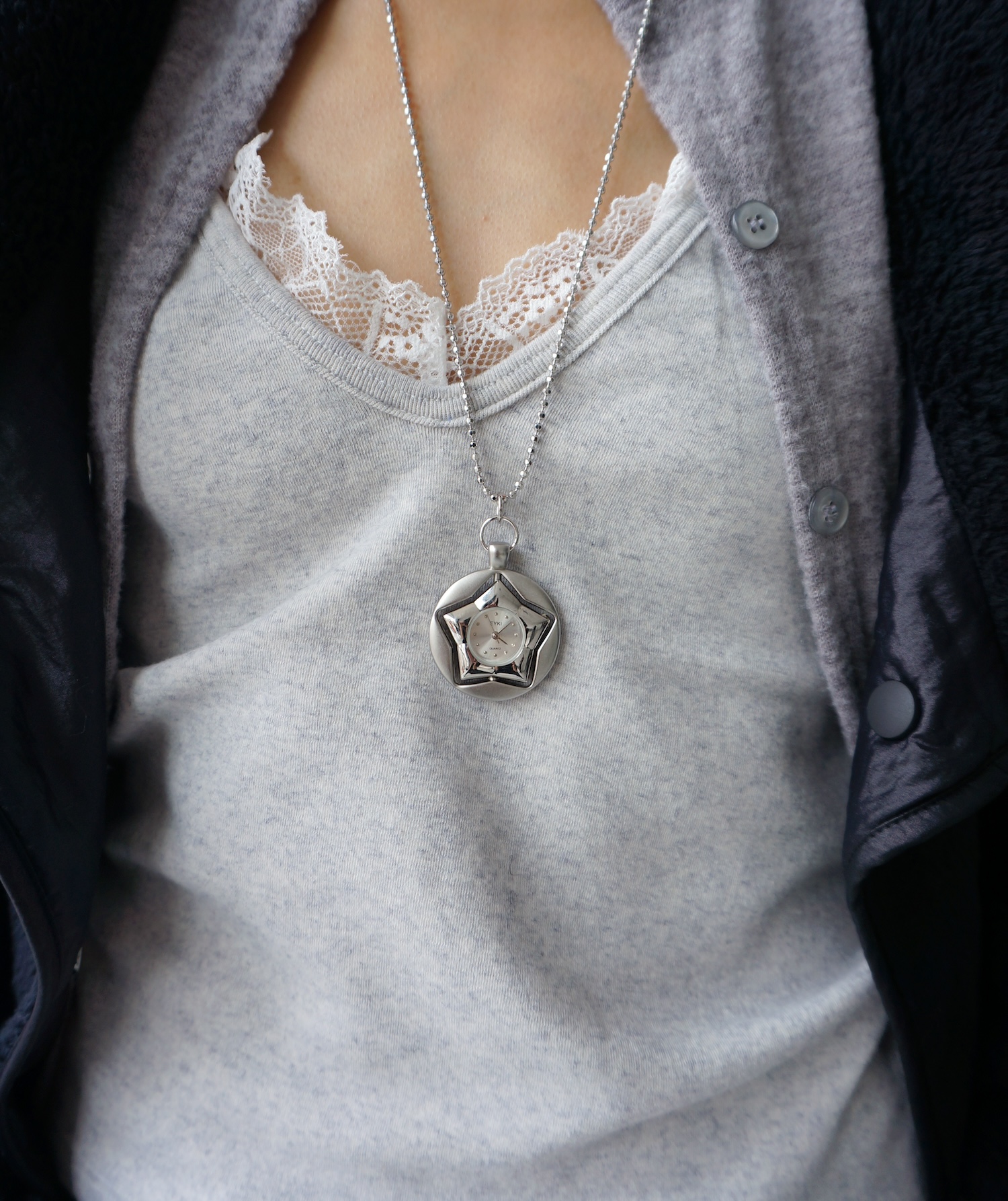 - 크로스 형태의 펜던트 속에 시계가 숨겨진 디자인.