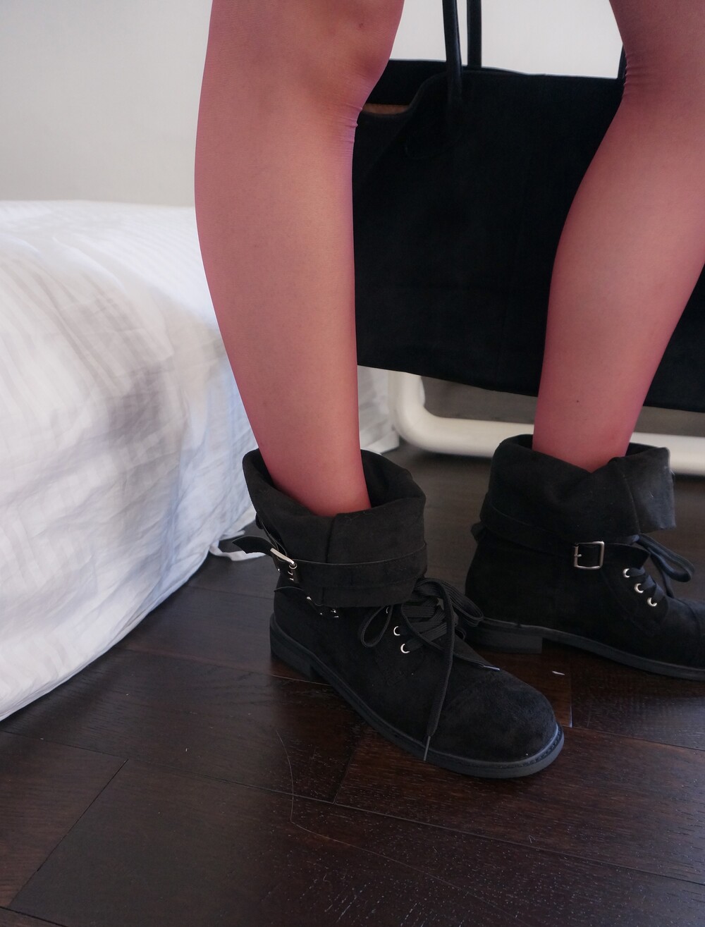 - 흐물흐물한 스웨이드 소재로 접어서 착용가능한 부츠.