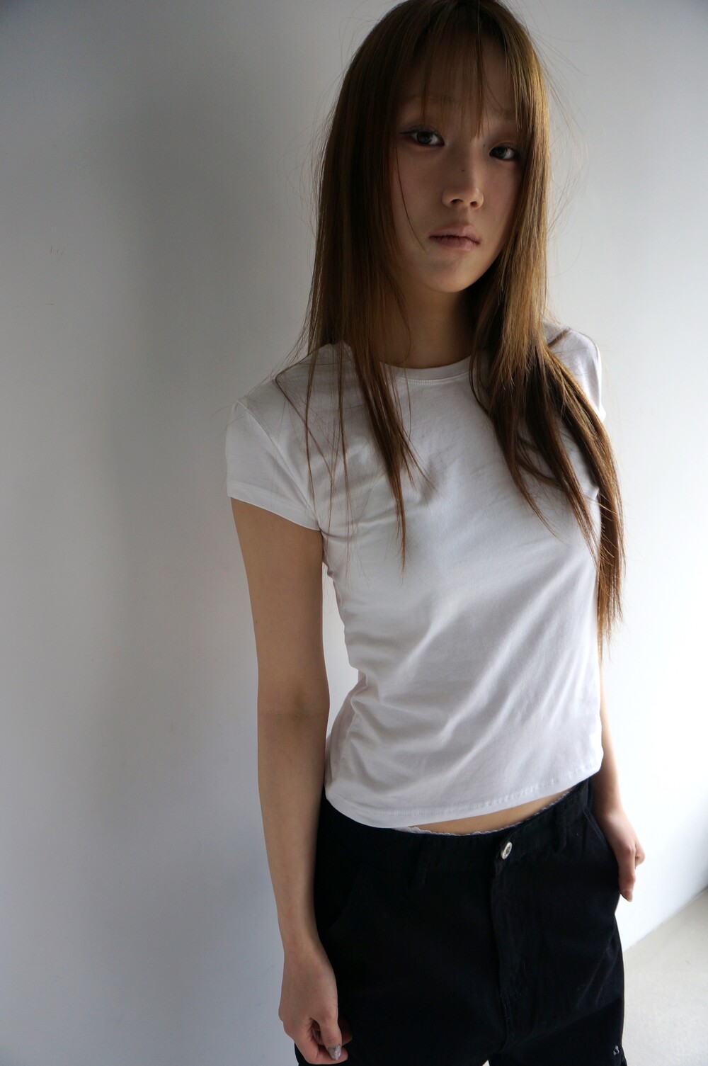 - 몸을 타이트하게 감싸는 기본반팔.