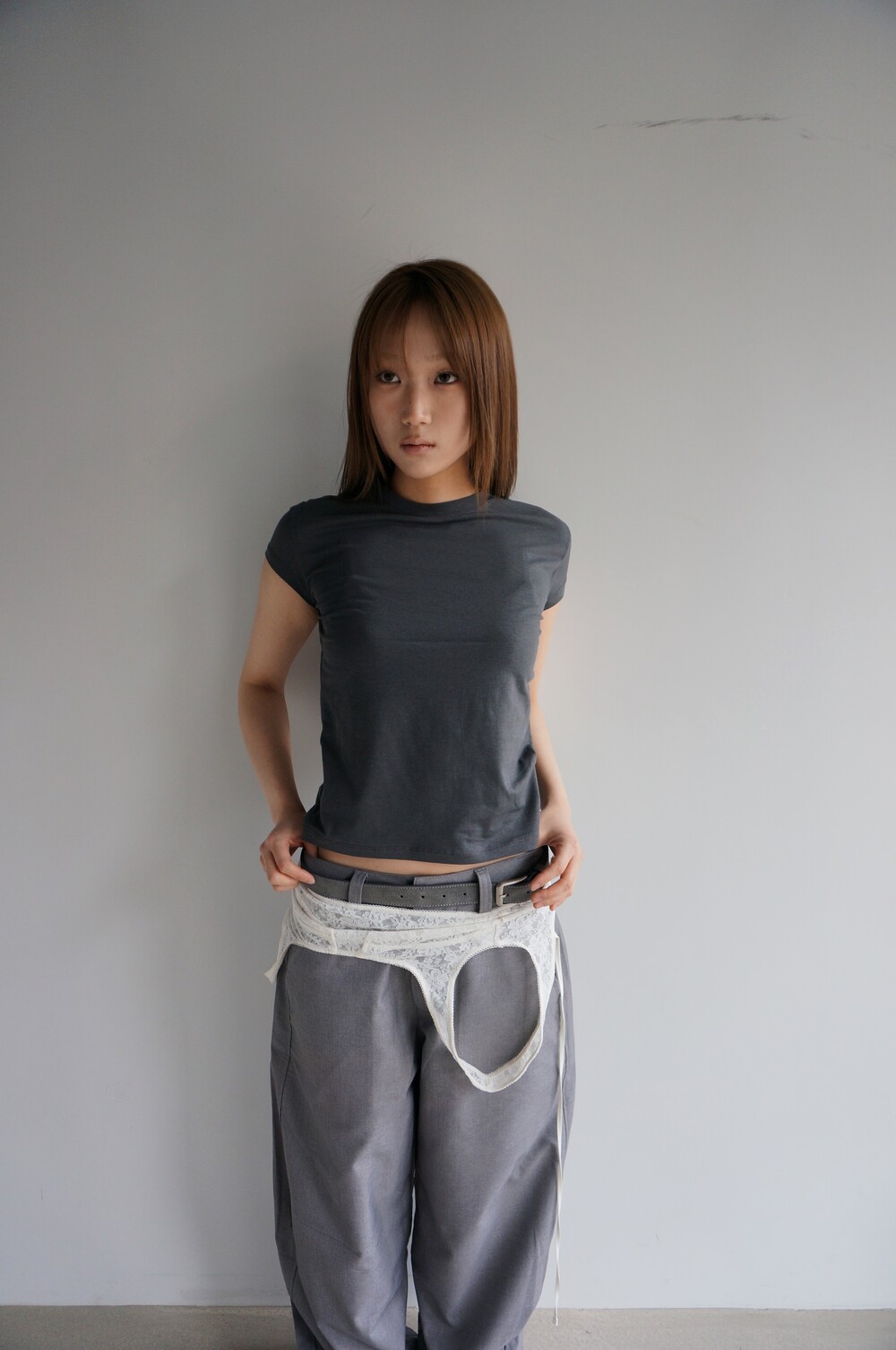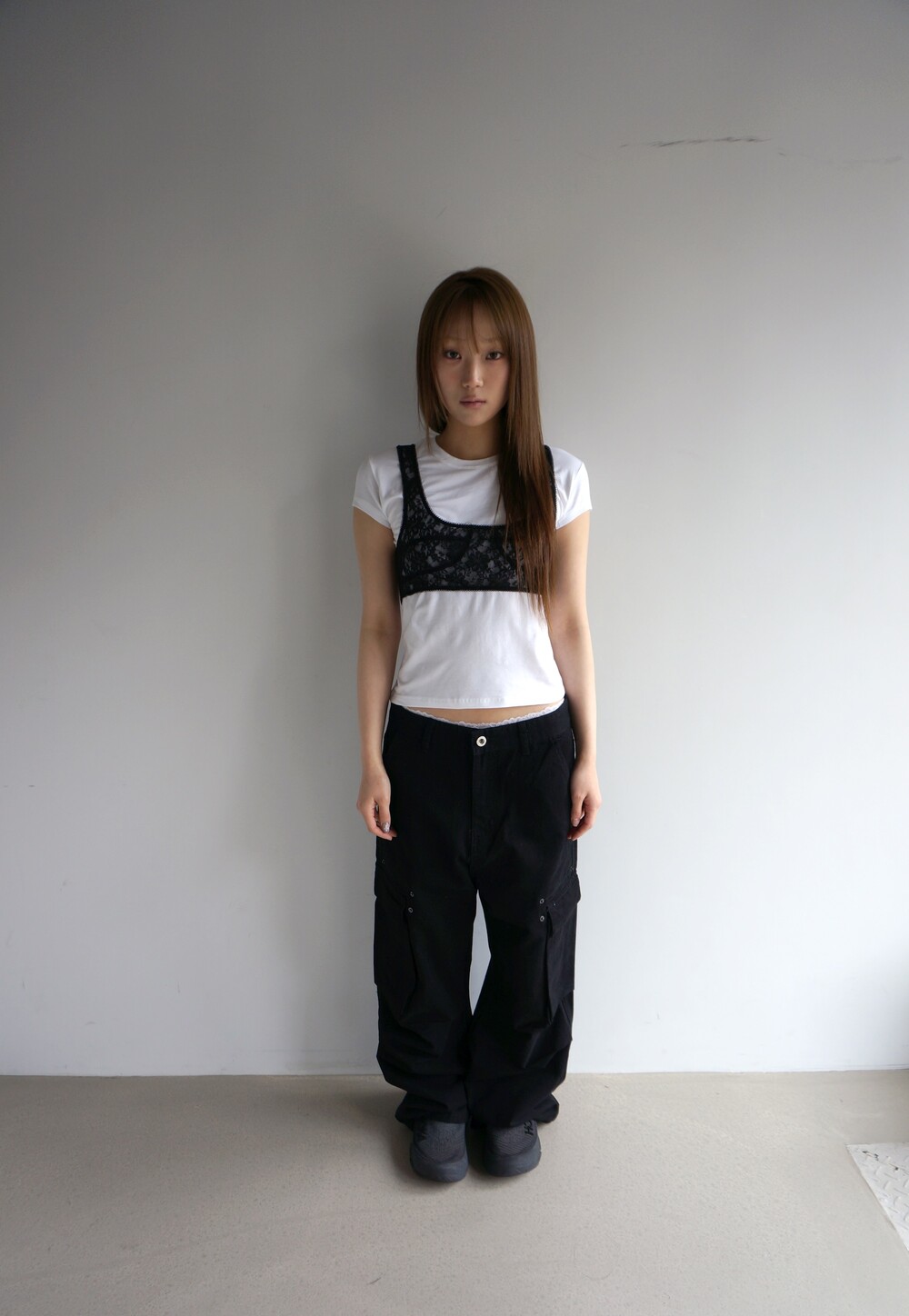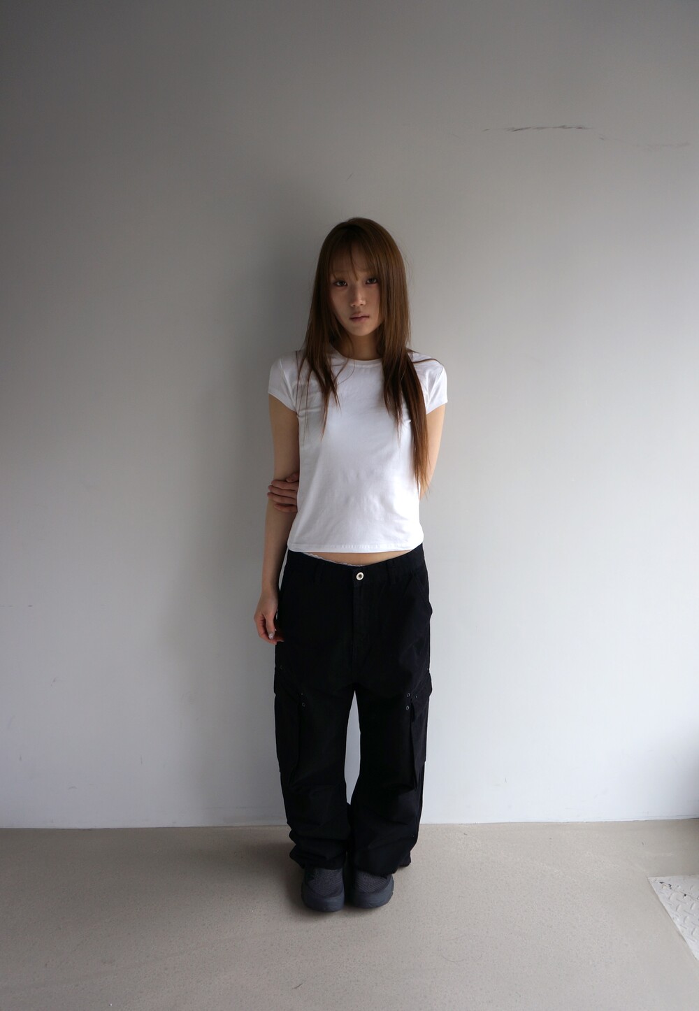 - 캡소매 형식의 짧은 반팔이여서 은근하게 독특한 핏. 약간.. 윗 팔뚝살과 부유방을 커버해주는... 어깨까지 꽉 막힌 나시같은 느낌..?