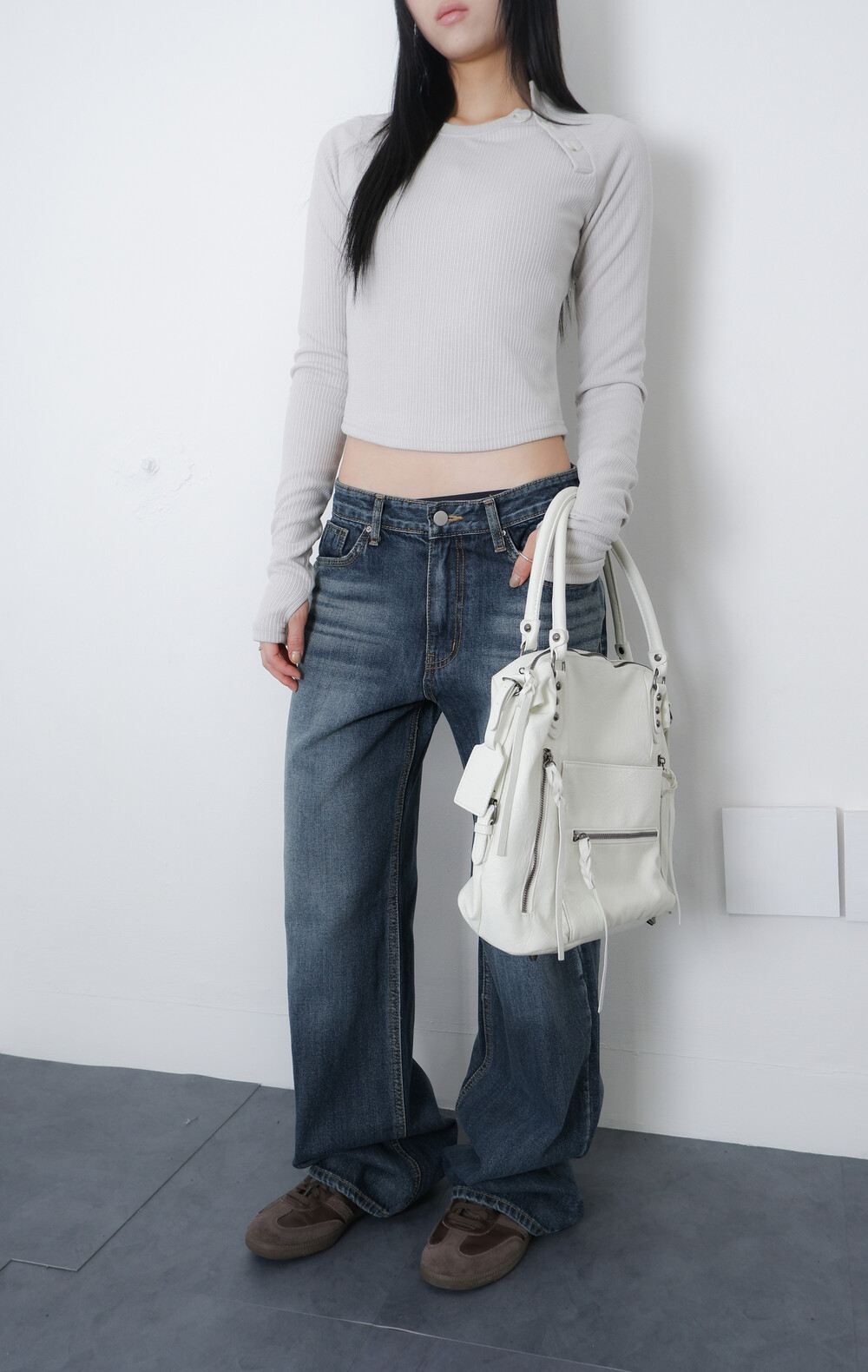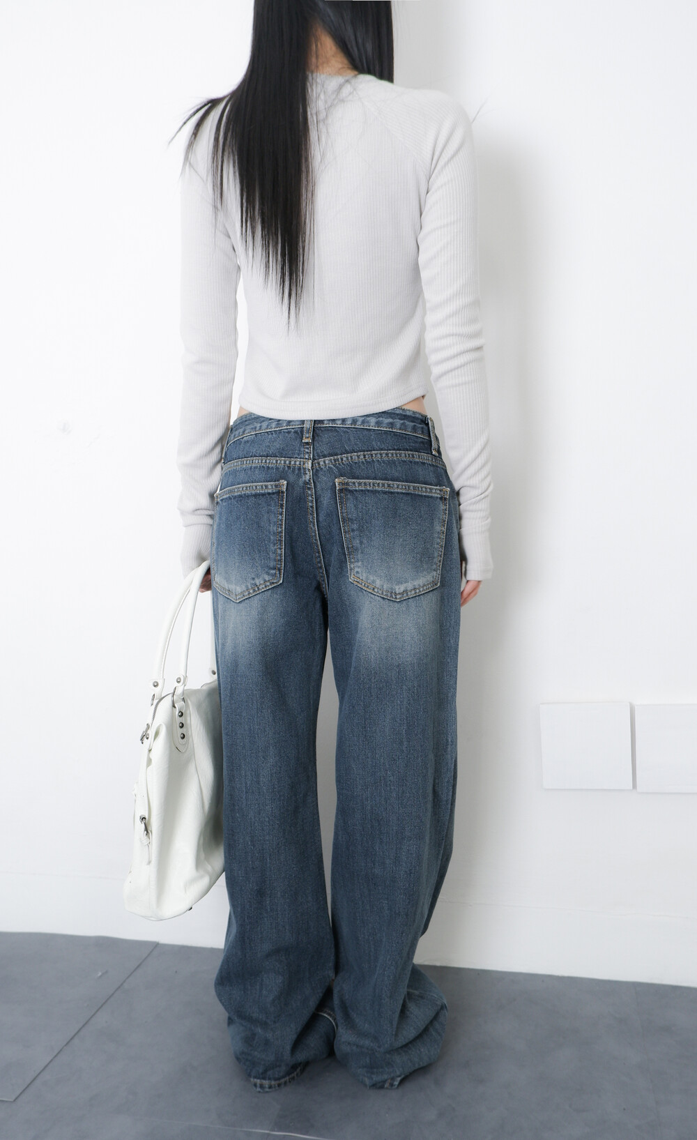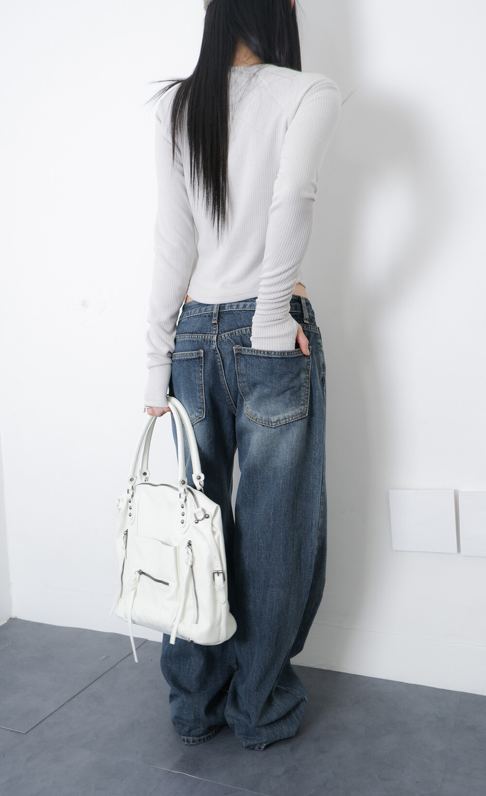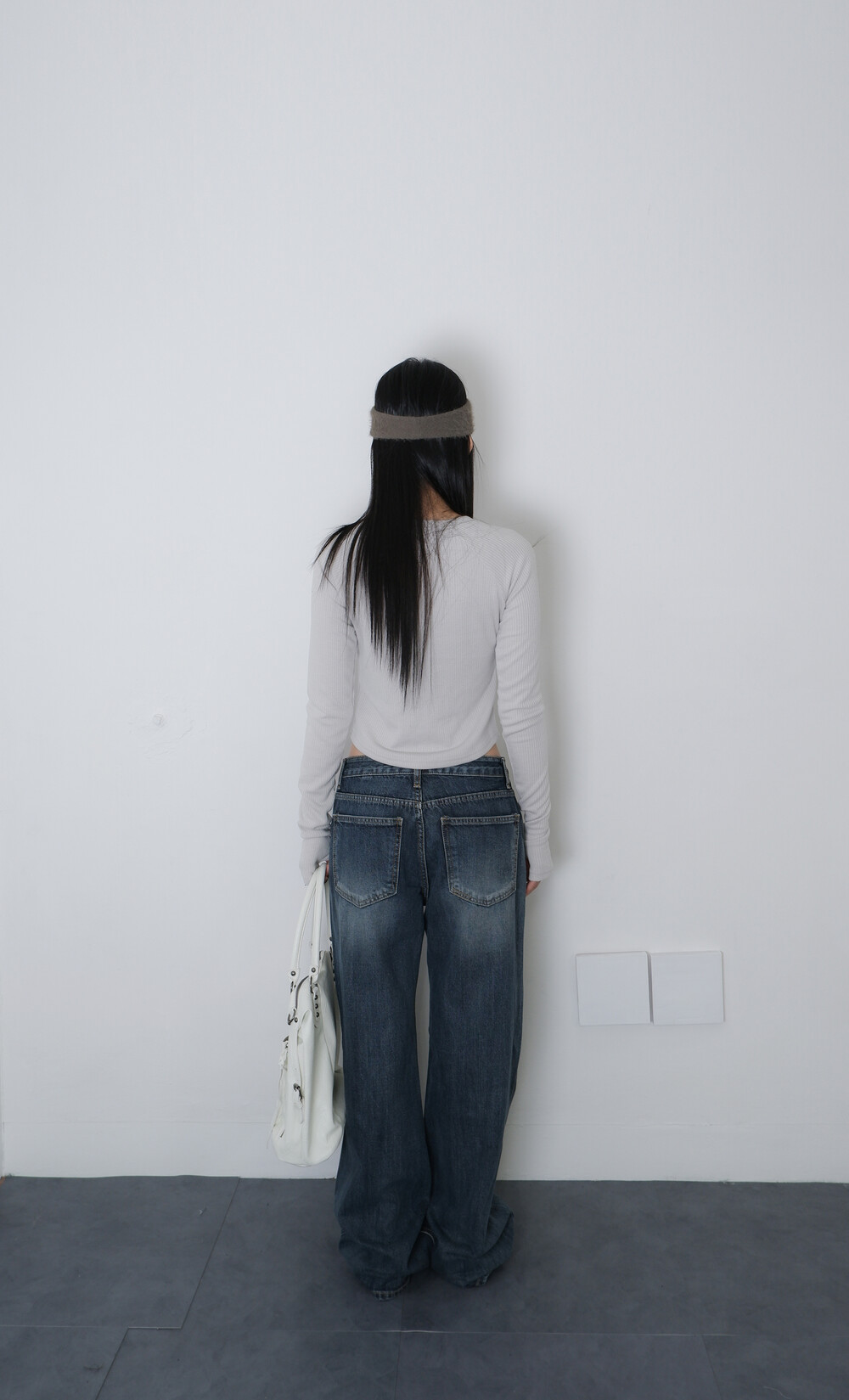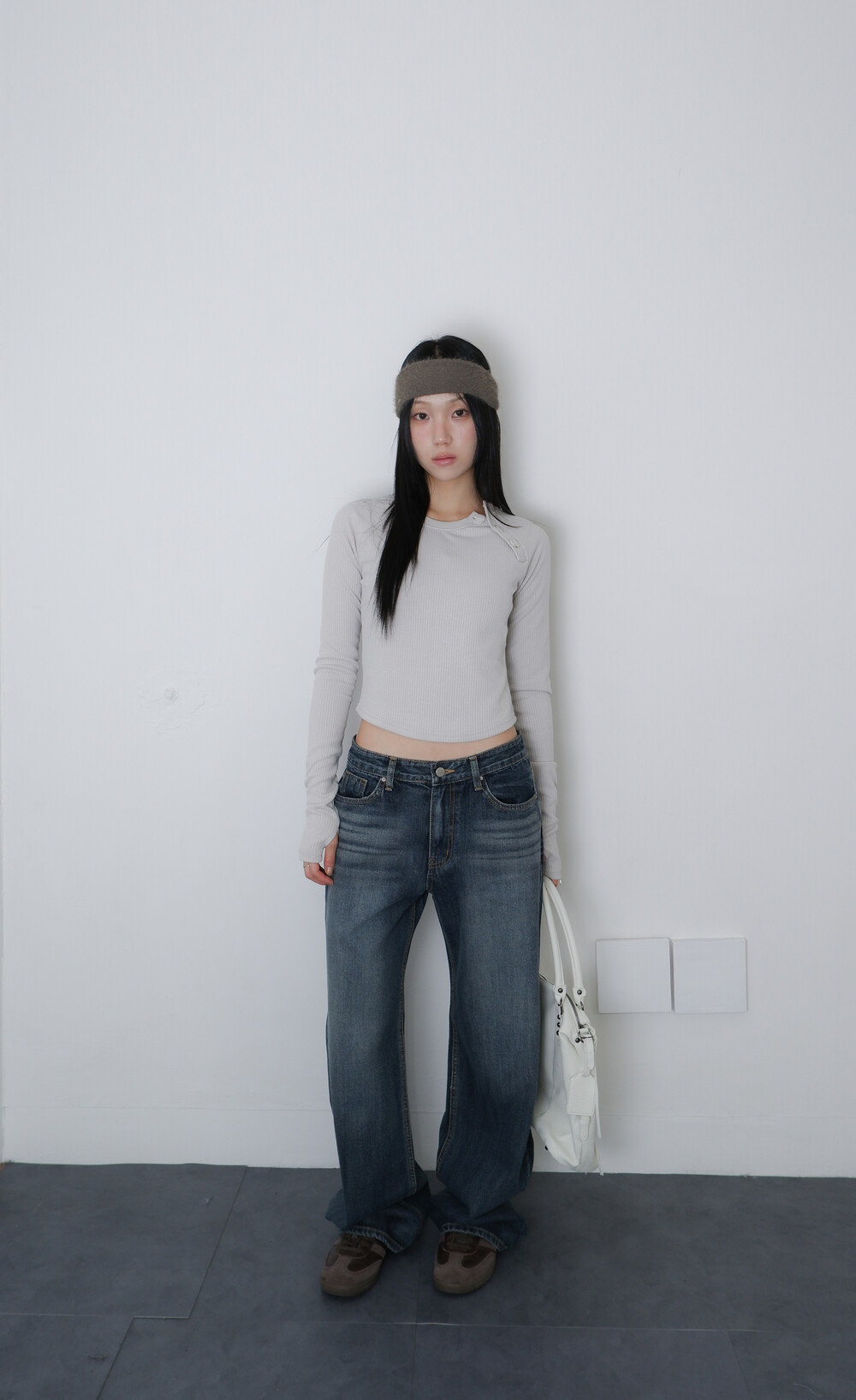* 로우 와이드 블랙 팬츠와 동일한 핏의 데님팬츠.