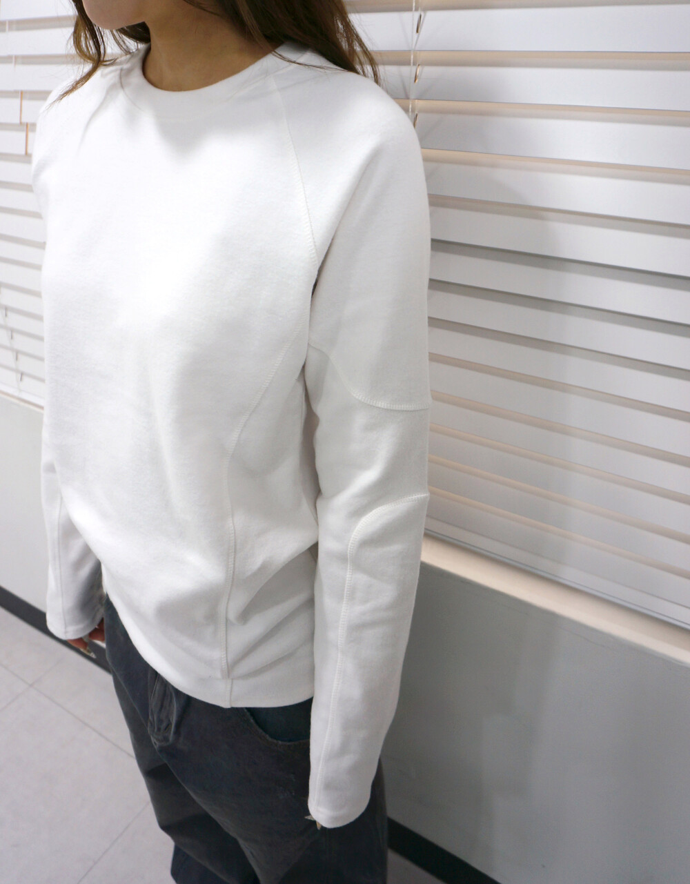 - 어깨, 소매까지 이어진 독특한 라인 디테일.