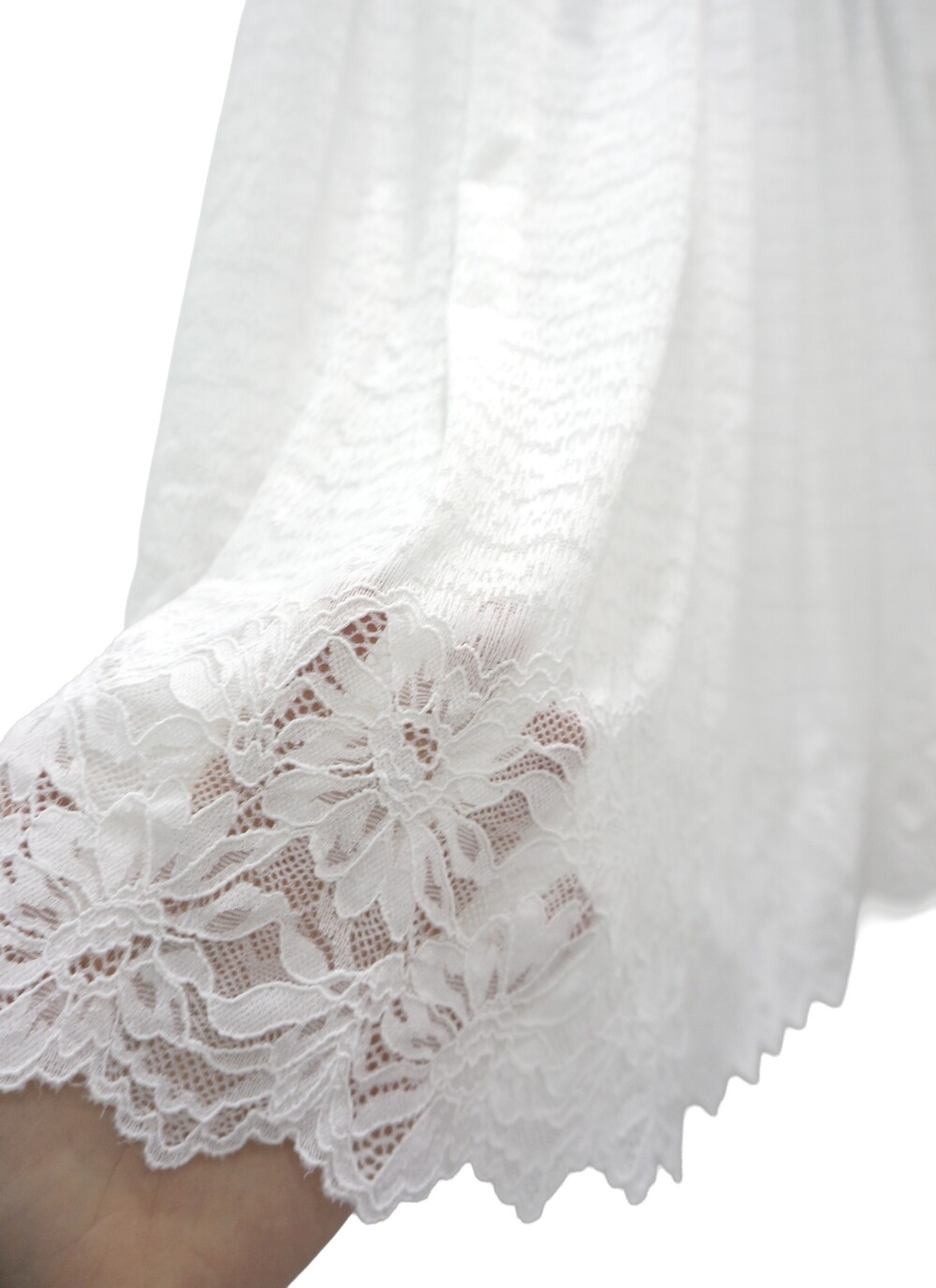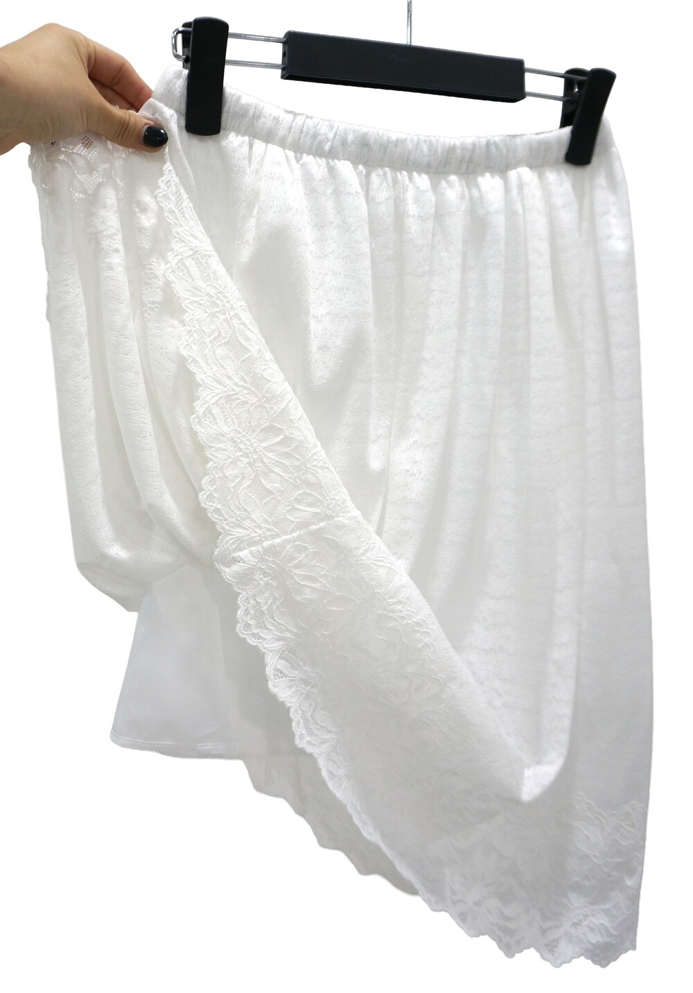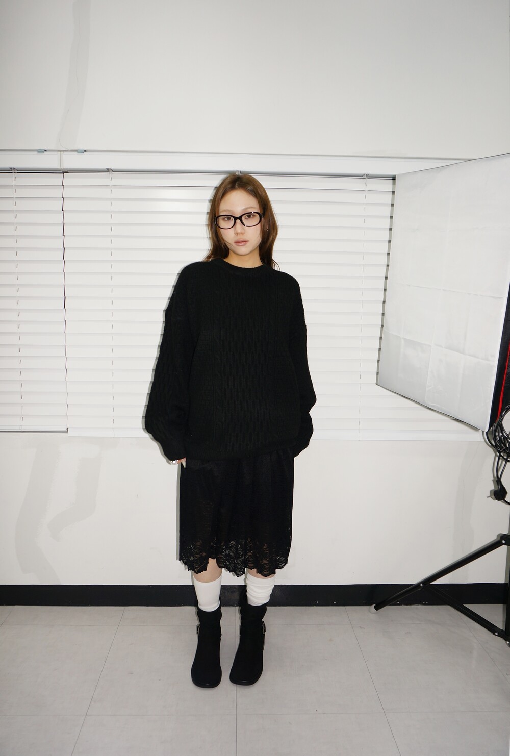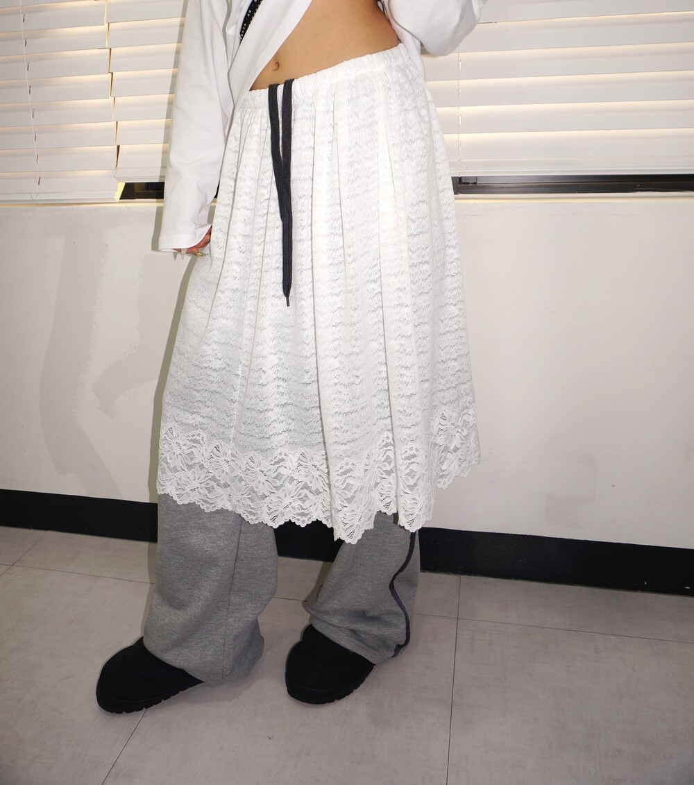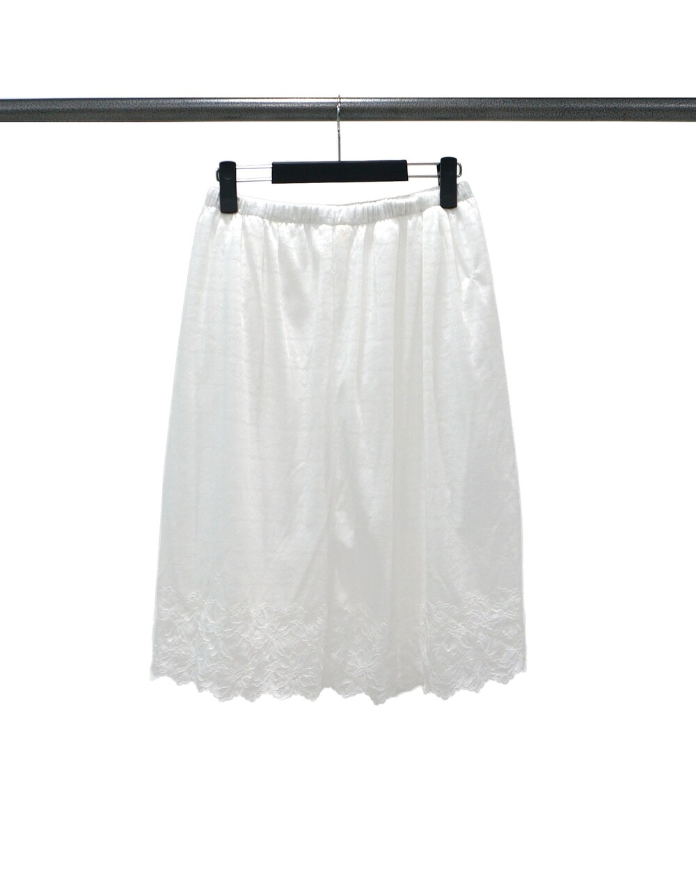 - 밑단 플라워레이스 디테일의 미디~롱 스커트.