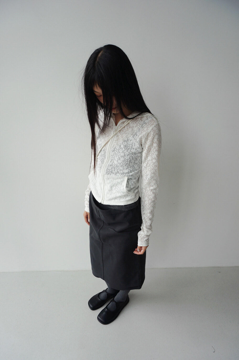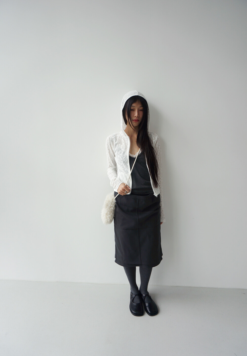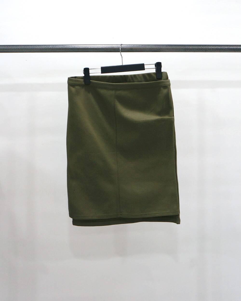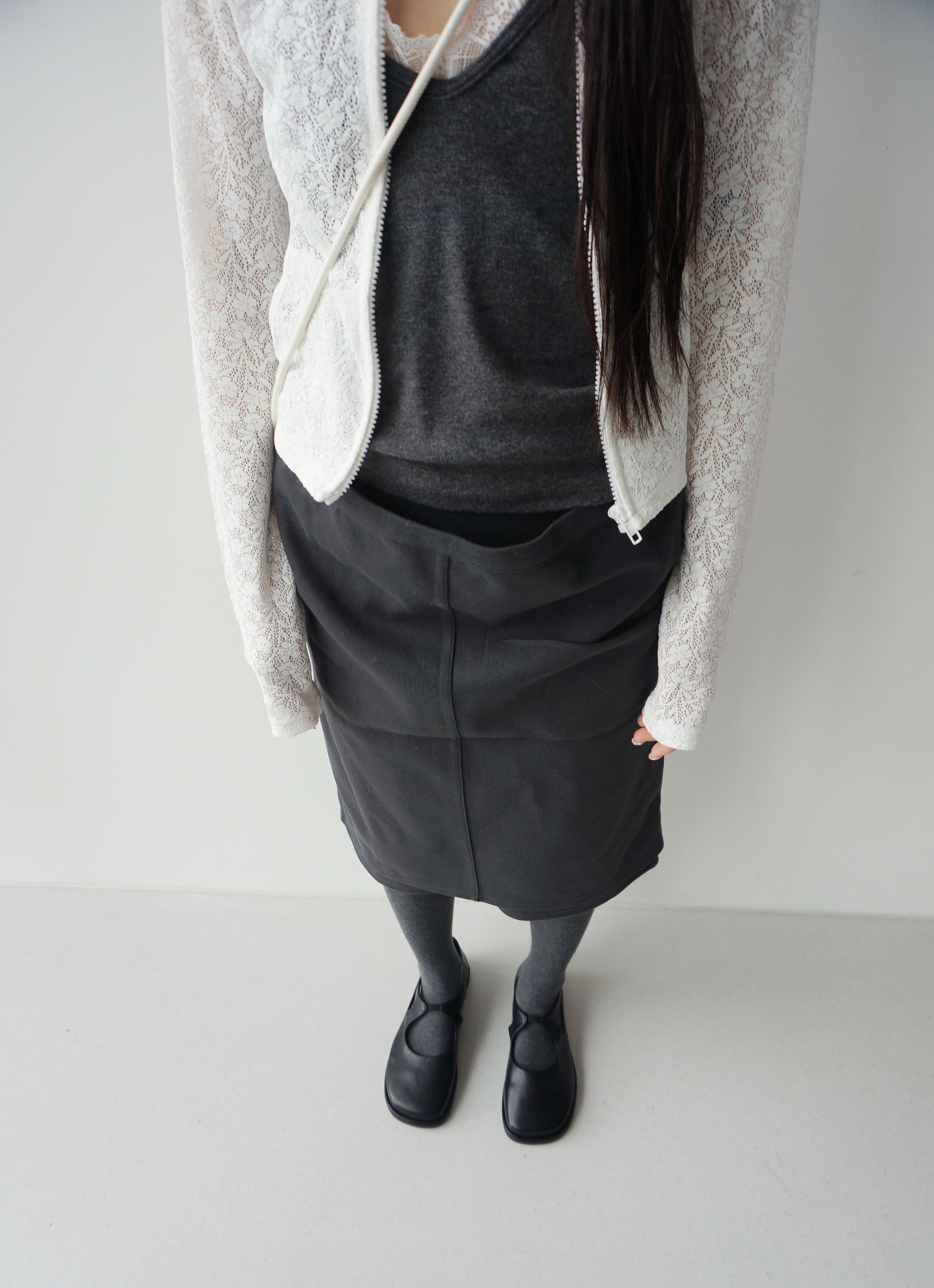- 한 겹 레이어드된 듯한 미디 스커트.