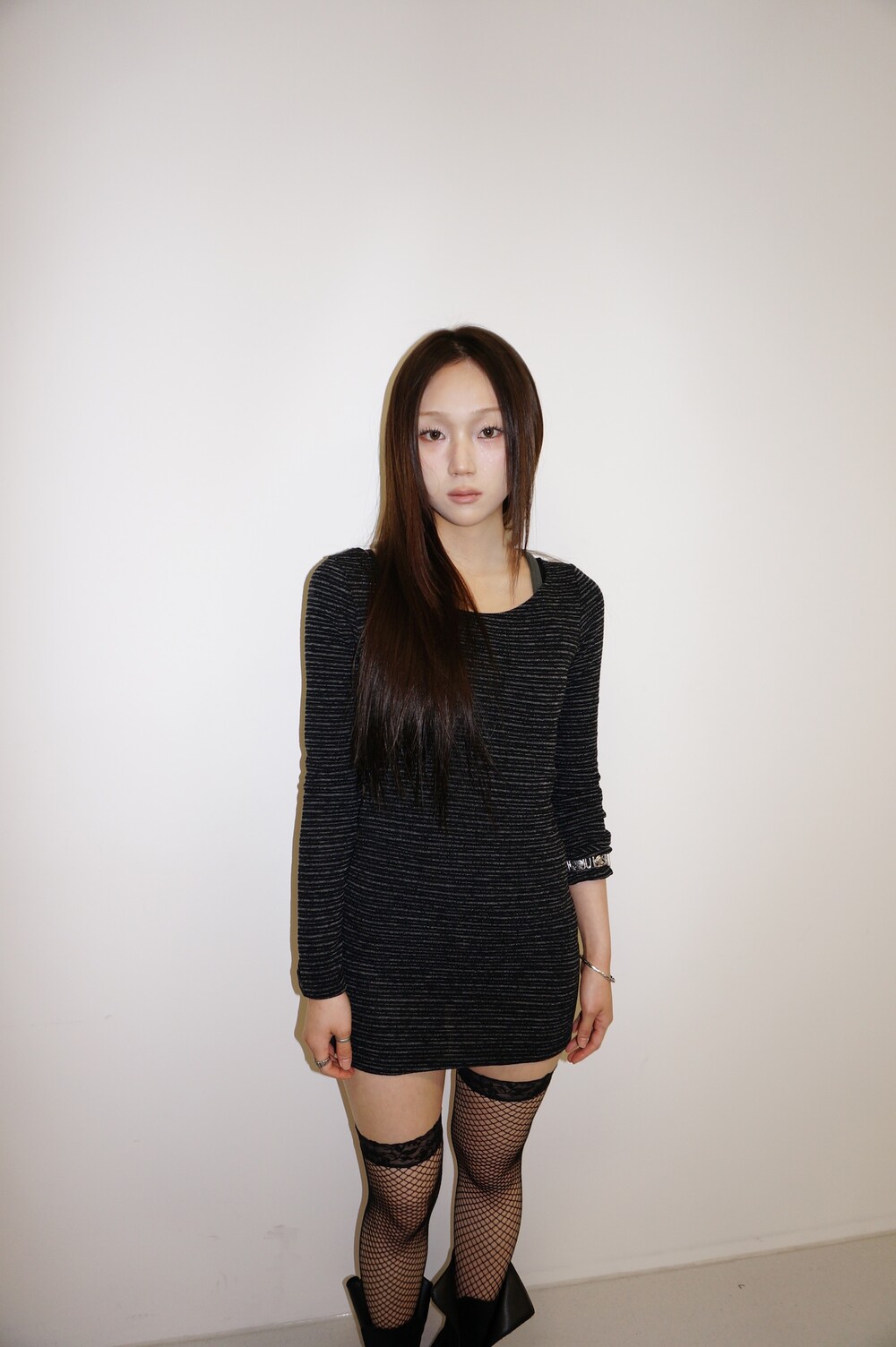 - 블러처리된 듯 희미한 스트라이프 패턴의 원피스.