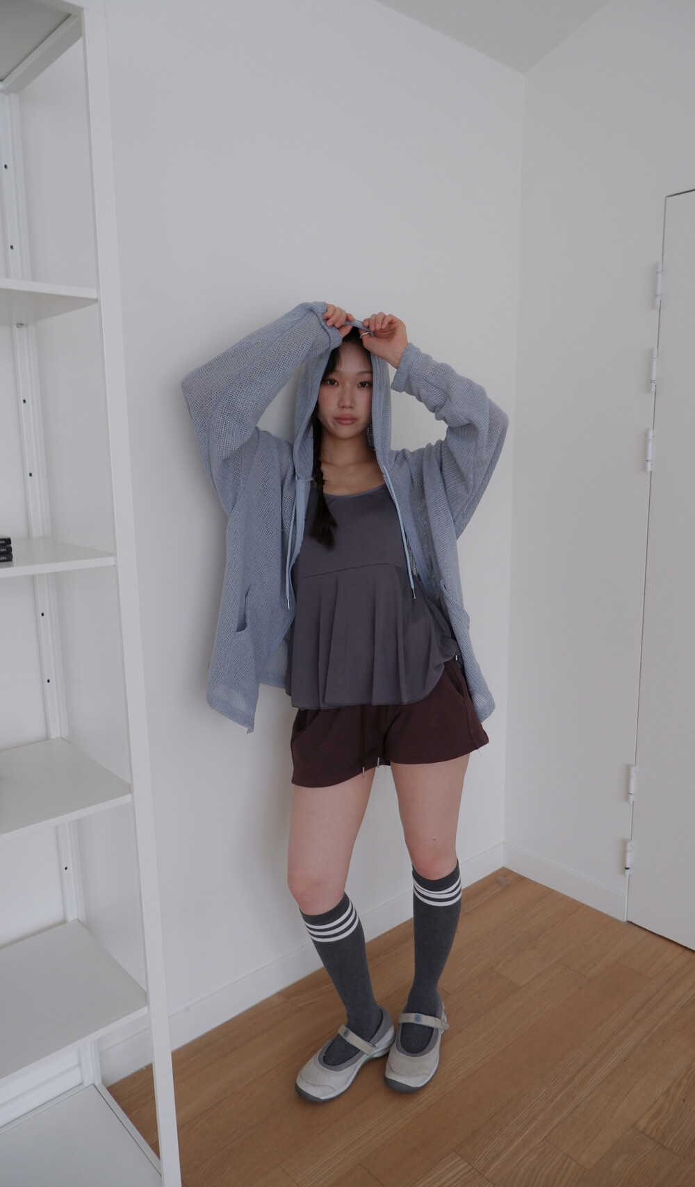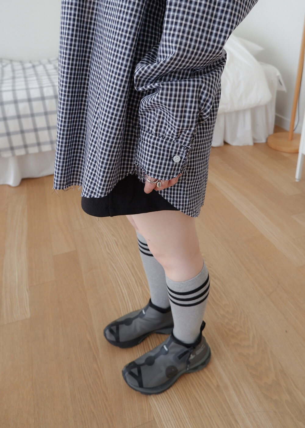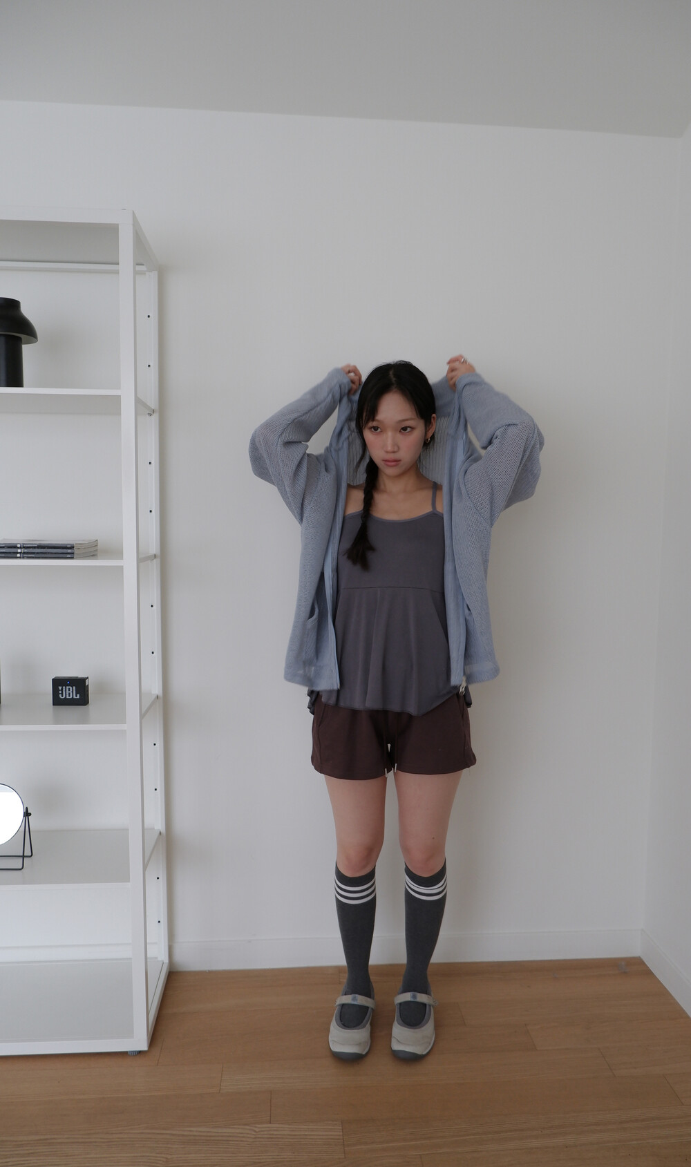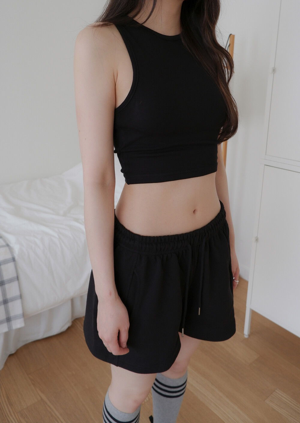 * 허리를 접어 입으면 숏 기장으로 연출됩니다.
