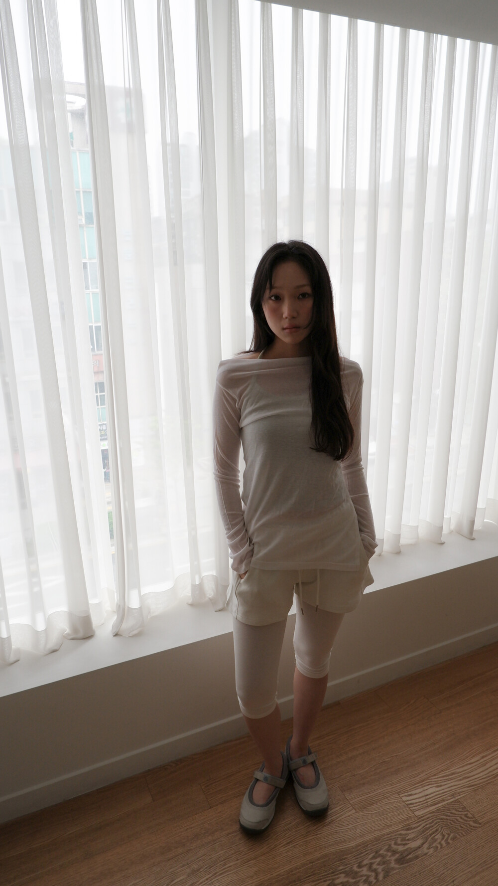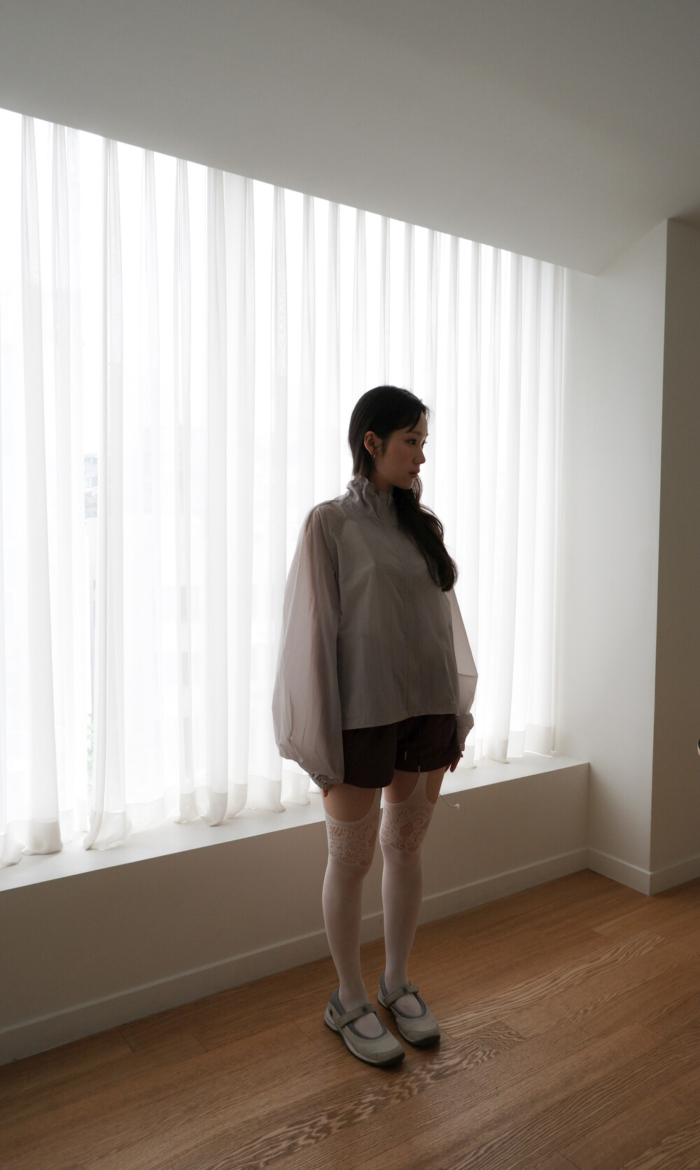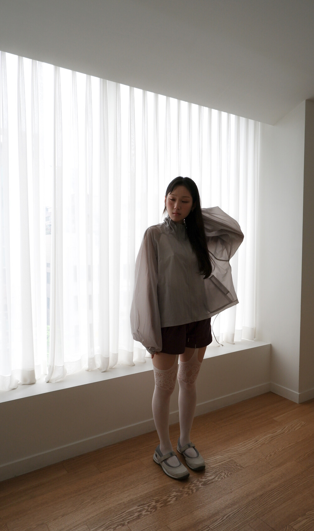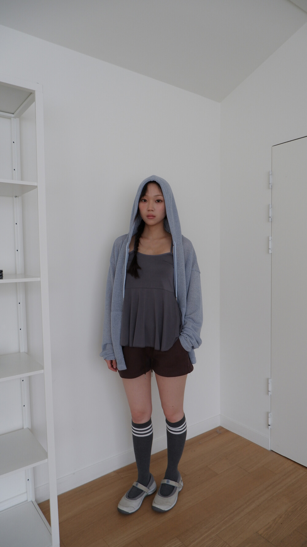 * 허리를 접어 입으면 숏 기장으로 연출됩니다.