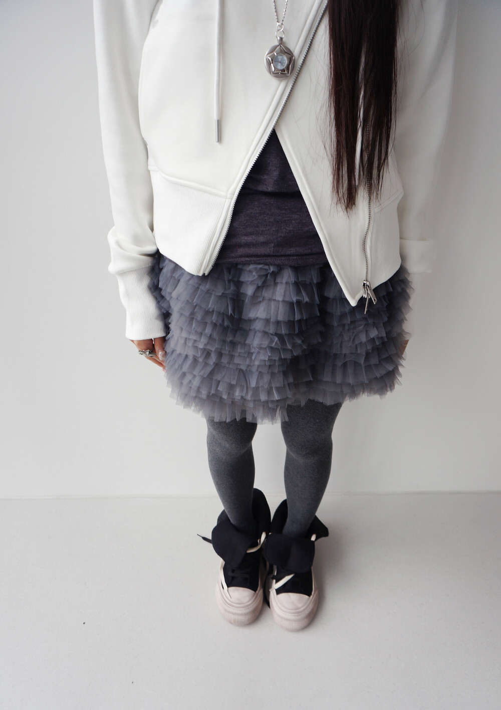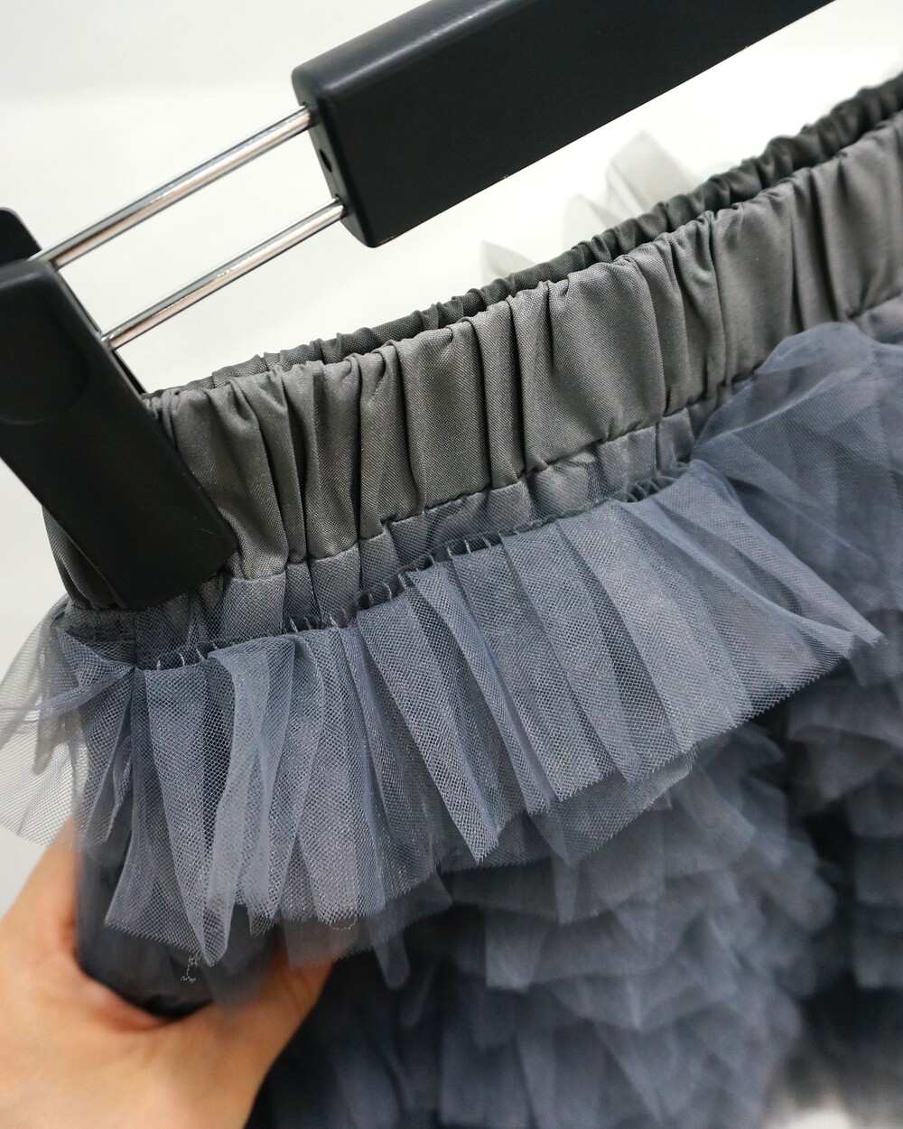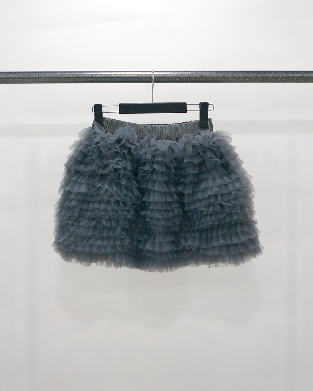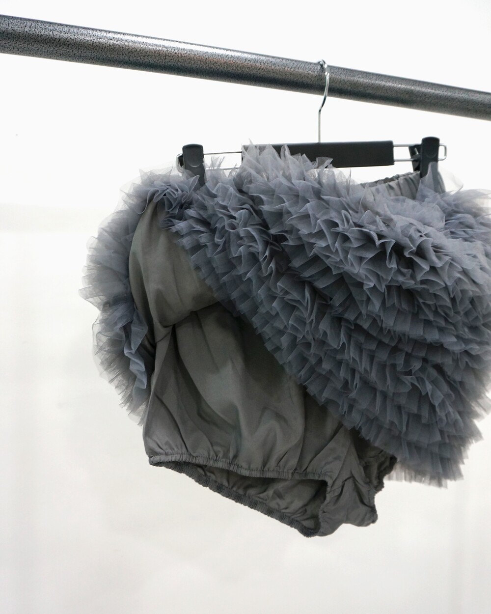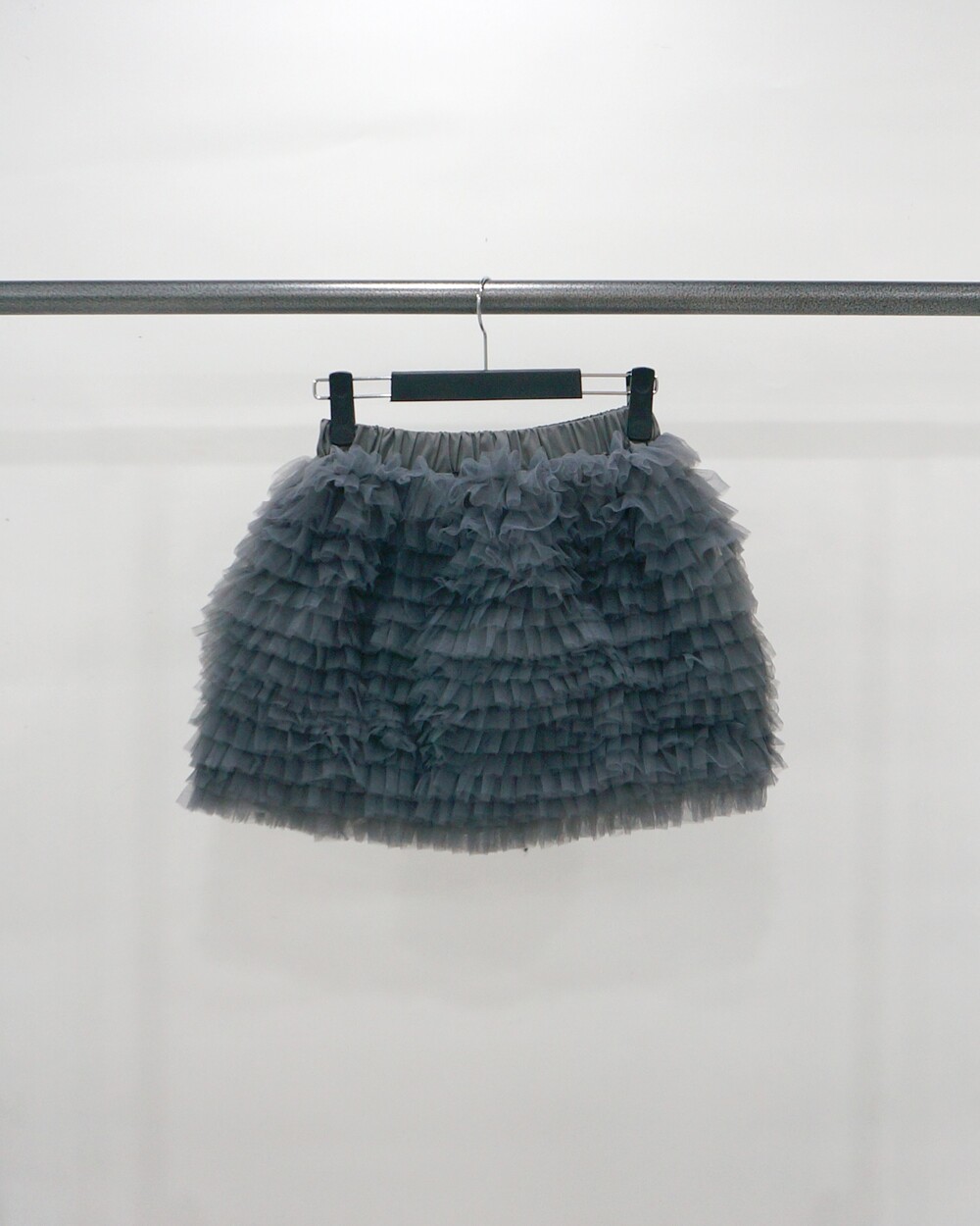 - 촘촘한 주름의 짧은 메쉬 프릴 디테일의 스커트.