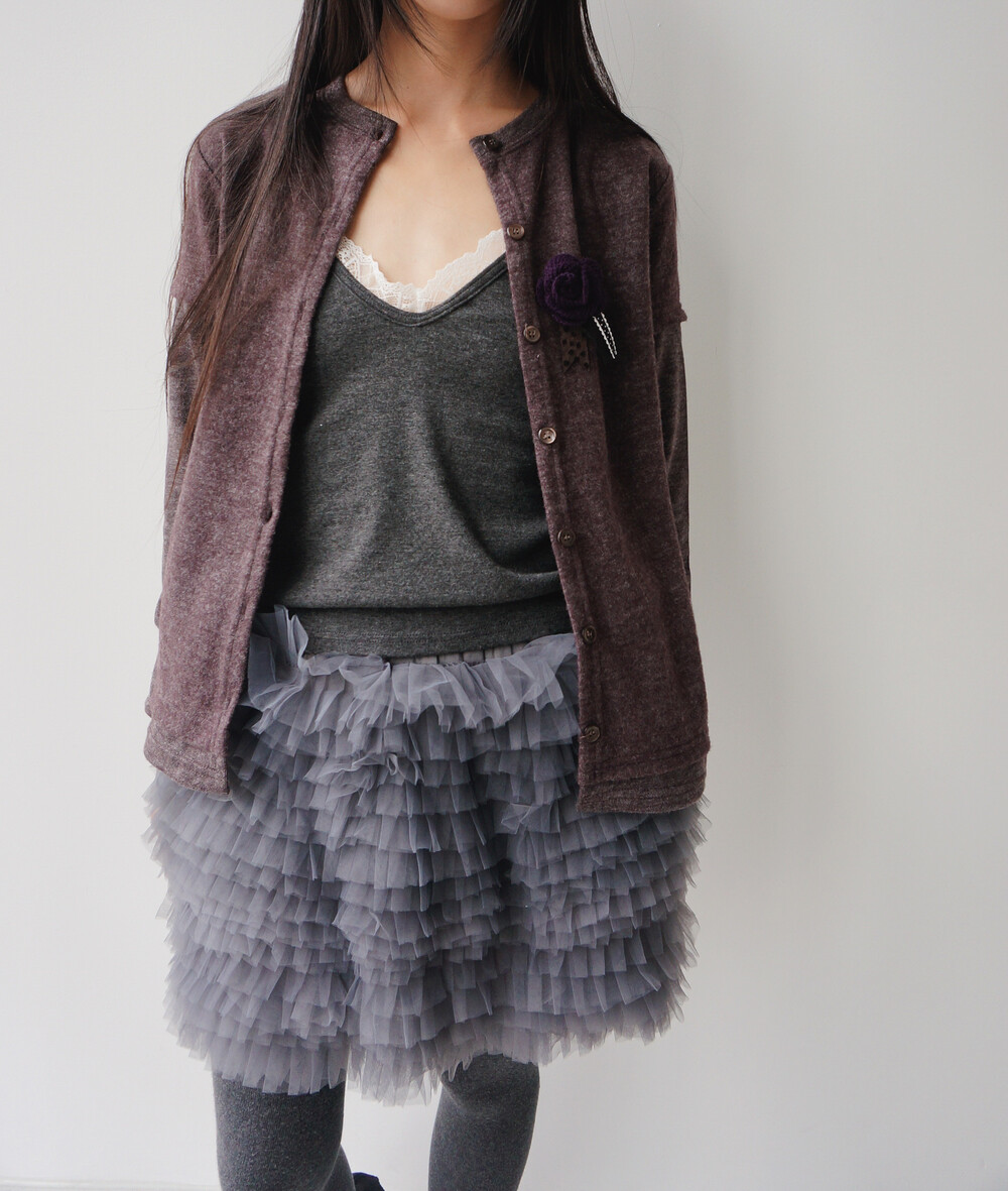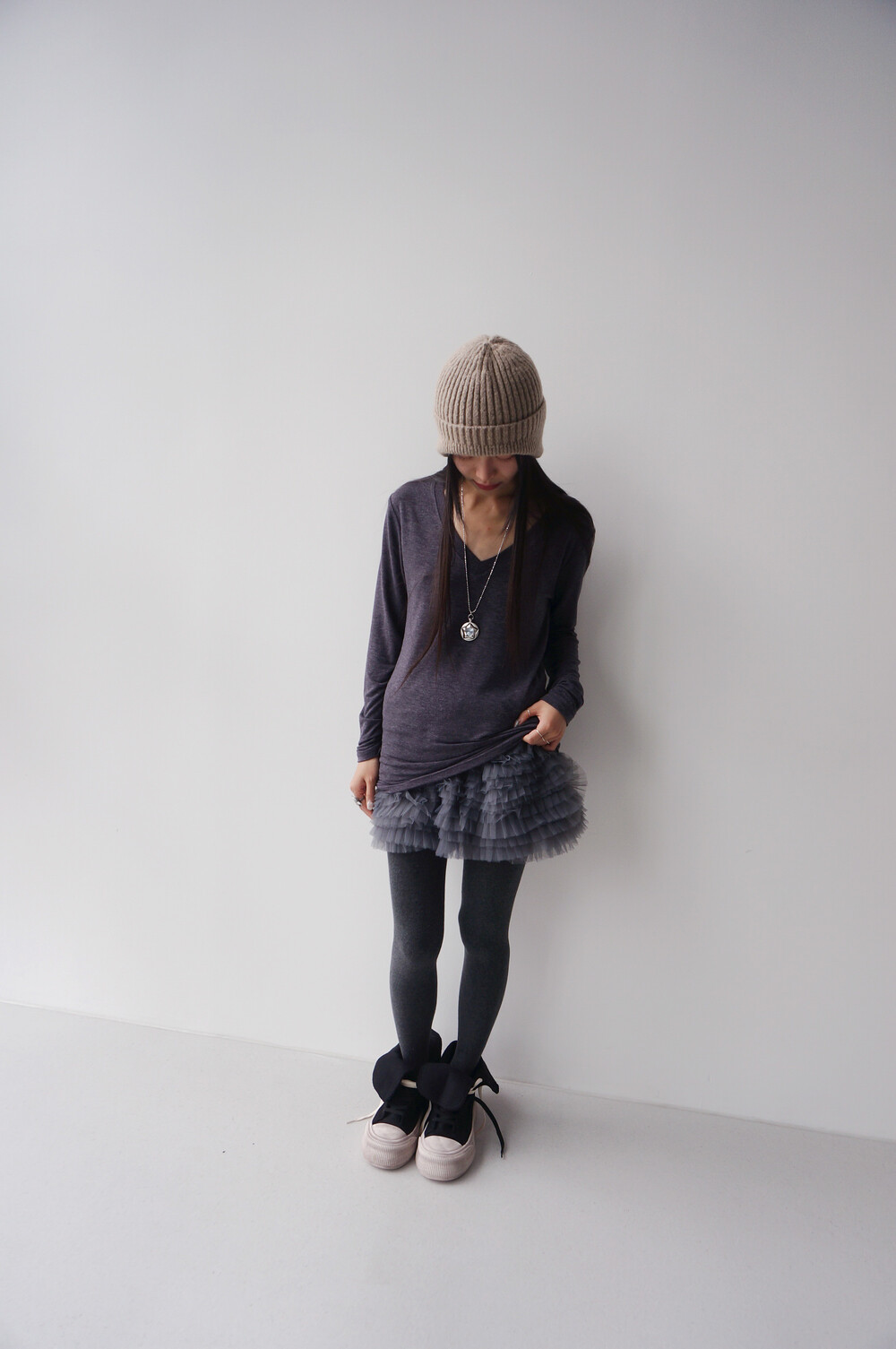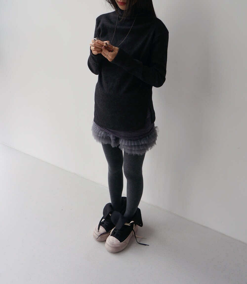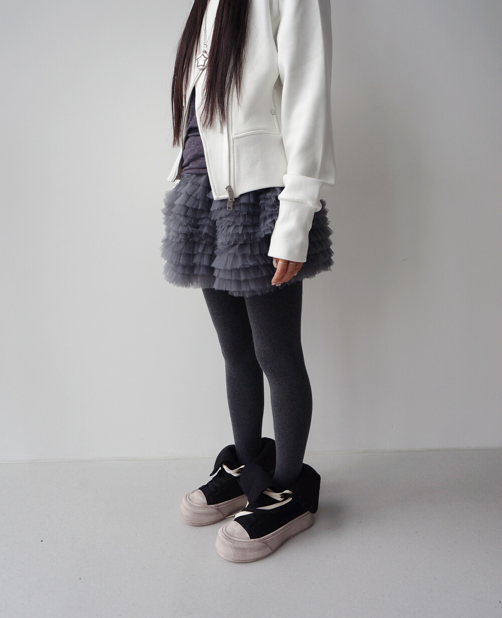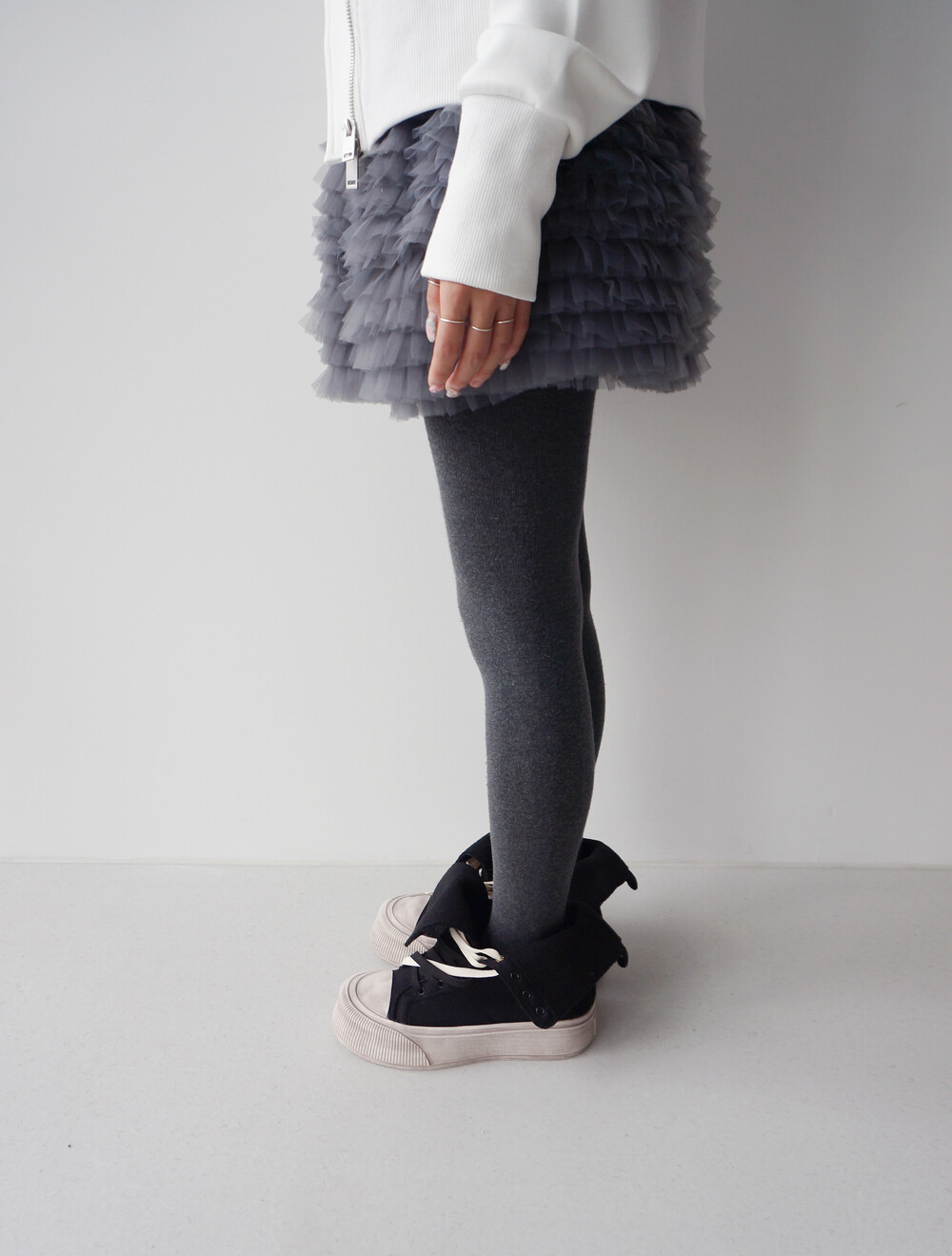 - 촘촘한 주름의 짧은 메쉬 프릴 디테일의 스커트.