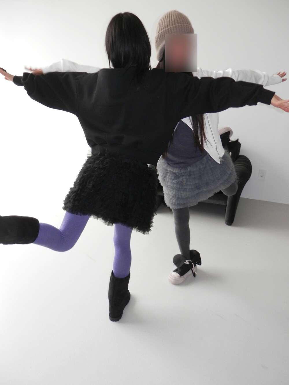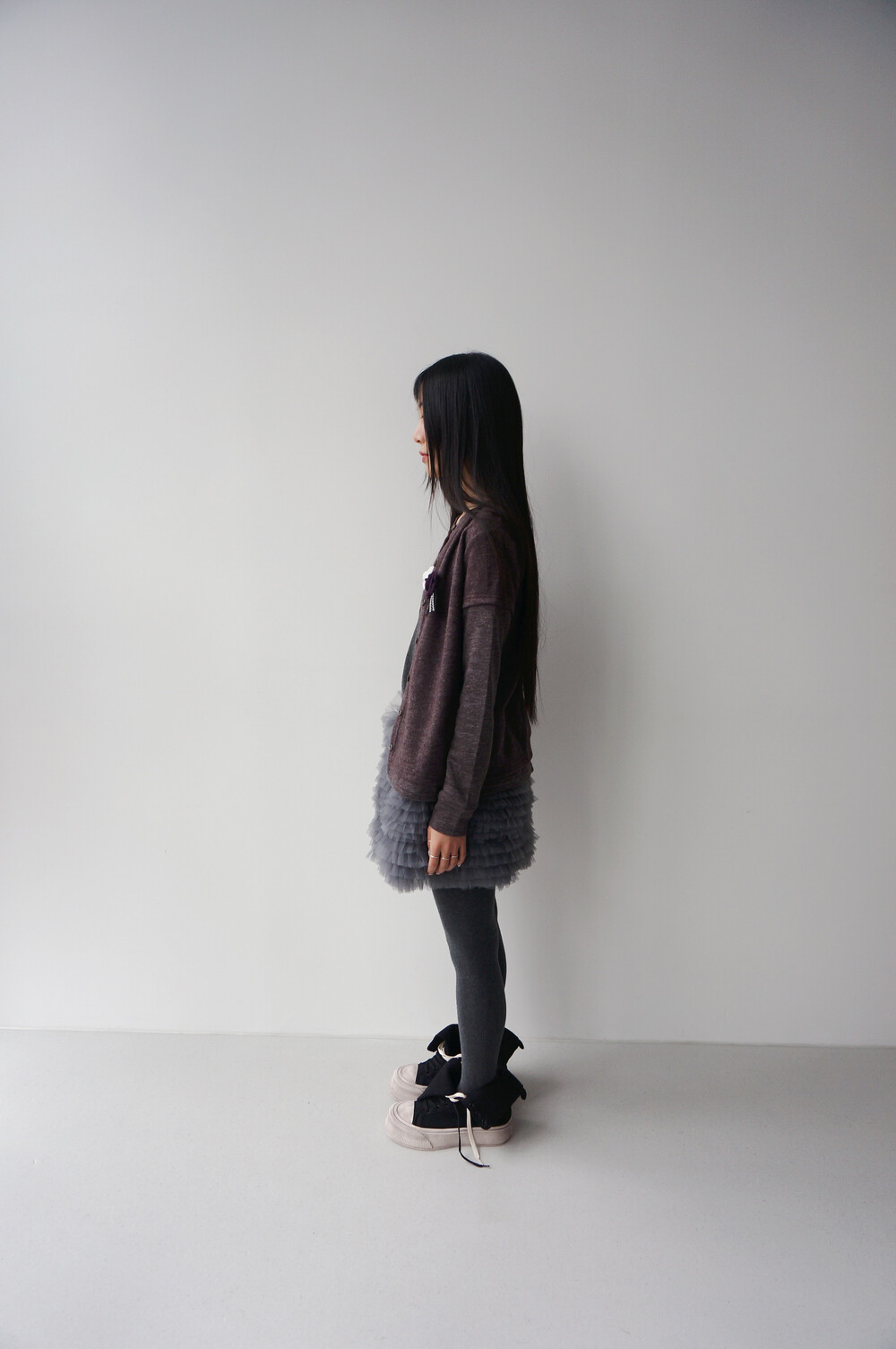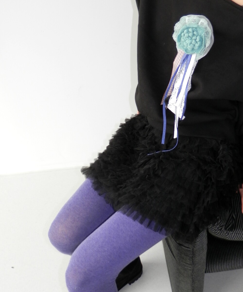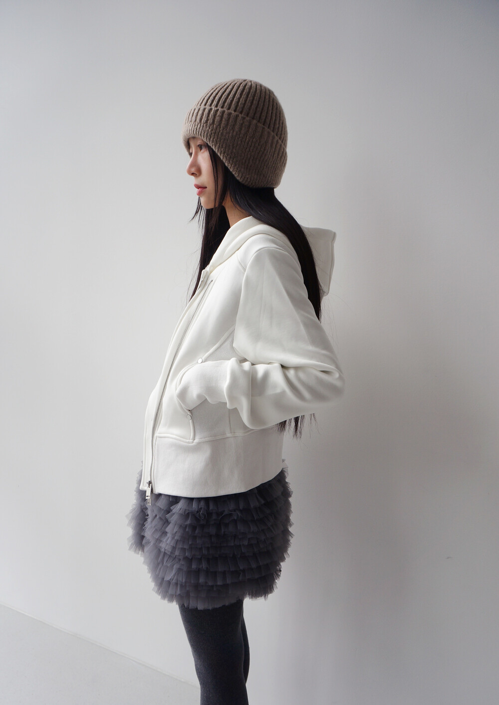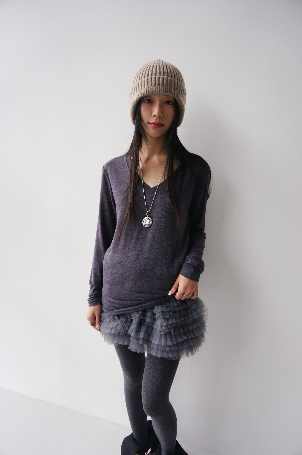 - 촘촘한 주름의 짧은 메쉬 프릴 디테일의 스커트.