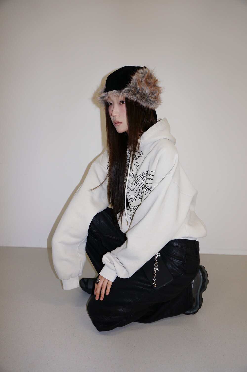 메인체인을 rivet suede hat에 결합해 착용한 모습.