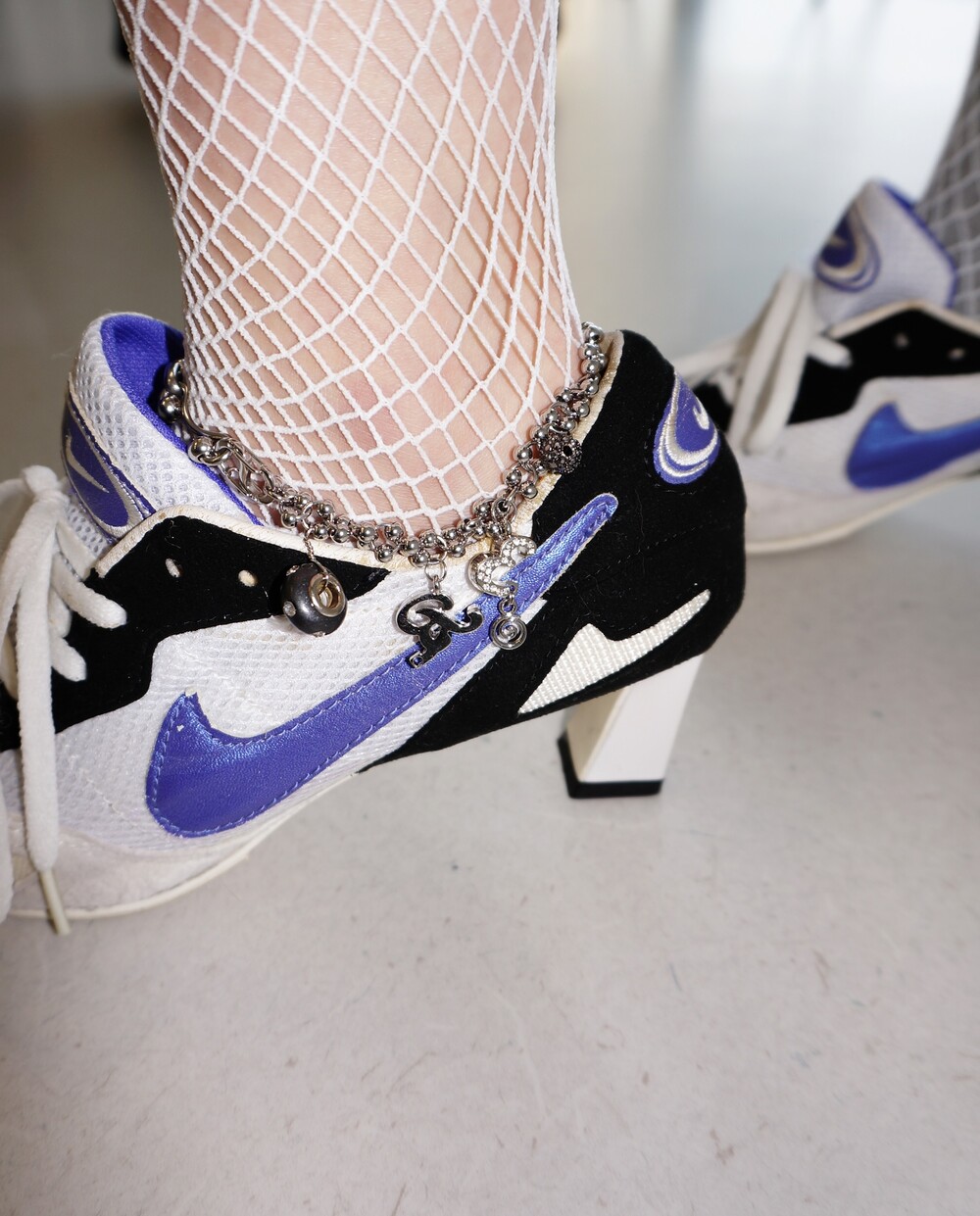 메인체인과 여분체인을 결합해 발찌로 착용한 모습.