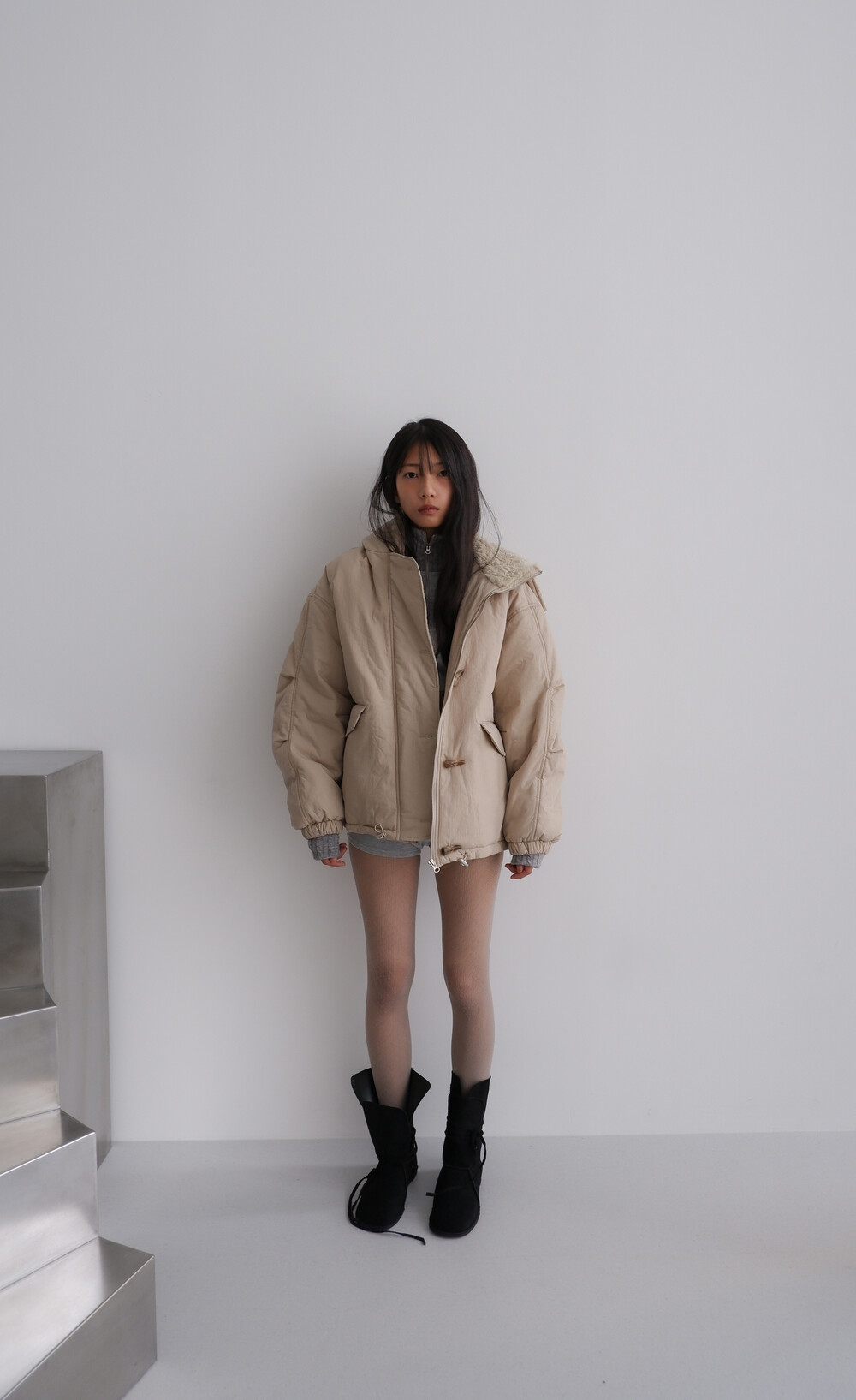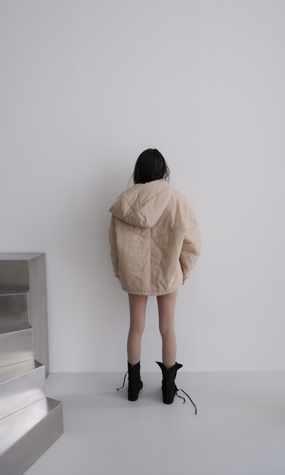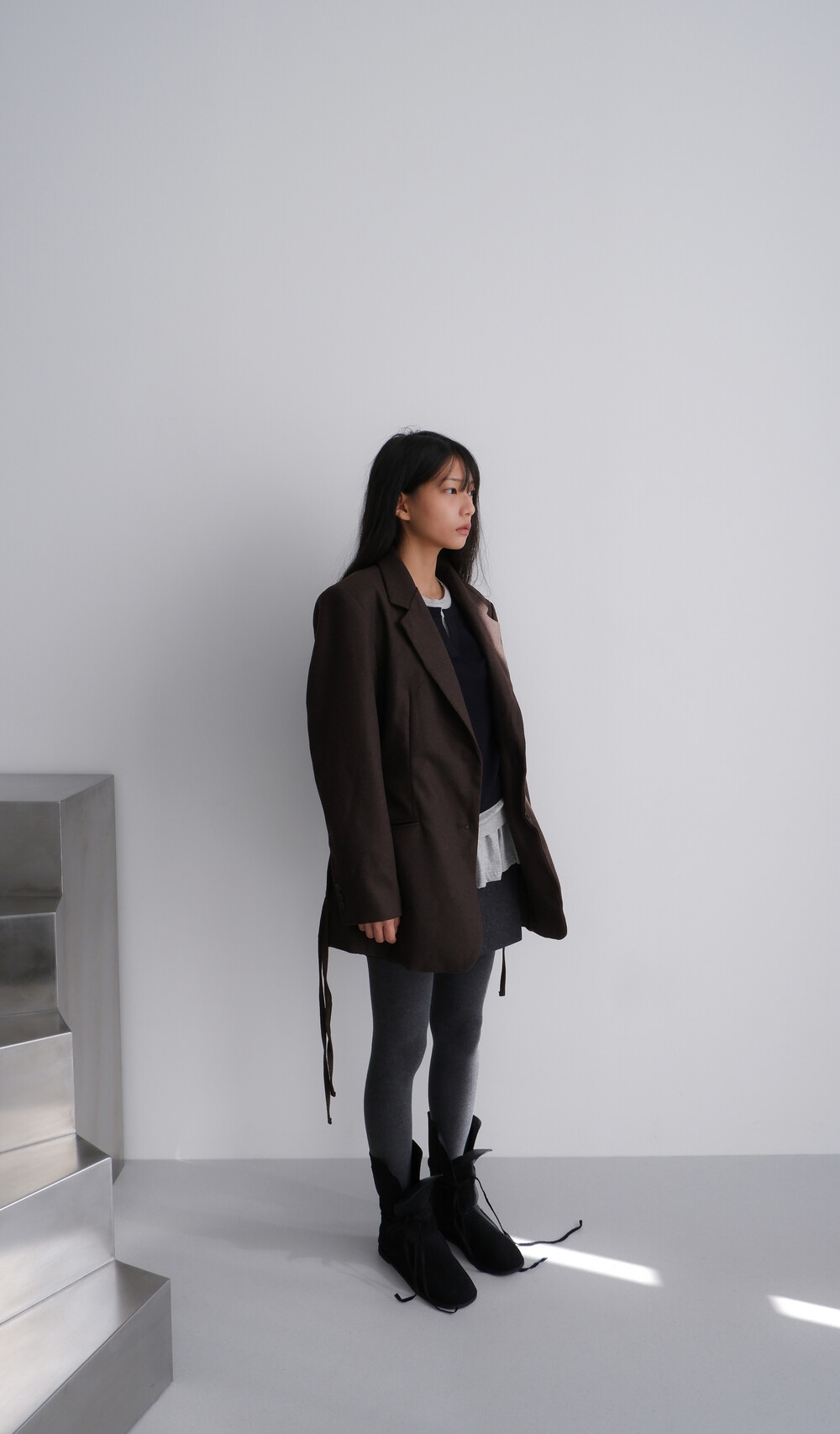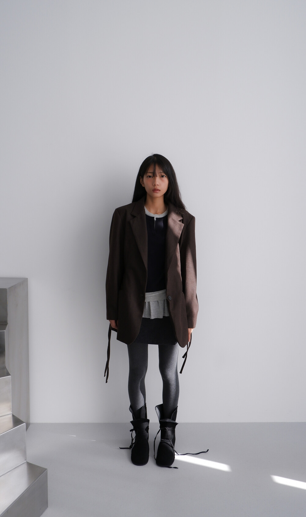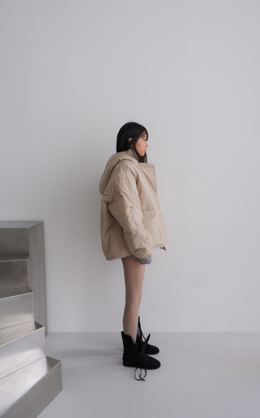 * 지퍼나 밴딩없이 활짝 열려있는 형태, 스트링으로 다양한 실루엣을 연출가능합니다.