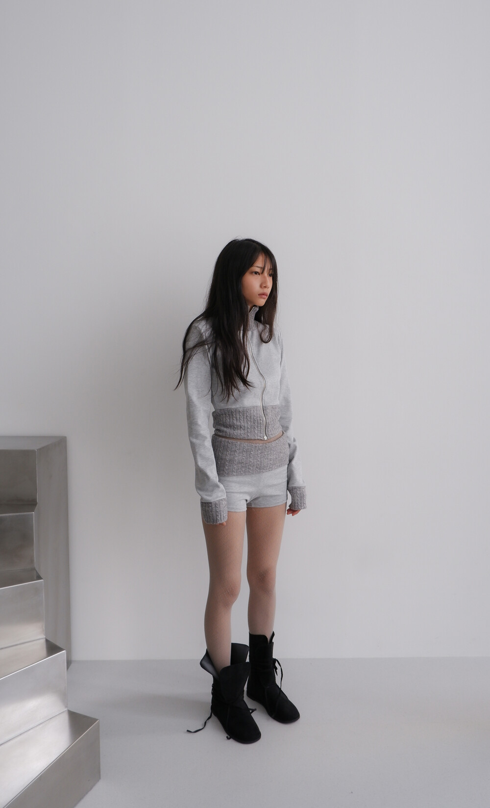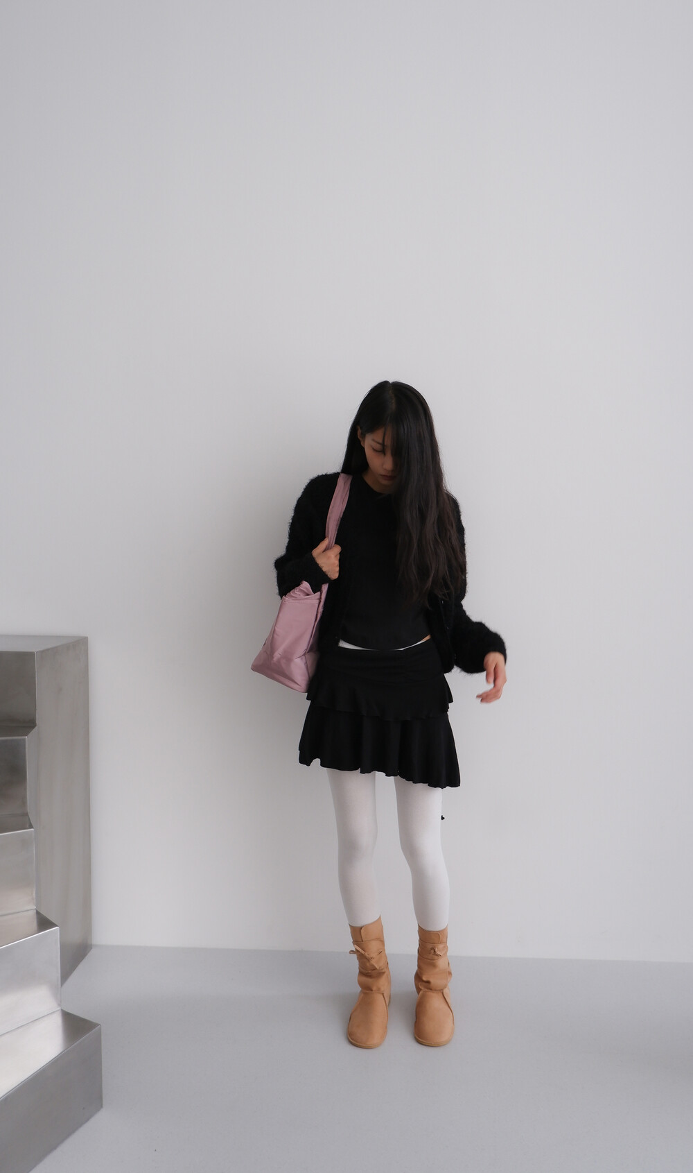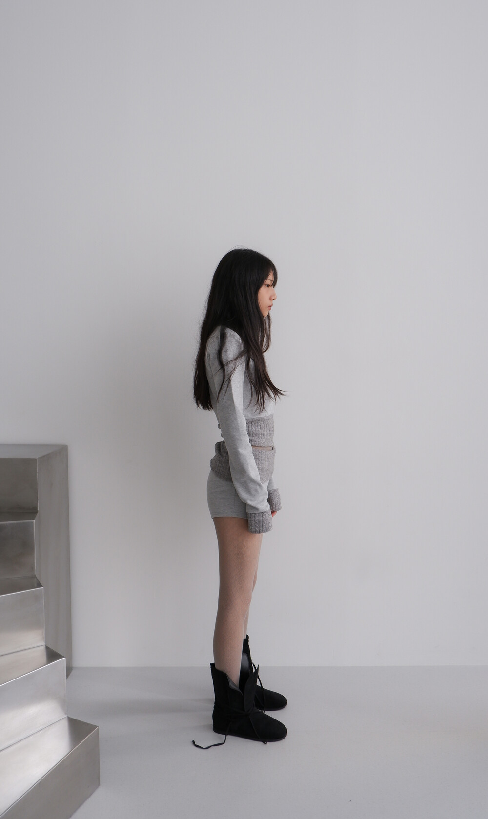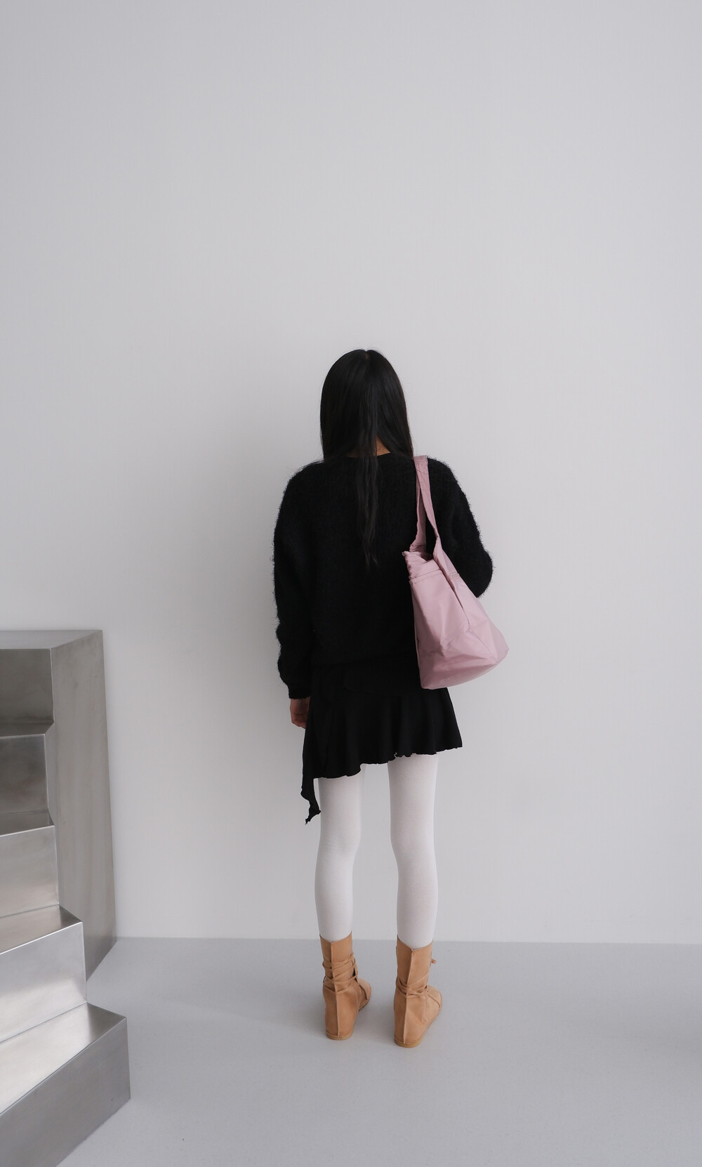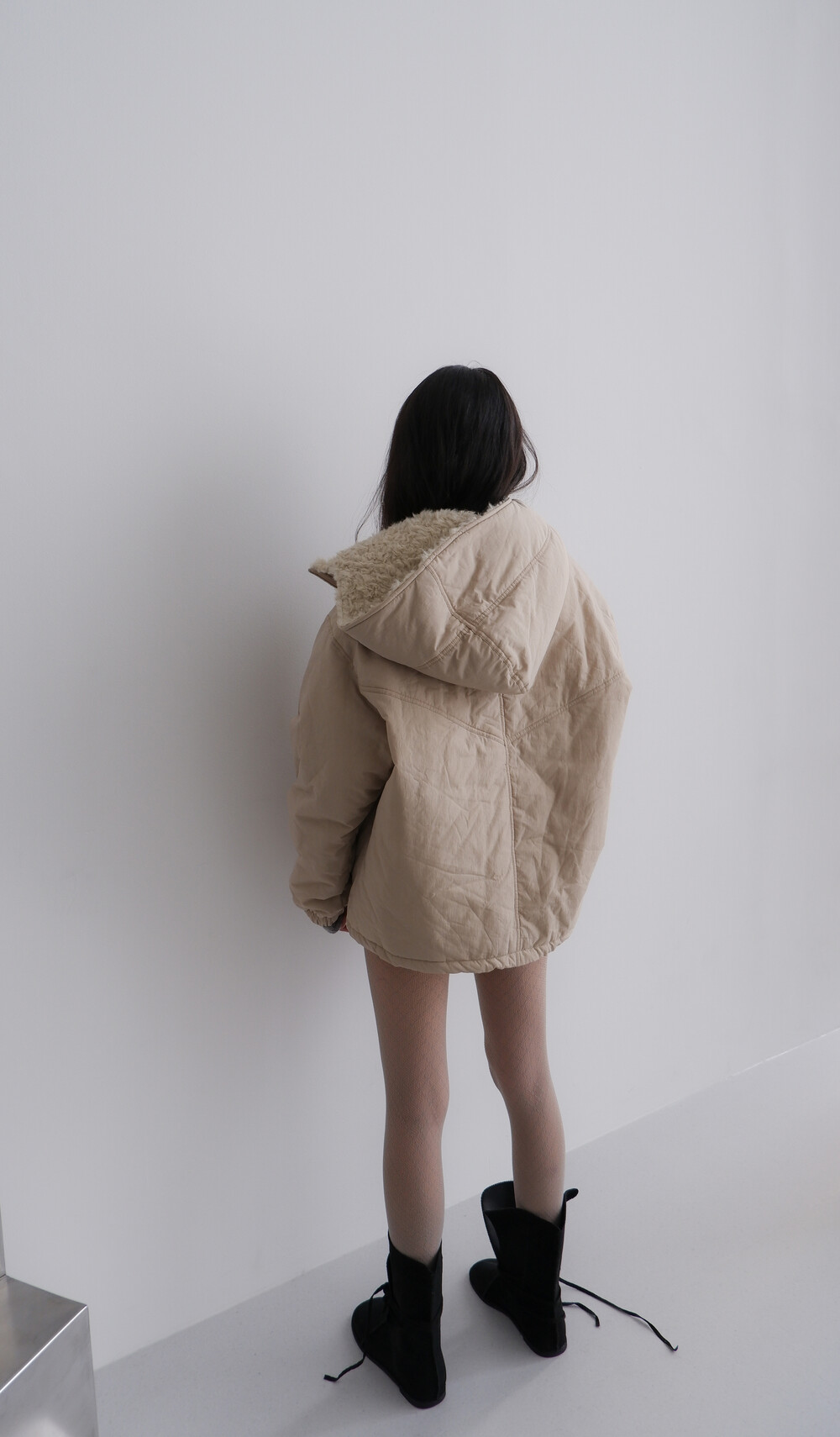 * 지퍼나 밴딩없이 활짝 열려있는 형태, 스트링으로 다양한 실루엣을 연출가능합니다.