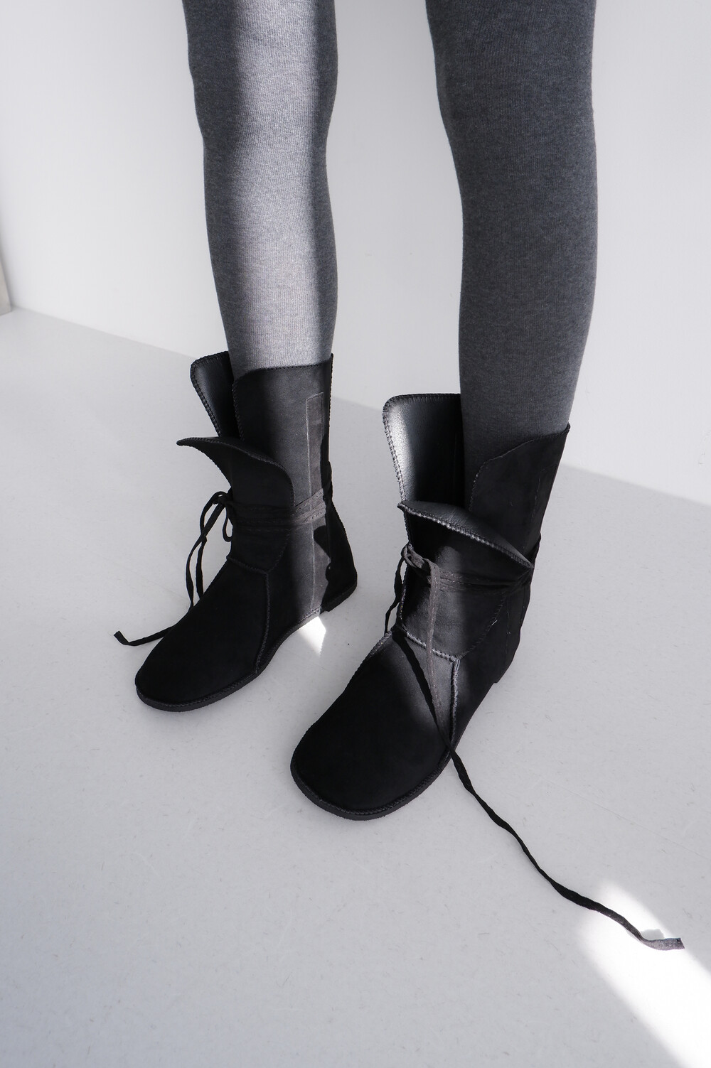 * 전체적으로 둥근 쉐입의 스웨이드부츠.